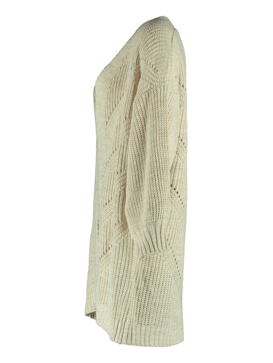 DOB langer Strick Cardigan mit Schlitz,vorne offen1x1 Rippstrick an vorderer mitte, Ärmel und Saum