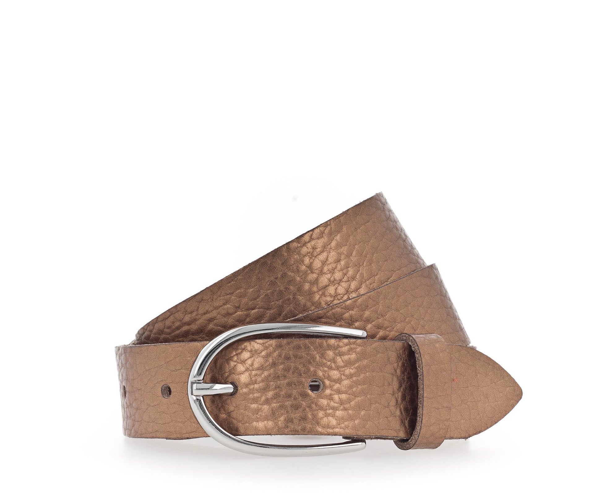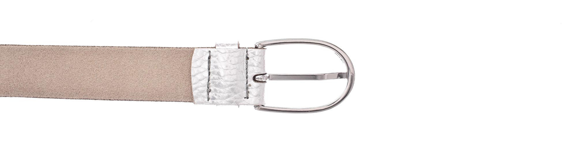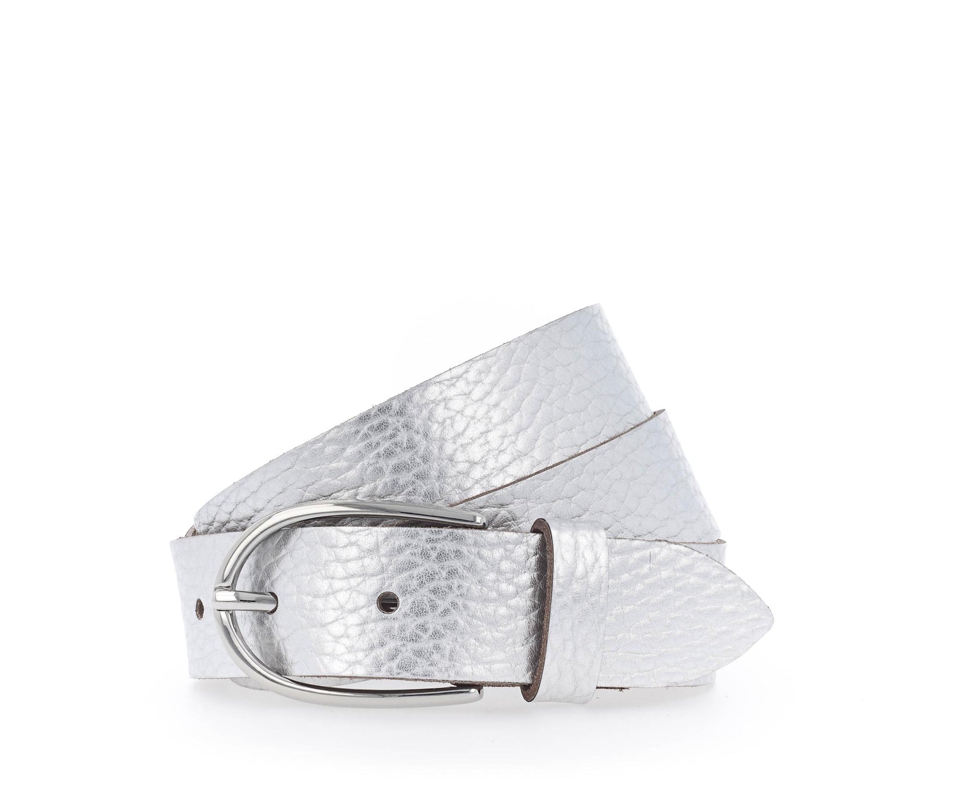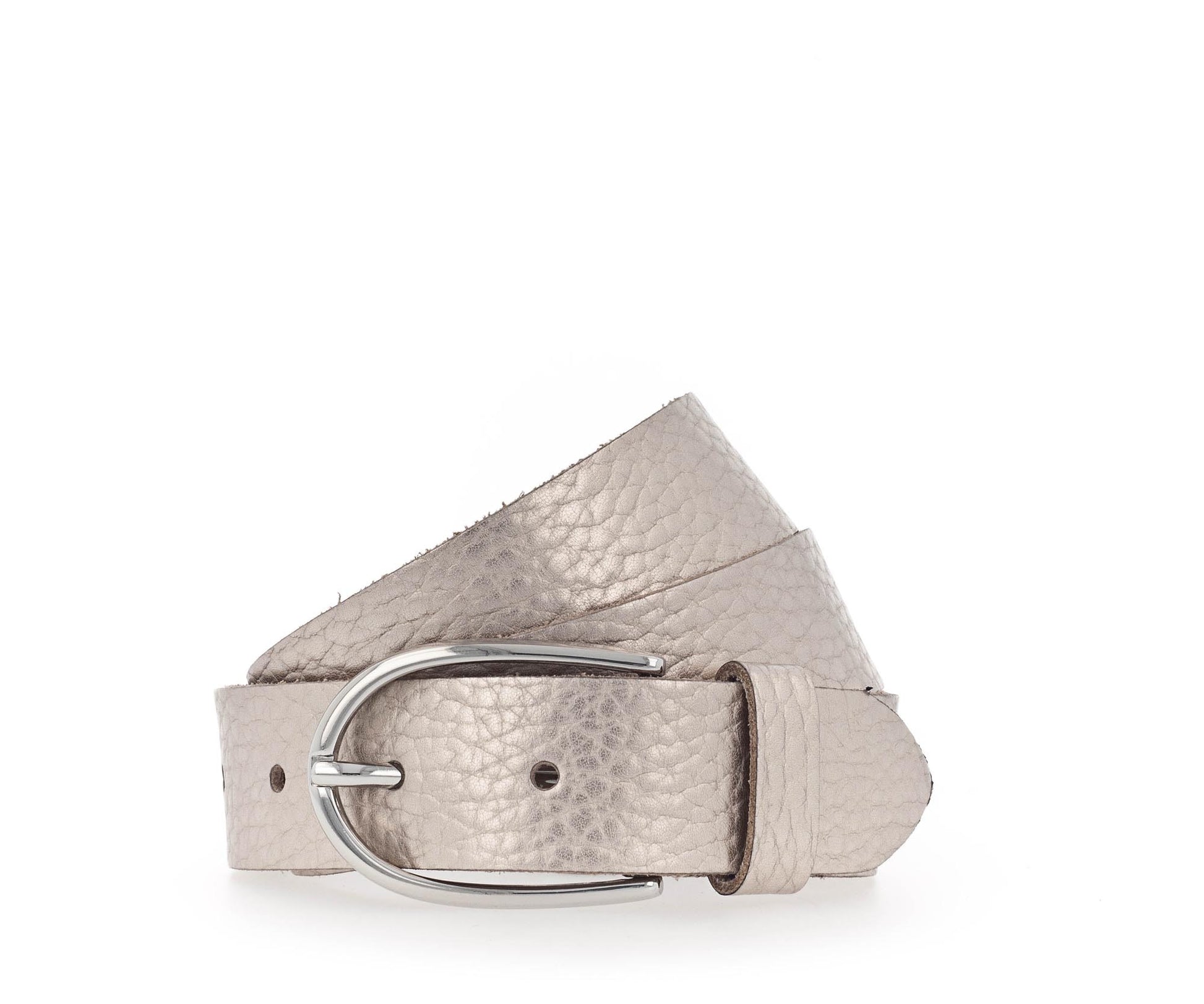 Der Echtleder-Gürtel ist 30 mm breit mit Metallic-Effekt und einer schlichten Dornschließe in glänzendem Silber verziert. Das Material ist ein Rindleder mit Metallicfolie mit mattem Finish und grobem Narben. Dieser Gürtel ist die ideale Ergänzung zu allen Freizeit-Outfits und garantiert einen femininen und entspannten Look. MADE IN METZINGEN. Die vollständige Fertigung im Vanzetti-Headquarter, am Modestandort Metzingen beim Familienunternehmen Bazlen, garantiert ein nachhaltig hergestelltes Produkt.Obermaterial: Beschichtetes Leder