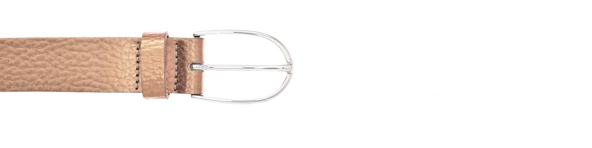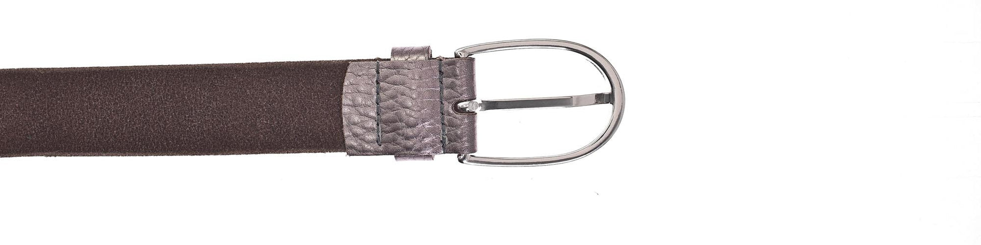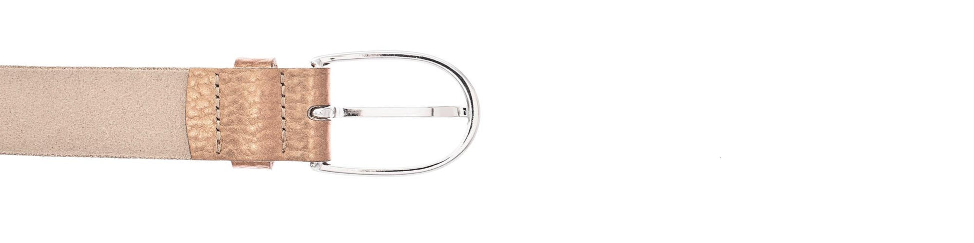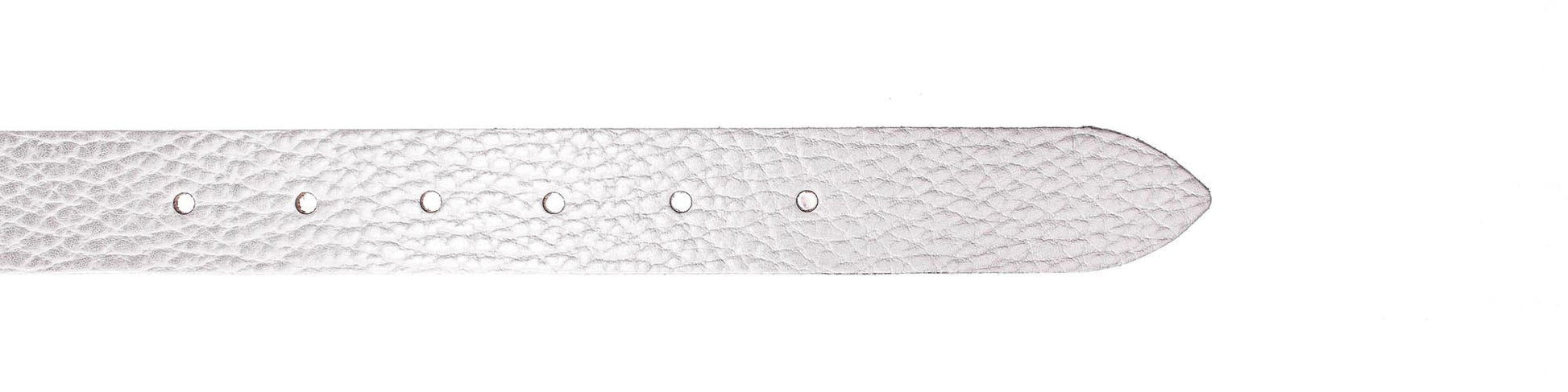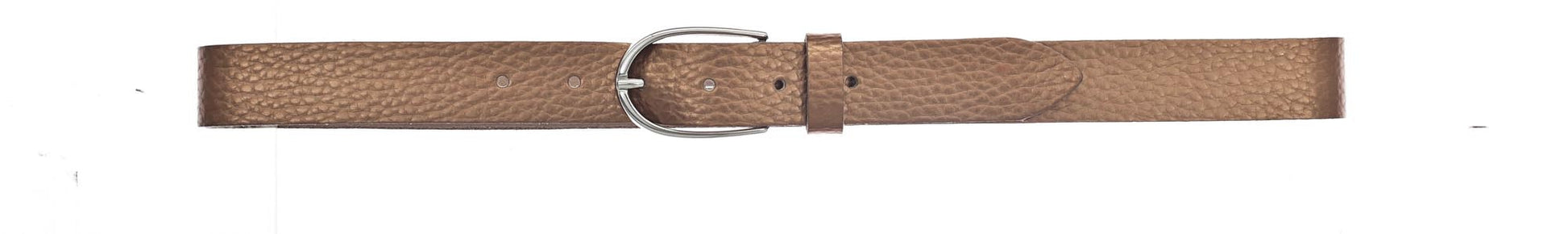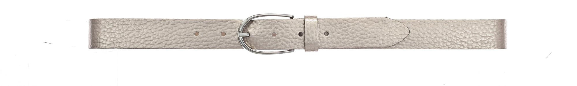 Der Echtleder-Gürtel ist 30 mm breit mit Metallic-Effekt und einer schlichten Dornschließe in glänzendem Silber verziert. Das Material ist ein Rindleder mit Metallicfolie mit mattem Finish und grobem Narben. Dieser Gürtel ist die ideale Ergänzung zu allen Freizeit-Outfits und garantiert einen femininen und entspannten Look. MADE IN METZINGEN. Die vollständige Fertigung im Vanzetti-Headquarter, am Modestandort Metzingen beim Familienunternehmen Bazlen, garantiert ein nachhaltig hergestelltes Produkt.Obermaterial: Beschichtetes Leder