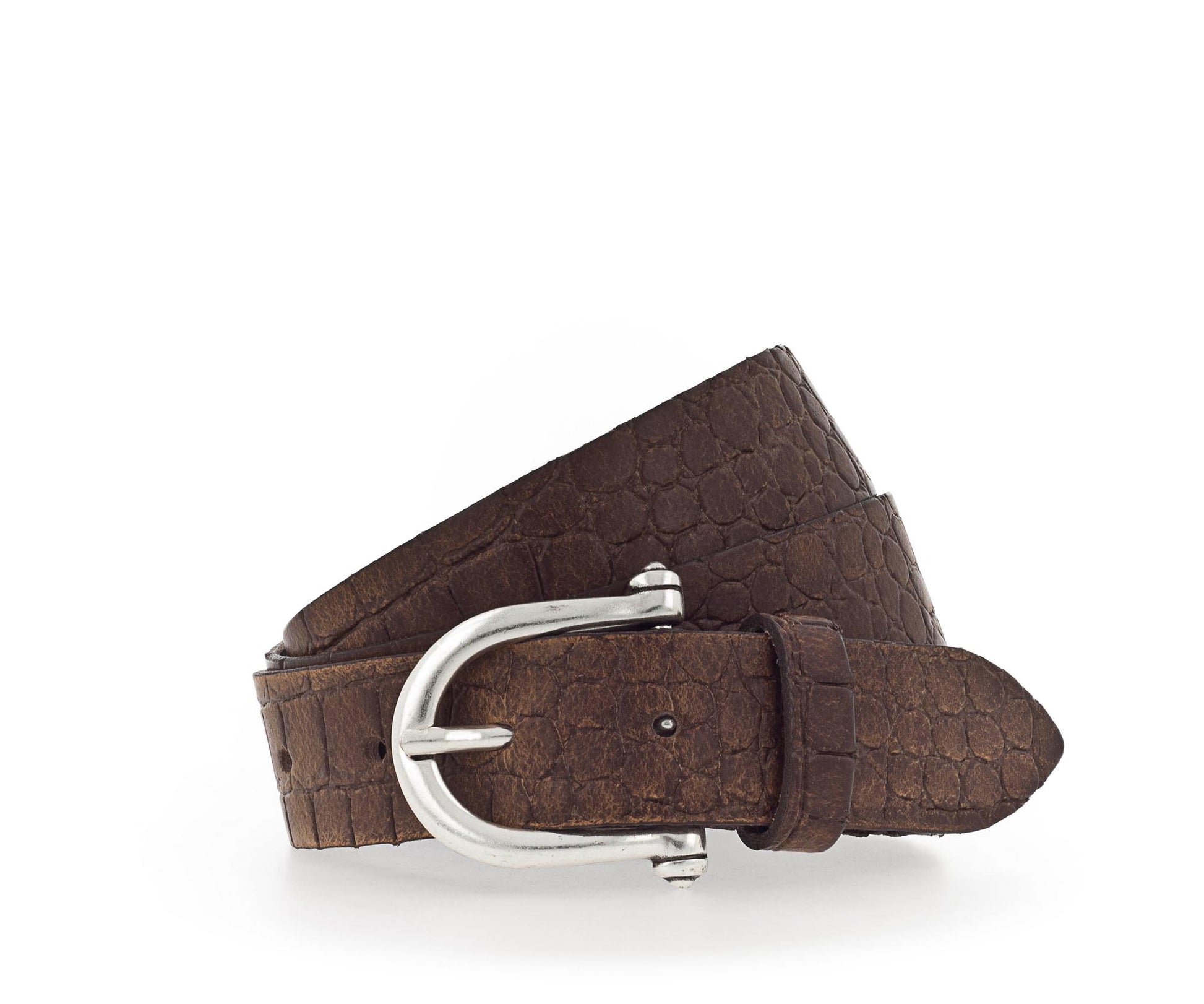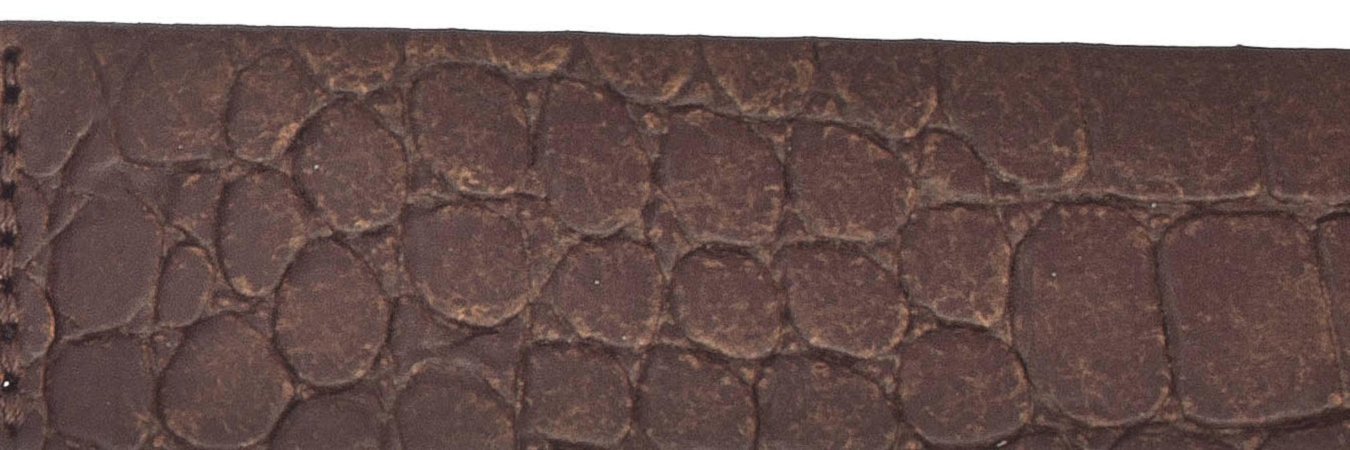 Der Echtleder-Gürtel ist 30 mm breit mit Krokoprägung und einer charakteristischen Dornschließe in mattem Silber verziert. Das Material ist ein Leder mit leichten Millkornnarben mit Vintagecharakter. Dieser Gürtel ist die ideale Ergänzung zu allen Freizeit-Outfits und garantiert einen anspruchsvollen und casual Look. MADE IN METZINGEN. Die vollständige Fertigung im Vanzetti-Headquarter, am Modestandort Metzingen beim Familienunternehmen Bazlen, garantiert ein nachhaltig hergestelltes Produkt.