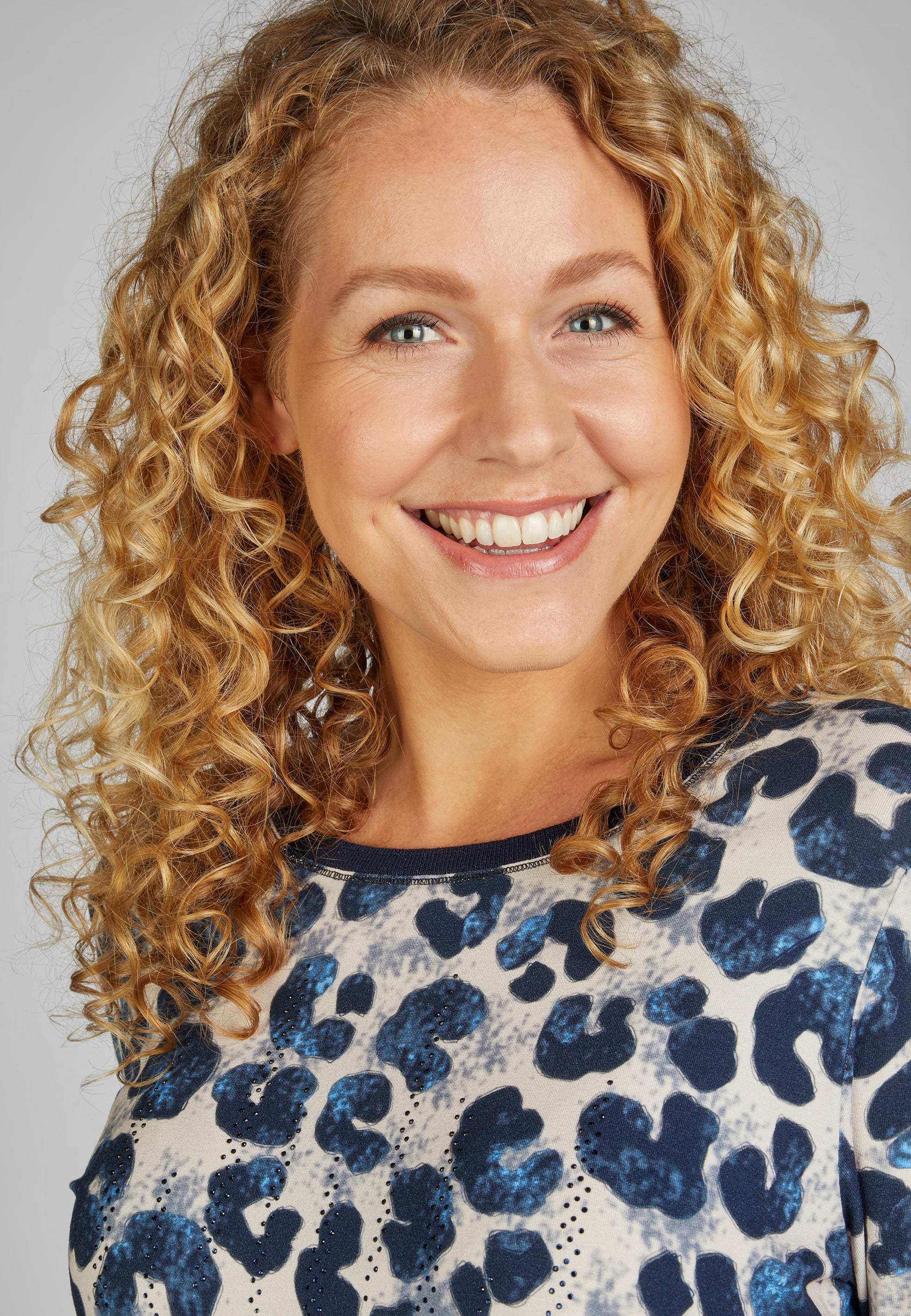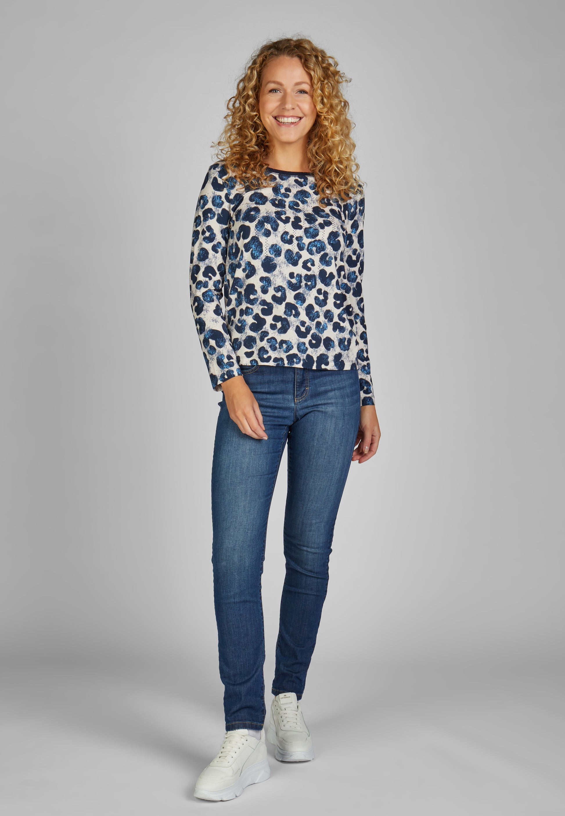 Entdecken Sie unser trendiges Langarmshirt mit einem faszinierenden Allover-Muster und einem funkelnden Strassmotiv! Dieses Shirt verleiht Ihrem Outfit eine extra Portion Stil und Eleganz. Die hochwertige Verarbeitung sorgt für einen angenehmen Tragekomfort, während das auffällige Design Sie garantiert zum Blickfang in jeder Gelegenheit macht.96 % Viskose, 4 % Elasthan