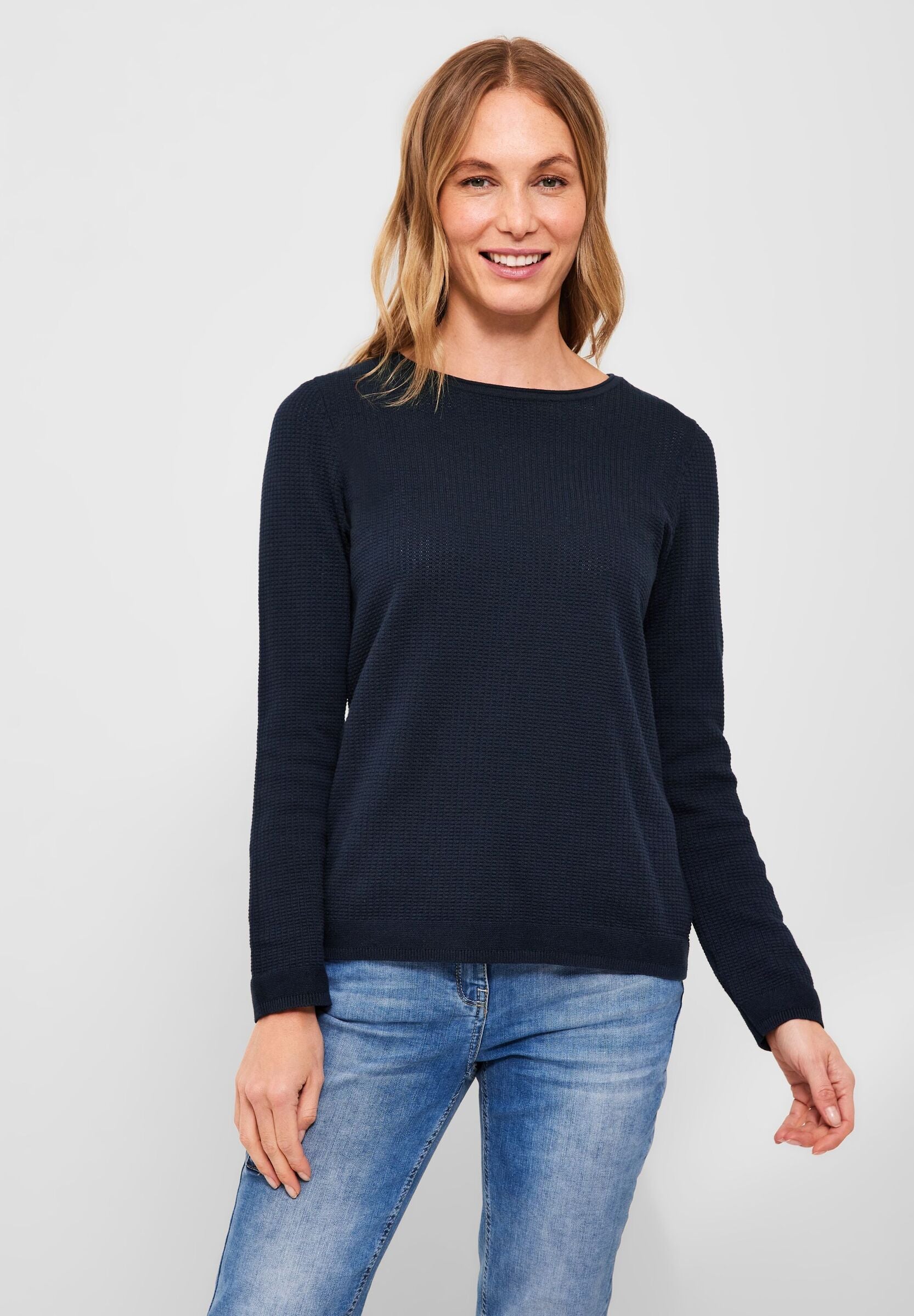 So lovely! Basic Damenpullover von CECIL mit Rundhalsausschnitt. Die Struktur setzt die Unifarbe besonders interessant in Szene. Ein Alltagsliebling, der in jeden Kleiderschrank gehört.
