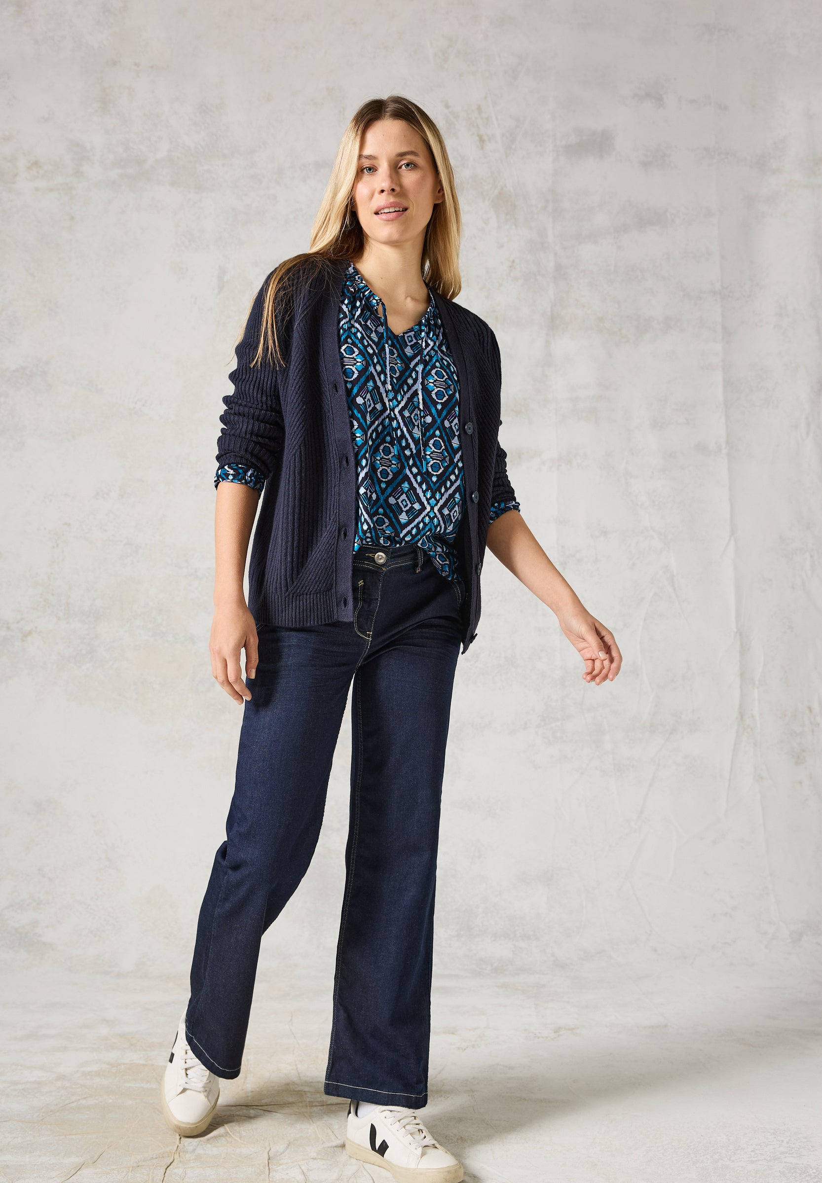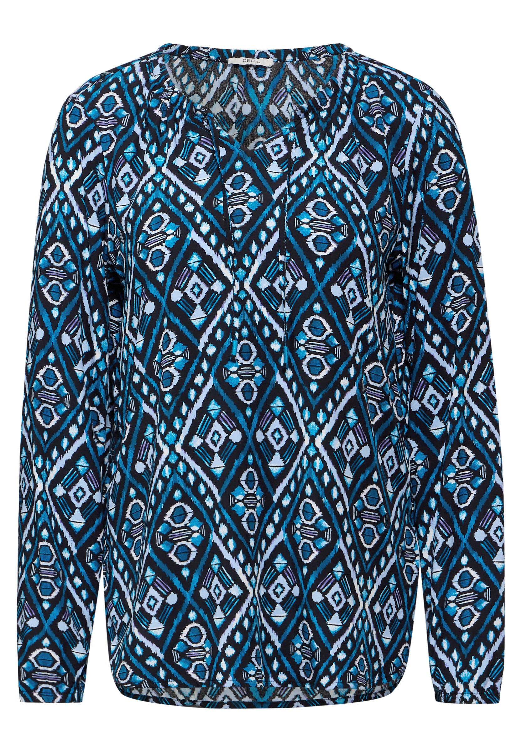 Die bedruckte Bluse von CECIL für Damen bietet ein grafisches Muster und einen geschlitzten Ausschnitt mit Bändern. Lange Ärmel mit Stretchbündchen und die Raffung am Ausschnitt verleihen ihr eine besondere Note. Die weiche Viskose sorgt für hohen Tragekomfort. Damenbluse mit gerundetem Saum und grafischem Muster Geschlitzter Ausschnitt mit Bändern Langarm mit Stretchbündchen Raffung am Ausschnitt Weiche Viskose Material: 100% Viskose100 % Viskose