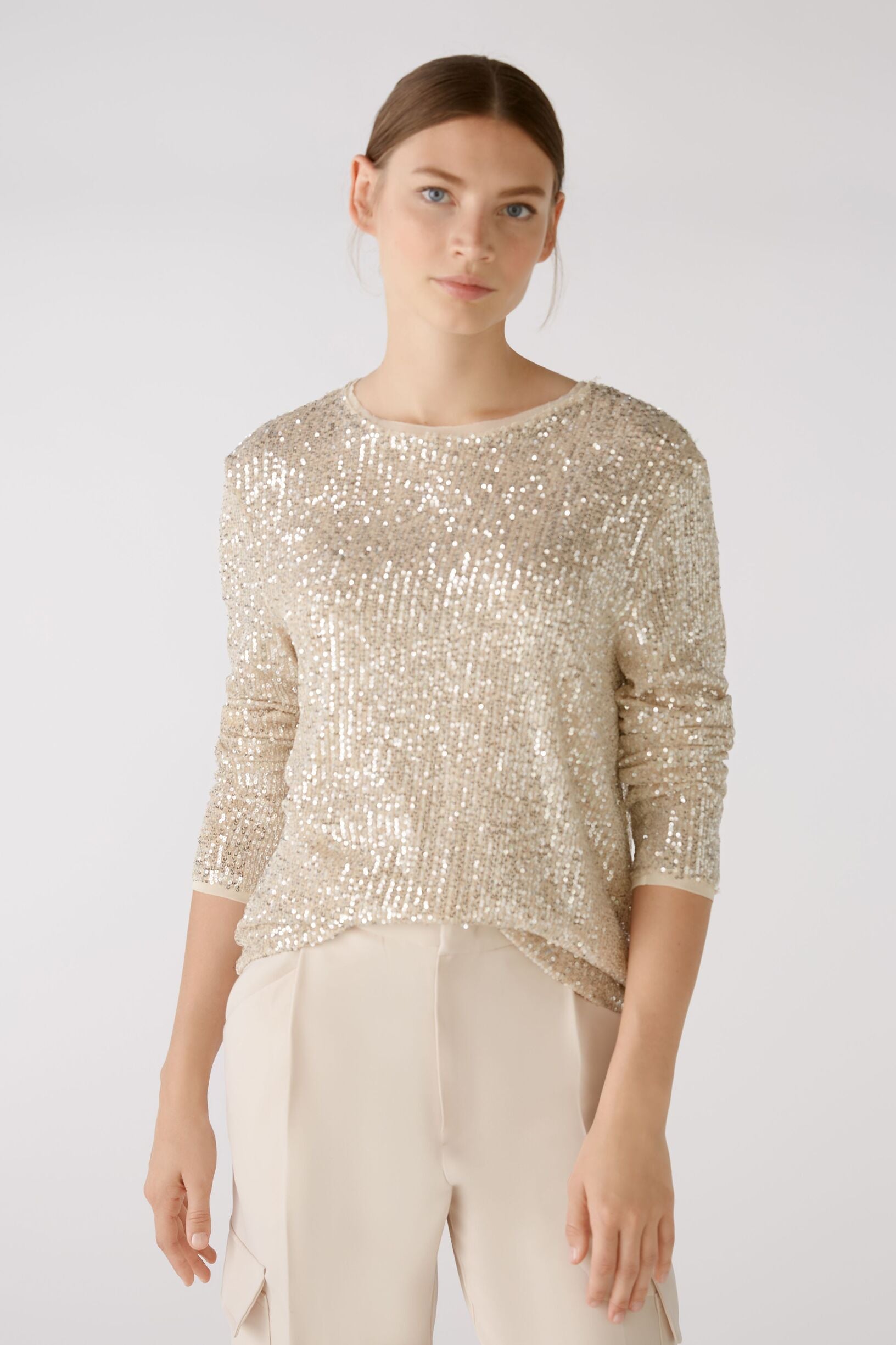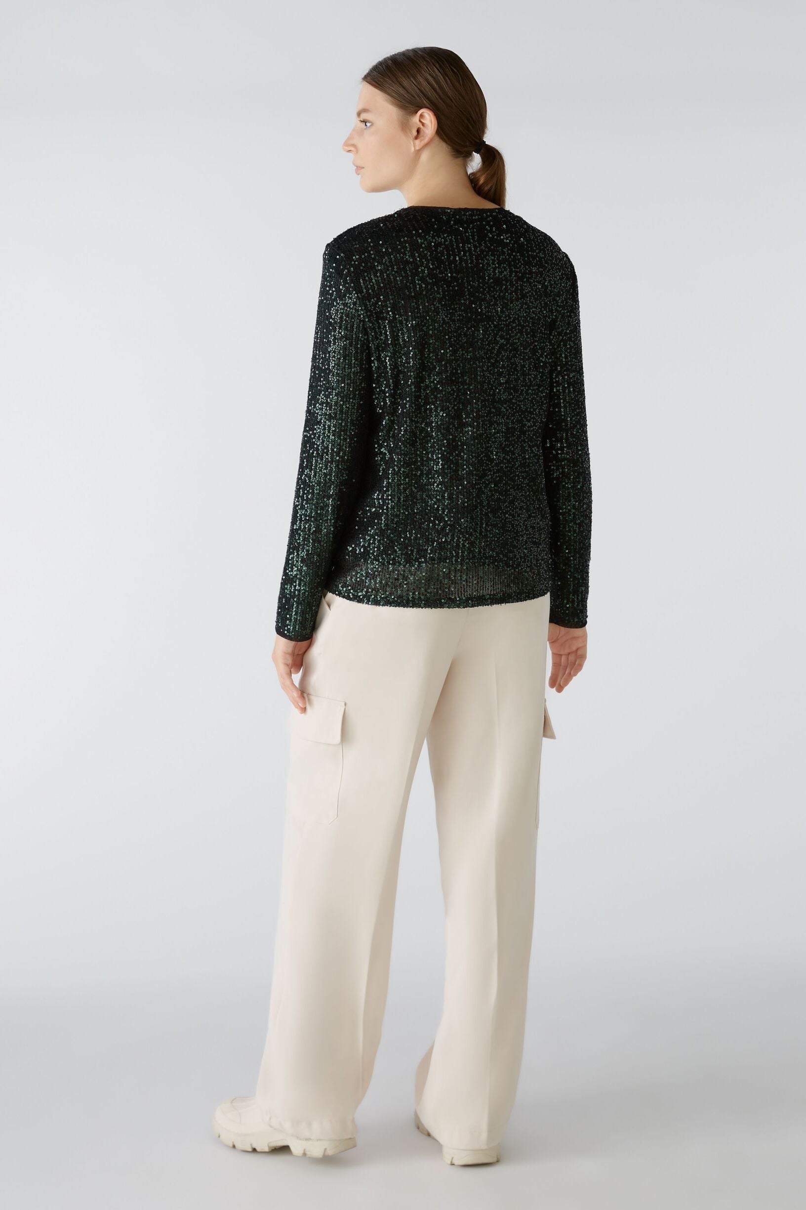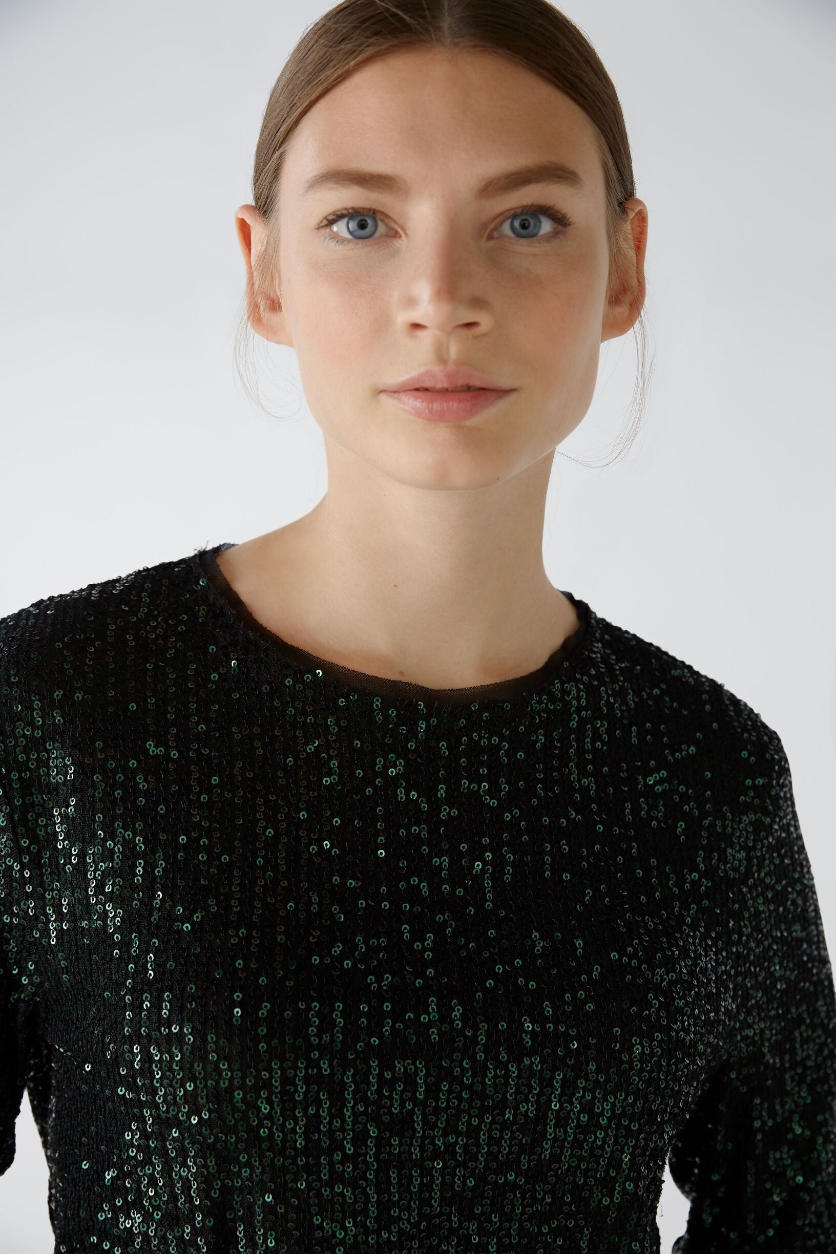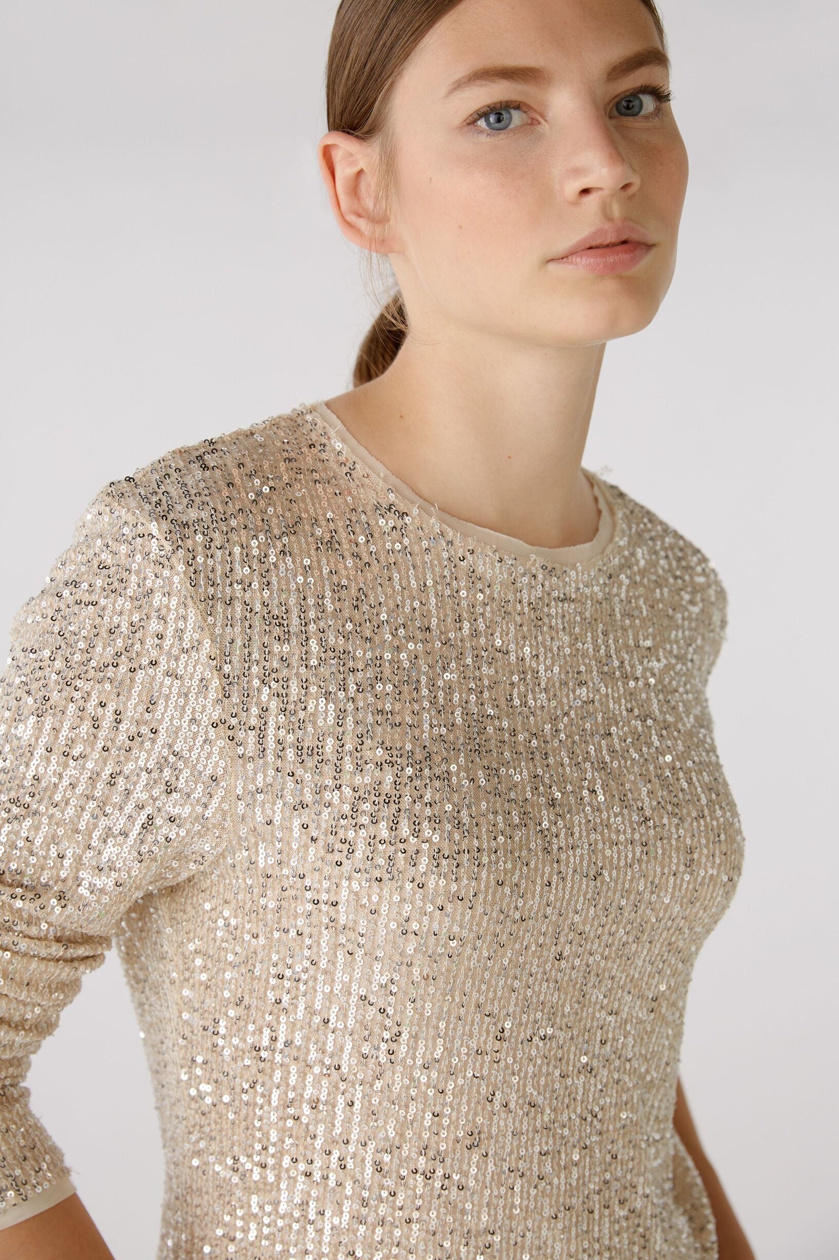 Schöner femininer Rundhals mit Futterabschluss an der Kante - so berührt die Paillette nicht die Haut