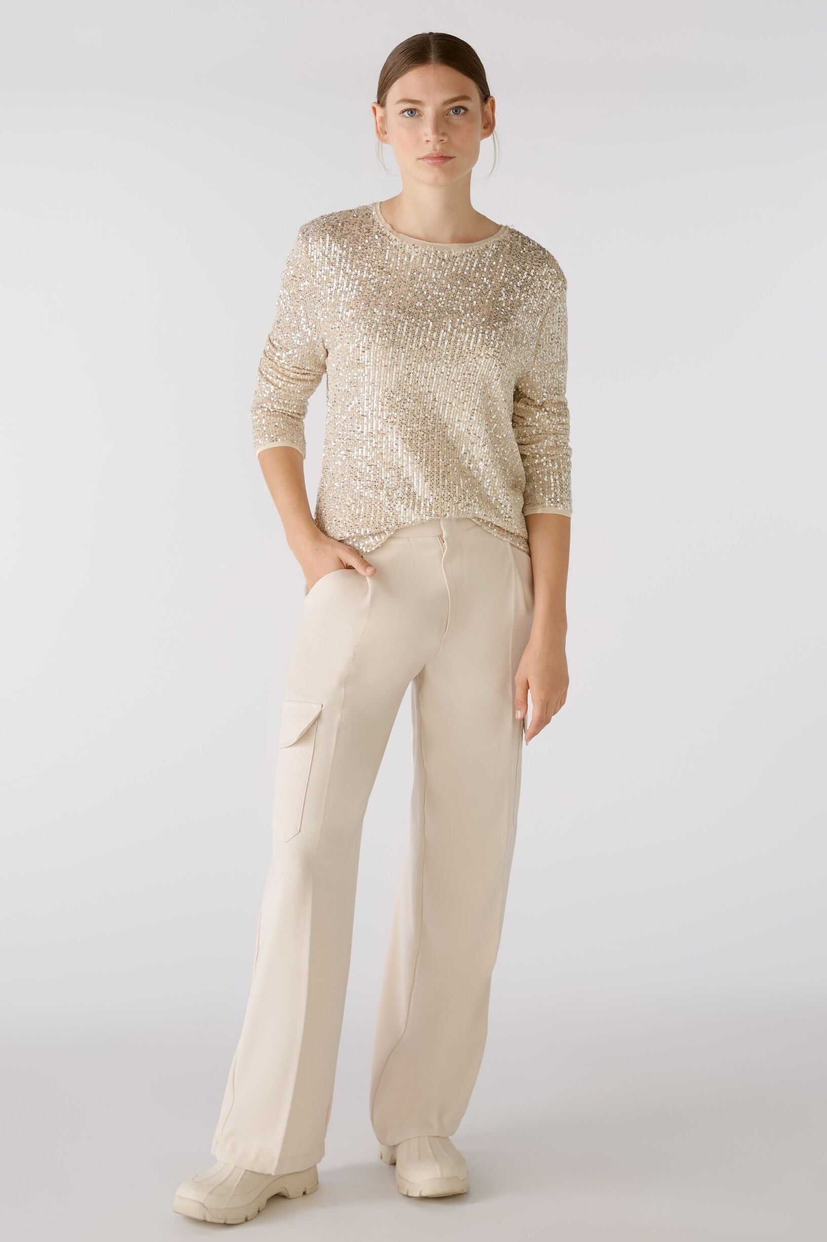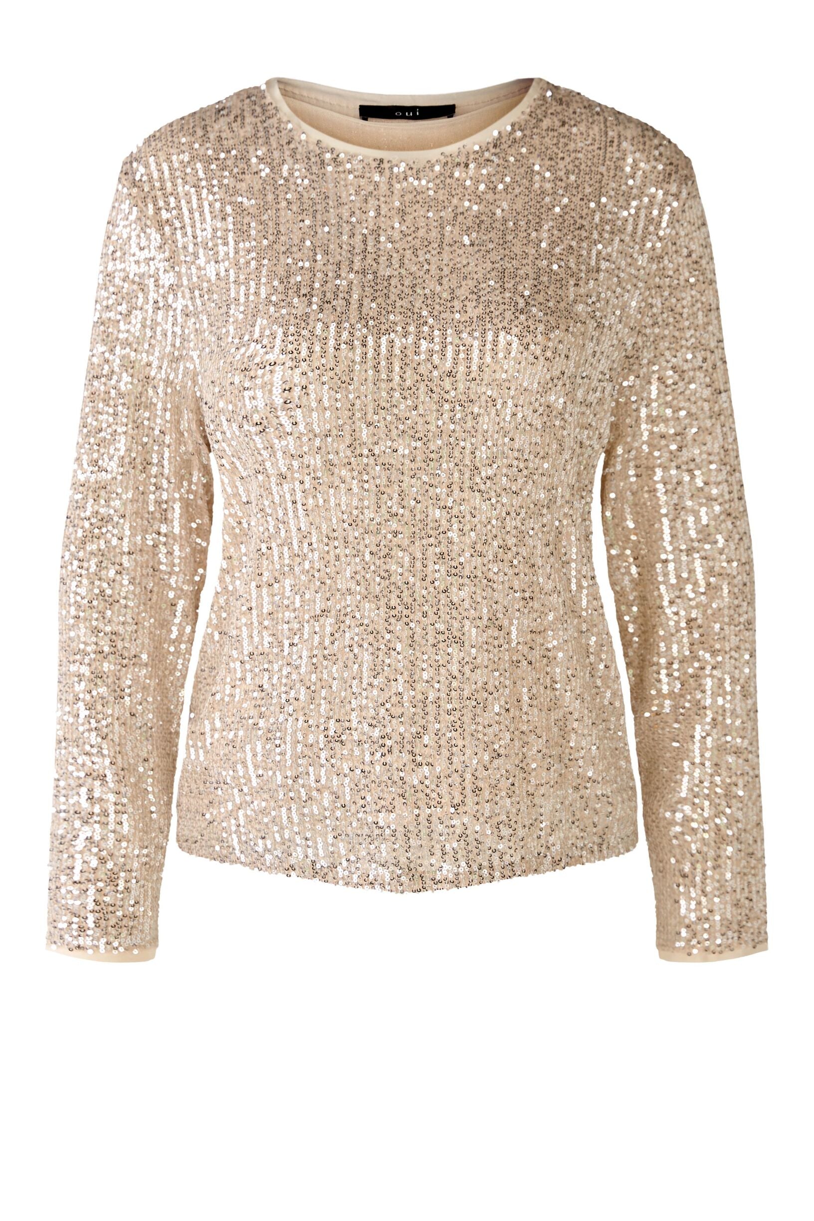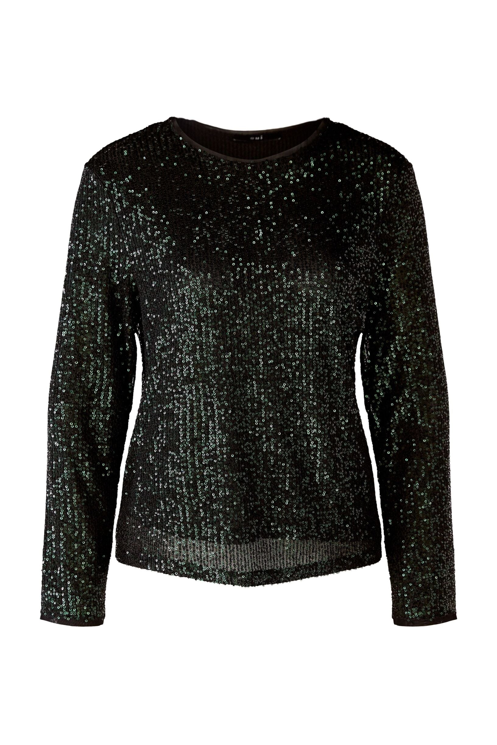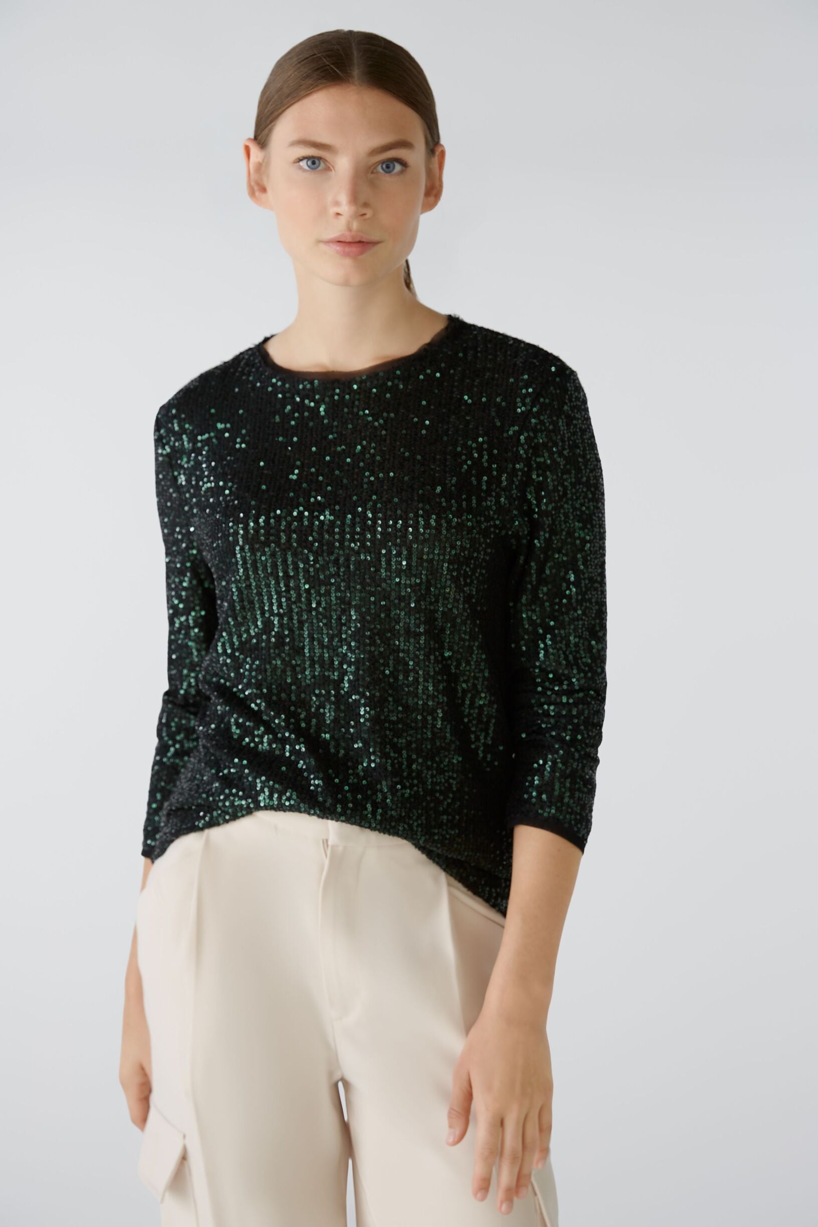 Schöner femininer Rundhals mit Futterabschluss an der Kante - so berührt die Paillette nicht die Haut