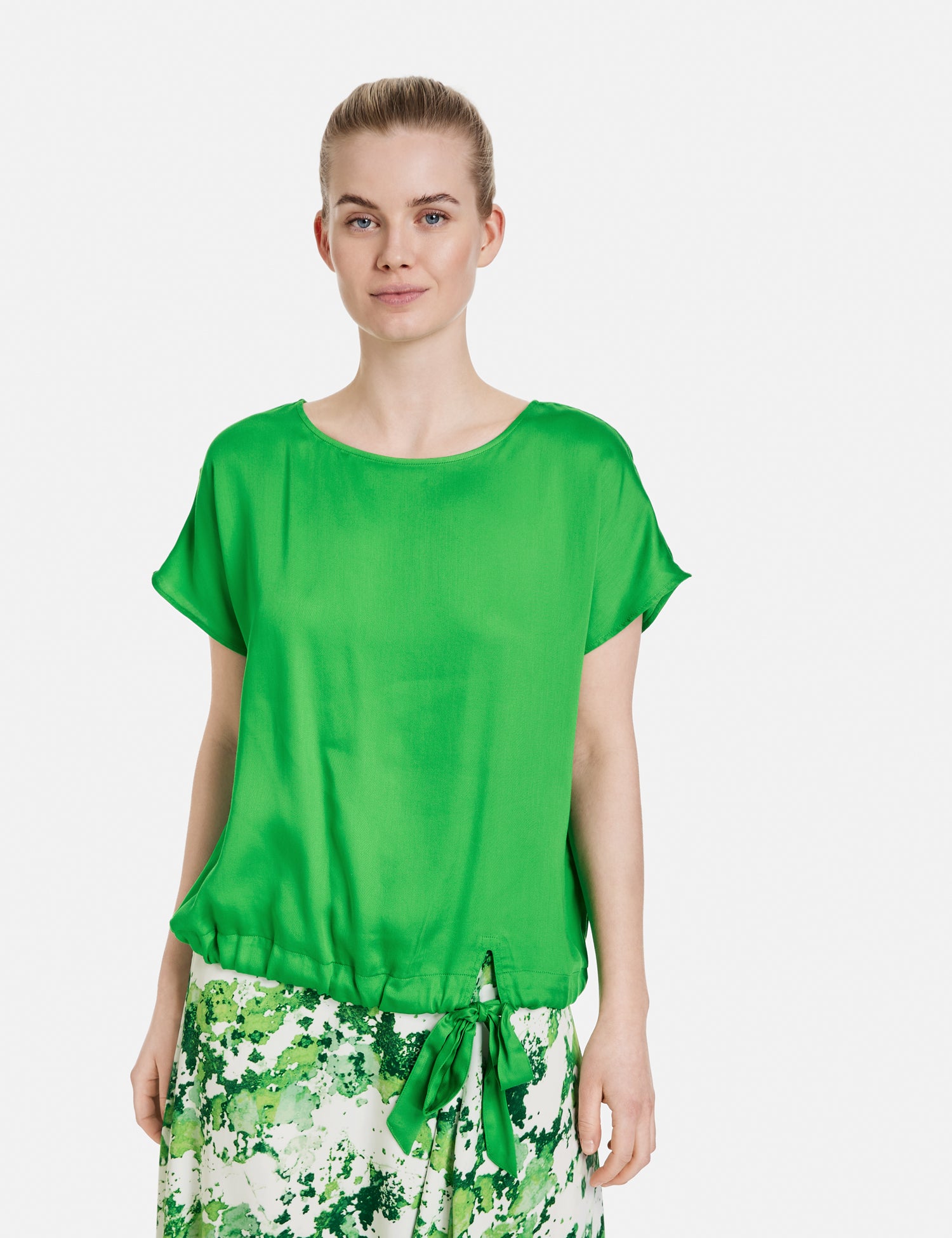 Raffung durch Tunnelband im Saum. Satinierte Qualität. Mit diesem Blusnehsirt bist du einfach toll angezogen. Der legere Style mit überschnittenen Schultern und rundem Ausschnitt wird mit einem Tunnelband am Saum lässig gerafft. Für schöne Blickfänge sorgt die erfrischende Farbauswahl und die satinierte Qualität. Ein toller Look für den Sommer!100% Modal