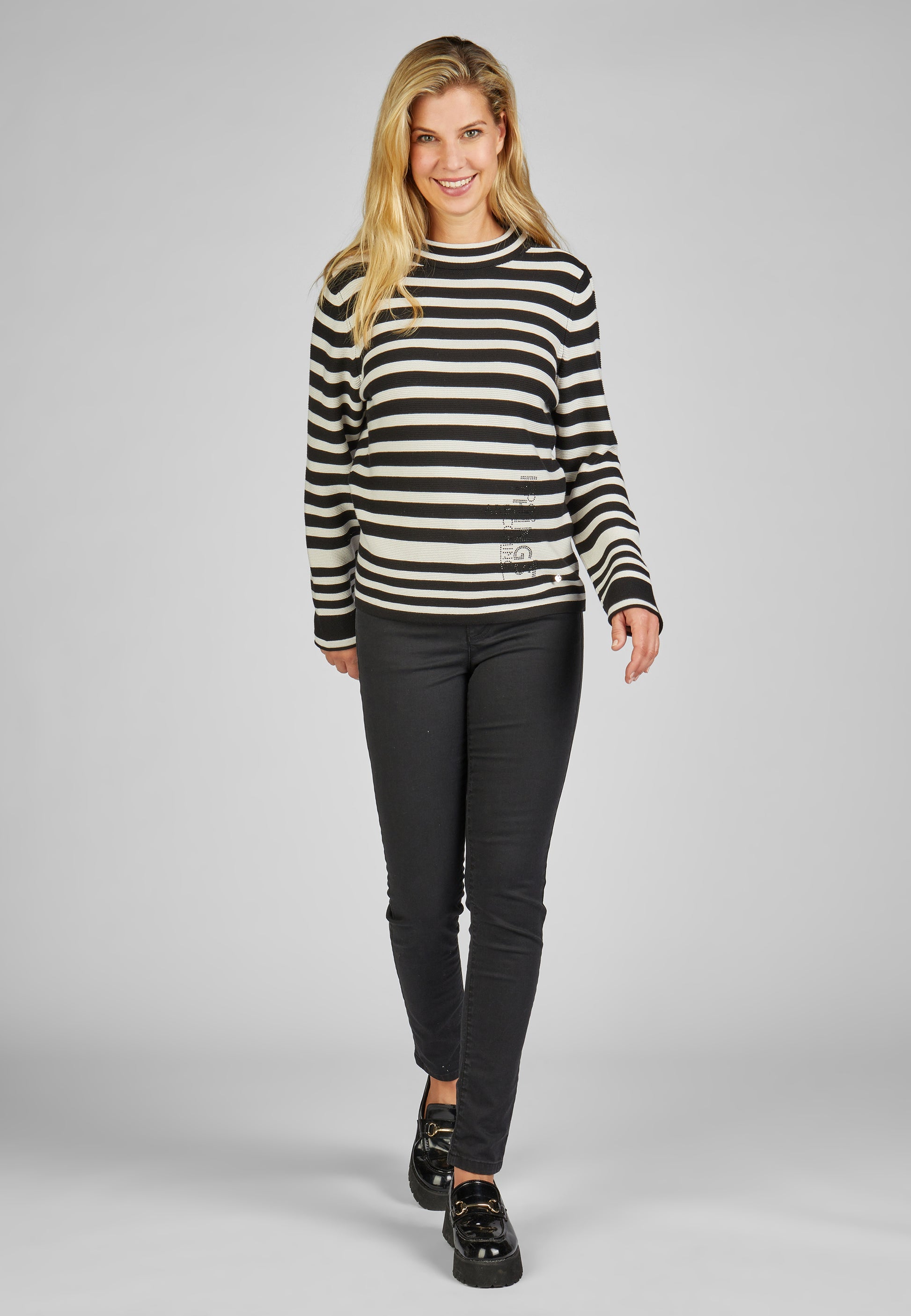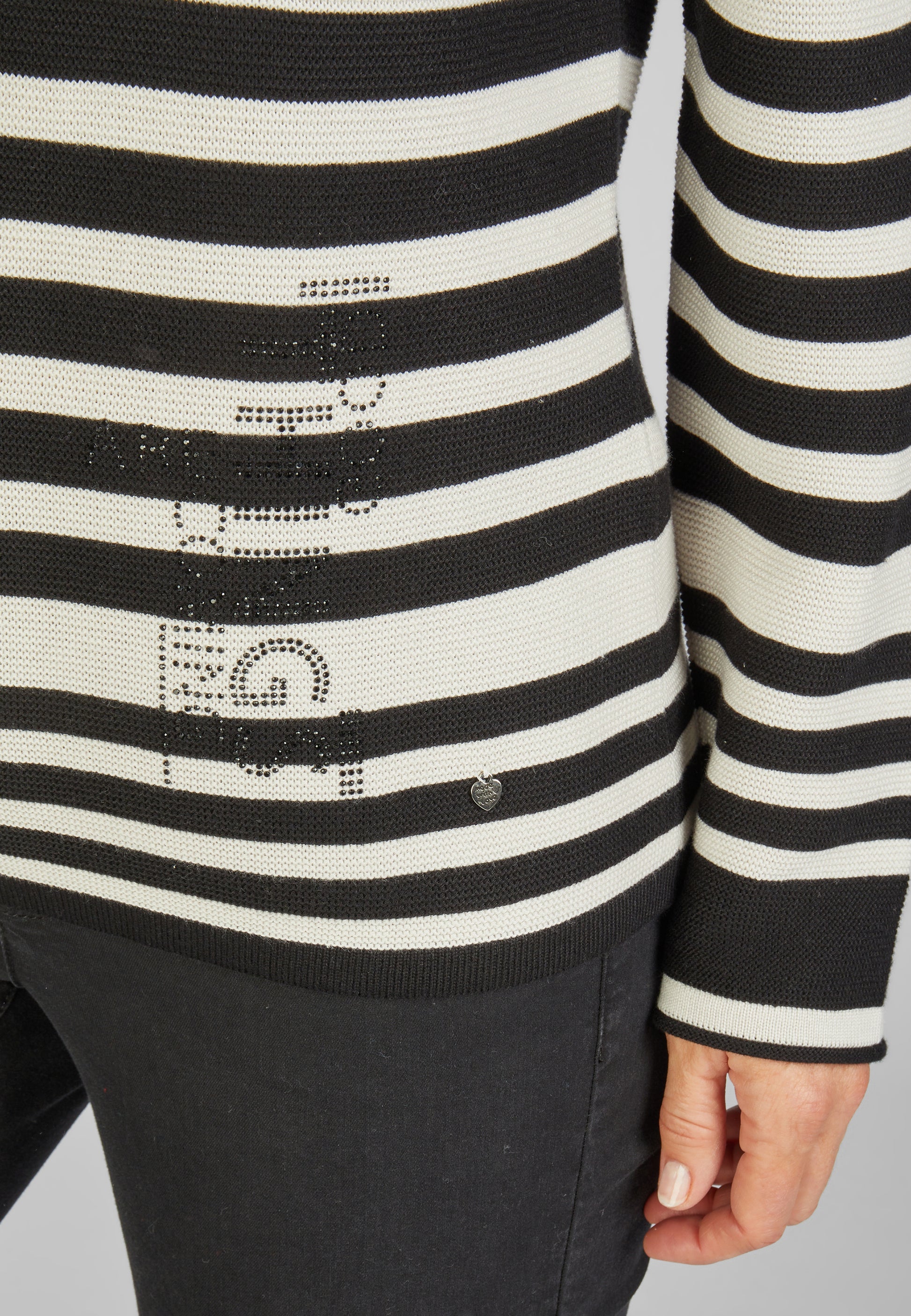 Entdecken Sie unseren trendigen Pullover mit Streifen und Stehkragen! Dieser Langarm-Pullover verleiht Ihrem Look einen Hauch von Eleganz und Glamour mit seinen funkelnden Strassdetails. Perfekt für kühle Tage und Abende, sorgt dieser Pullover für Stil und Komfort zugleich. Holen Sie sich jetzt Ihr neues Lieblingsstück für die Saison!50 % Baumwolle, 50 % Polyacryl