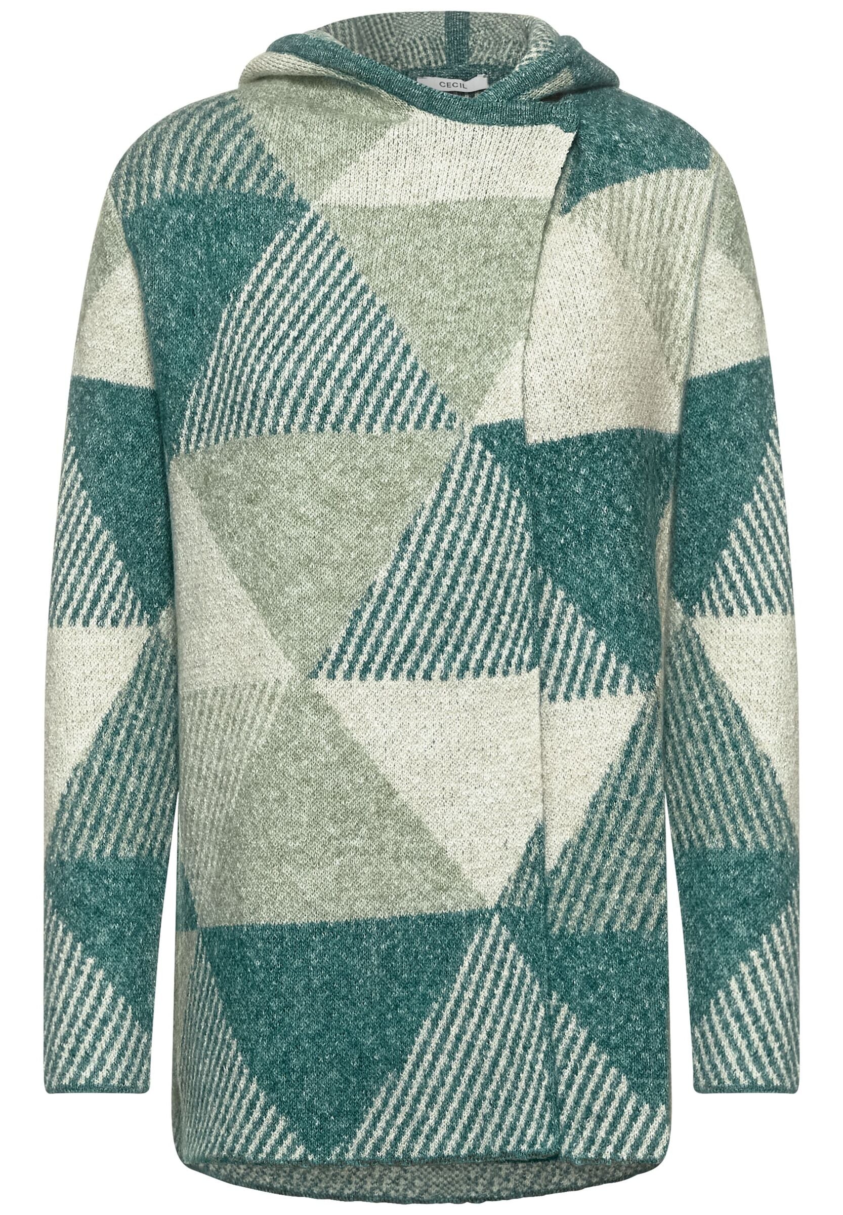Sanfter Begleiter! Der cosy Damencardigan von CECIL ist unser treuester Begleiter an warmen Herbsttagen. Gemustert und im Hoodie Style zeigt er sich von seiner lässigen Seite. Dank des verdeckten Druckknopfes am Hals lässt er sich schließen. Der weiche Jacquardstoff verspricht angenehmen Tragekomfort.