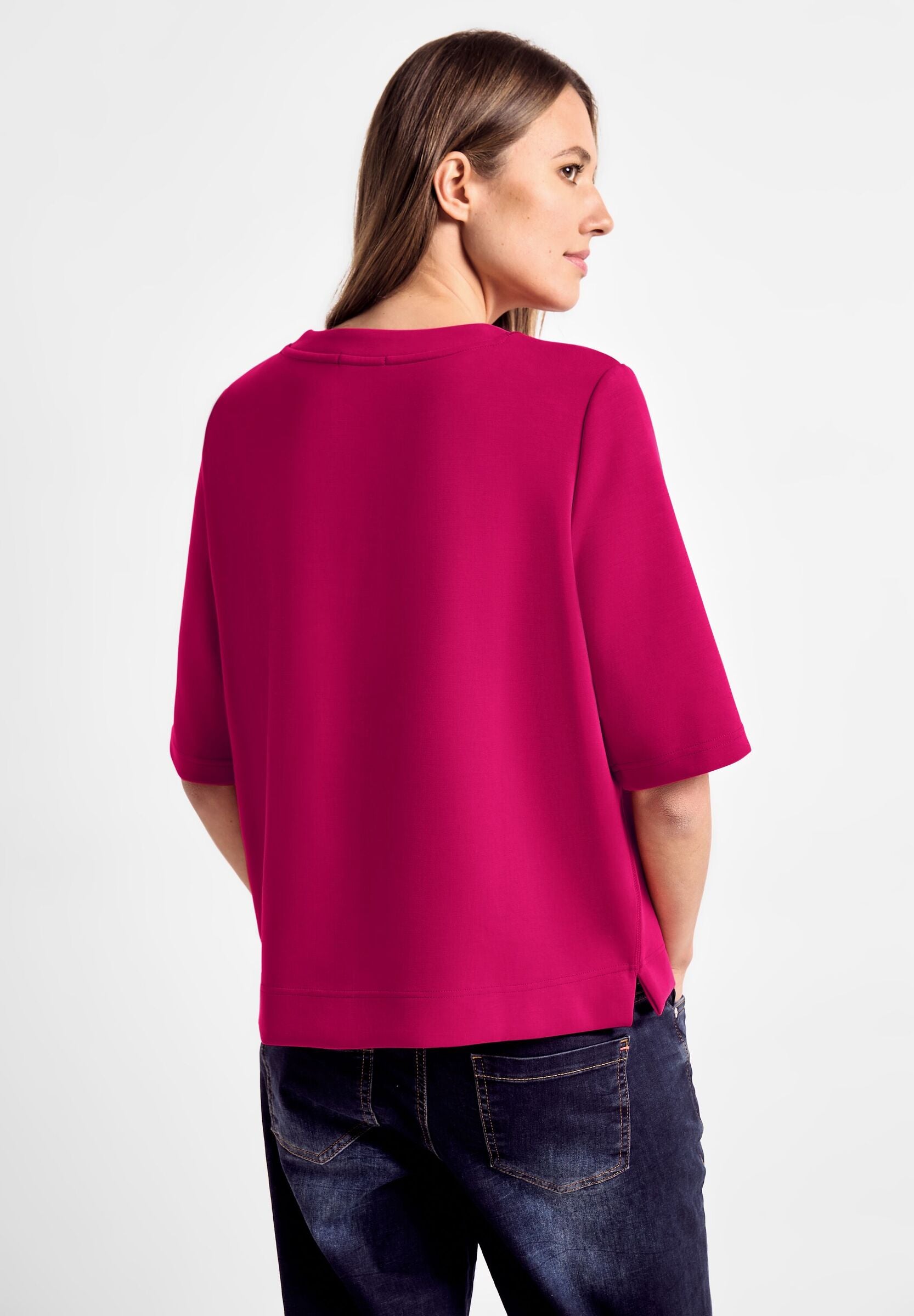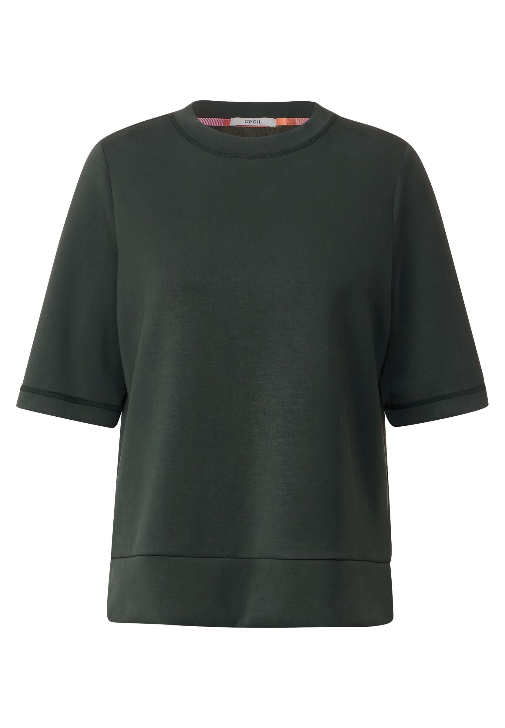 Das Kurzarm Sweatshirt von CECIL ist ein vielseitiger Damenpullover mit einem Rundhalsausschnitt. Mit seinem breiten Bund, seitlichen Schlitzen und dekorativen Nähten an den Seiten bietet er nicht nur Komfort, sondern auch einen modernen Look. Der bequeme Materialmix mit Stretchanteil sorgt dafür, dass du dich den ganzen Tag über wohlfühlen kannst.