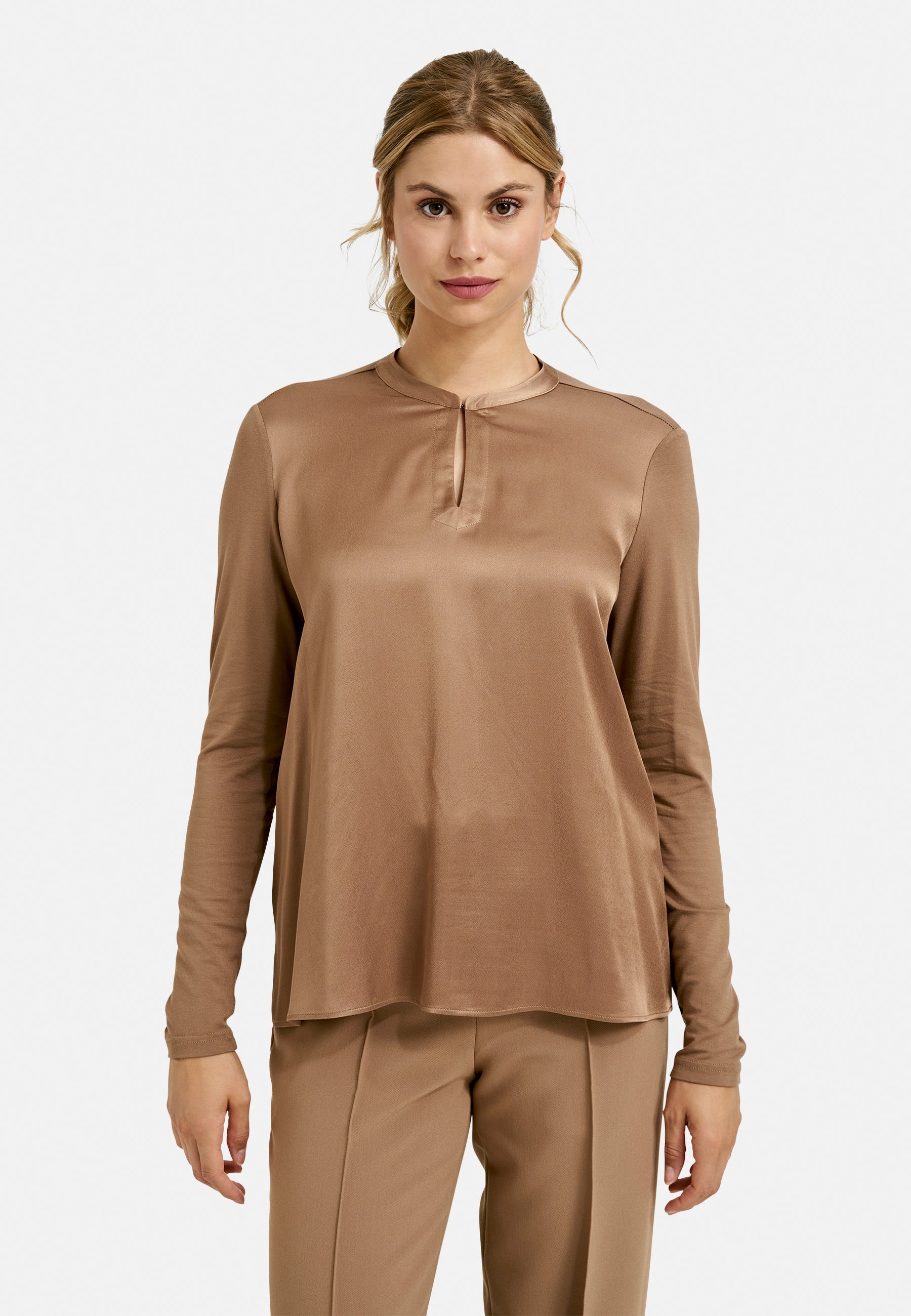 Longsleeve with roundneck and slit at cf, front woven fabric