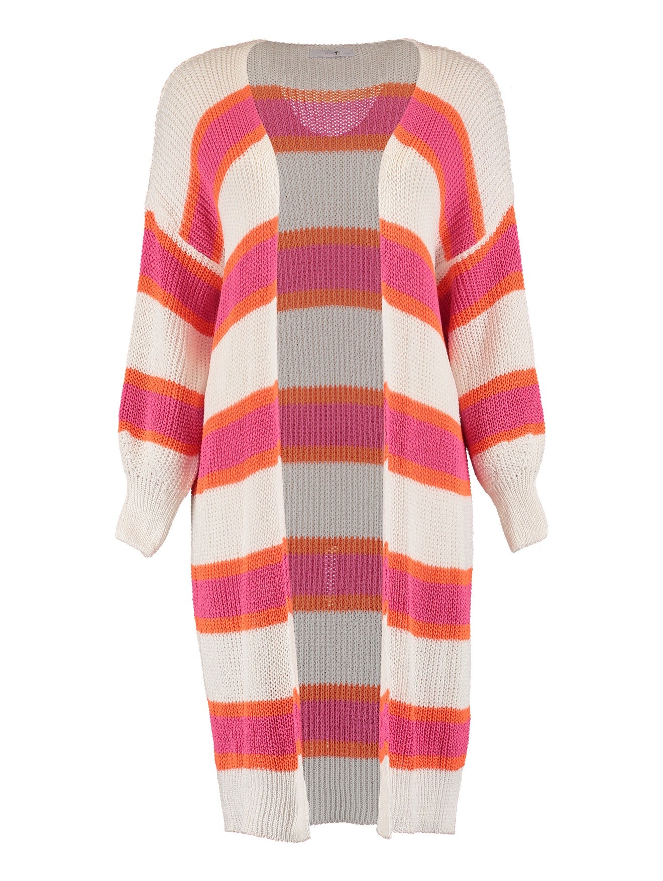 langer Cardigan offen, langärmelig, mit breiten Streifen50% Baumwolle, 50% Polyacryl