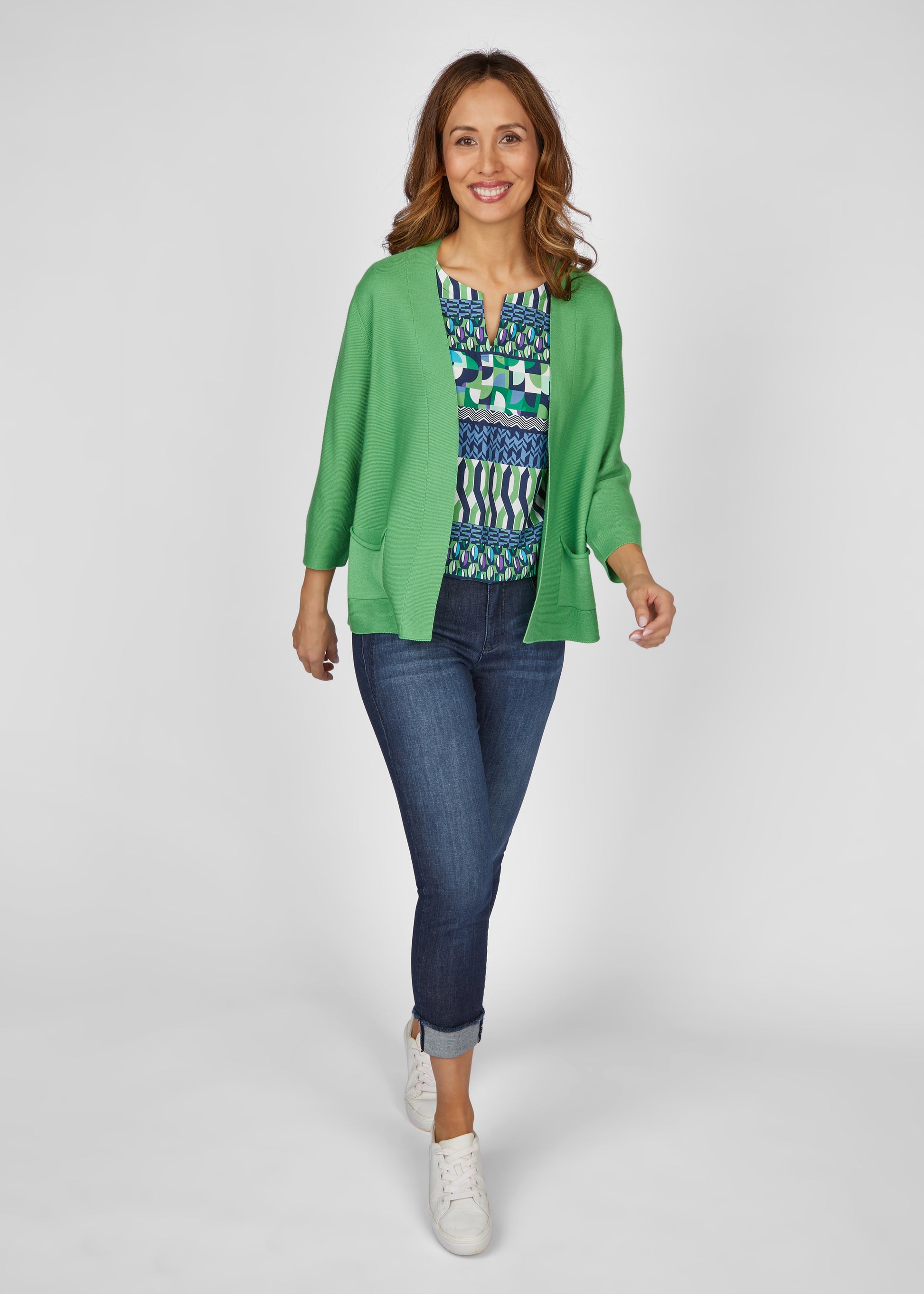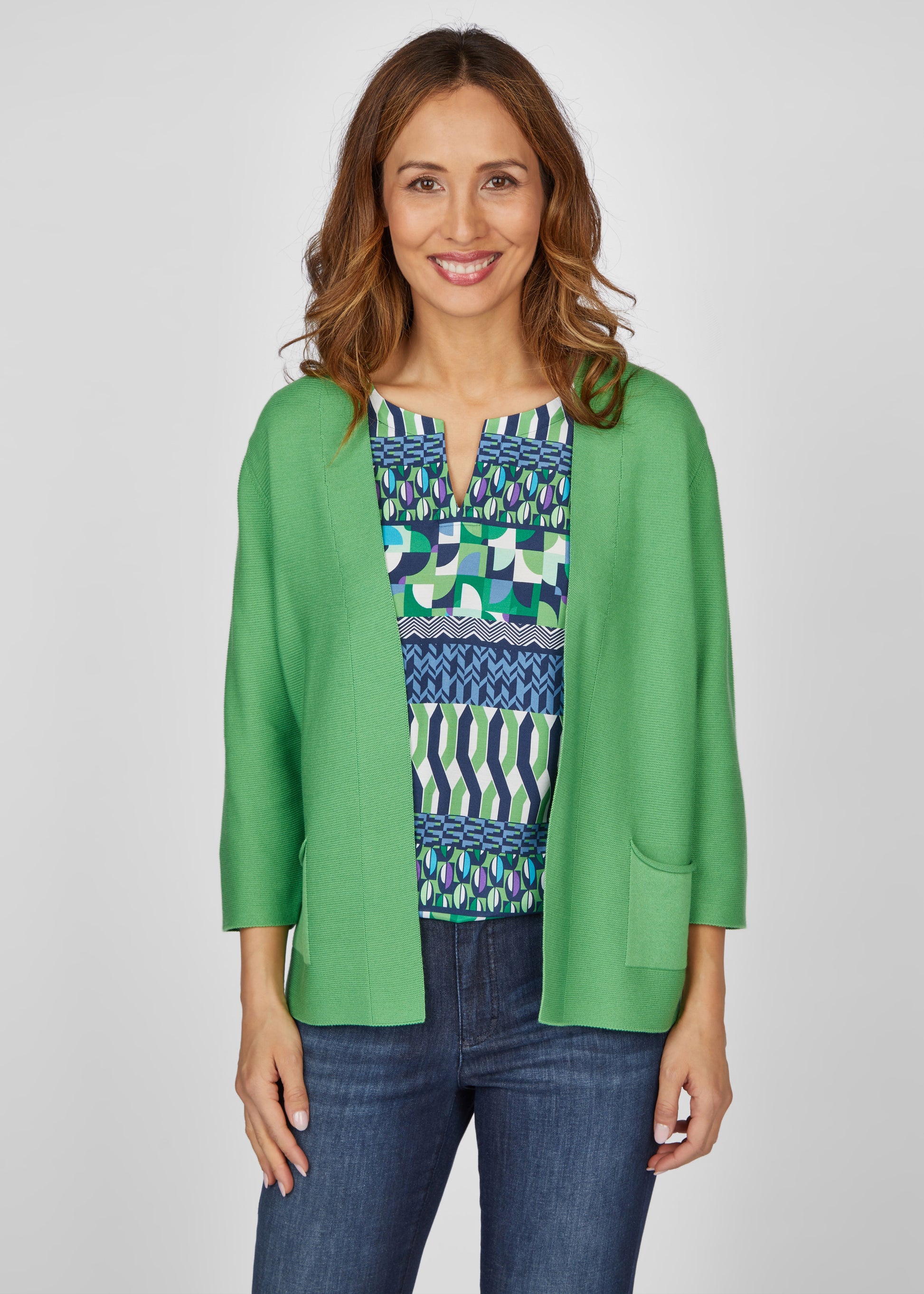Entdecken Sie unsere verschlusslose Strickjacke mit 3/4-Arm in unifarbenem Design. Die Jacke ist aus hochwertigem Material gefertigt und besteht zu gleichen Teilen aus Baumwolle und Polyester. Sie verfügt über einen praktischen Stehkragen und zwei Taschen. Diese vielseitige Strickjacke ist sowohl bequem als auch stilvoll und eignet sich perfekt für jede Gelegenheit.50% Baumwolle, 50% Polyacryl