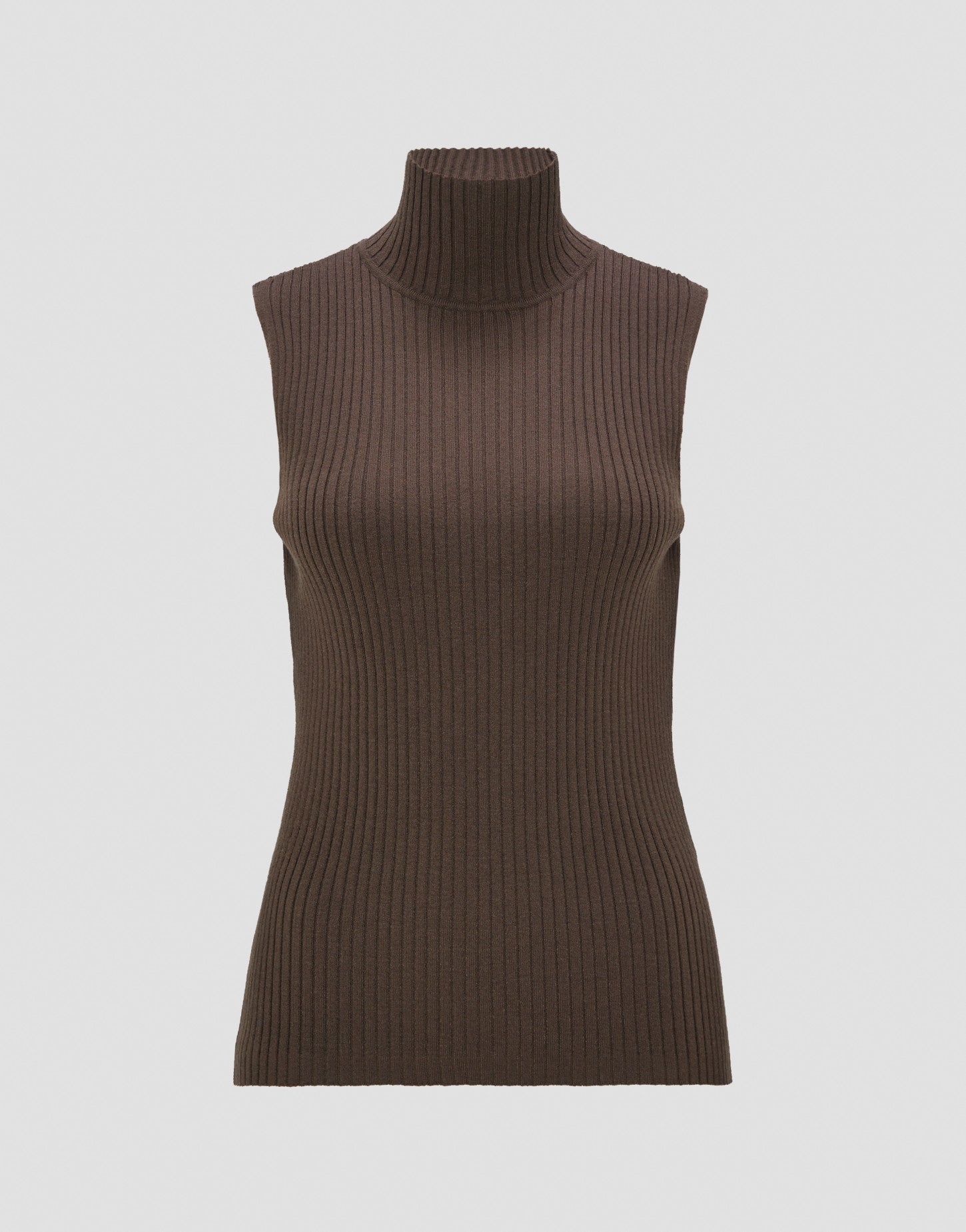 Be mindful: ECOVERO Viskose-Mix, breiter Rippenstrick, feminine Silhouette, figurbetont, Rollkragen, ärmellos, das Model ist 179 cm groß und trägt Größe 3653% Viskose, 24% Polyester, 23% Polyamid