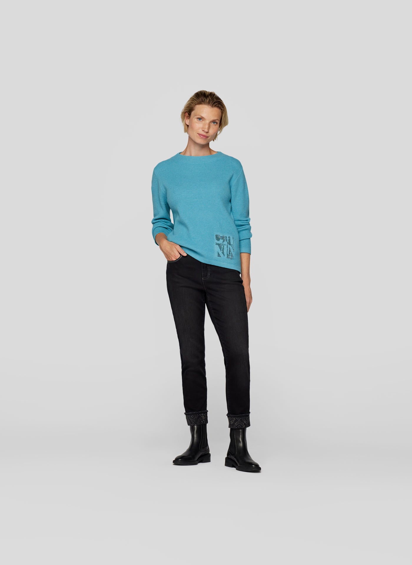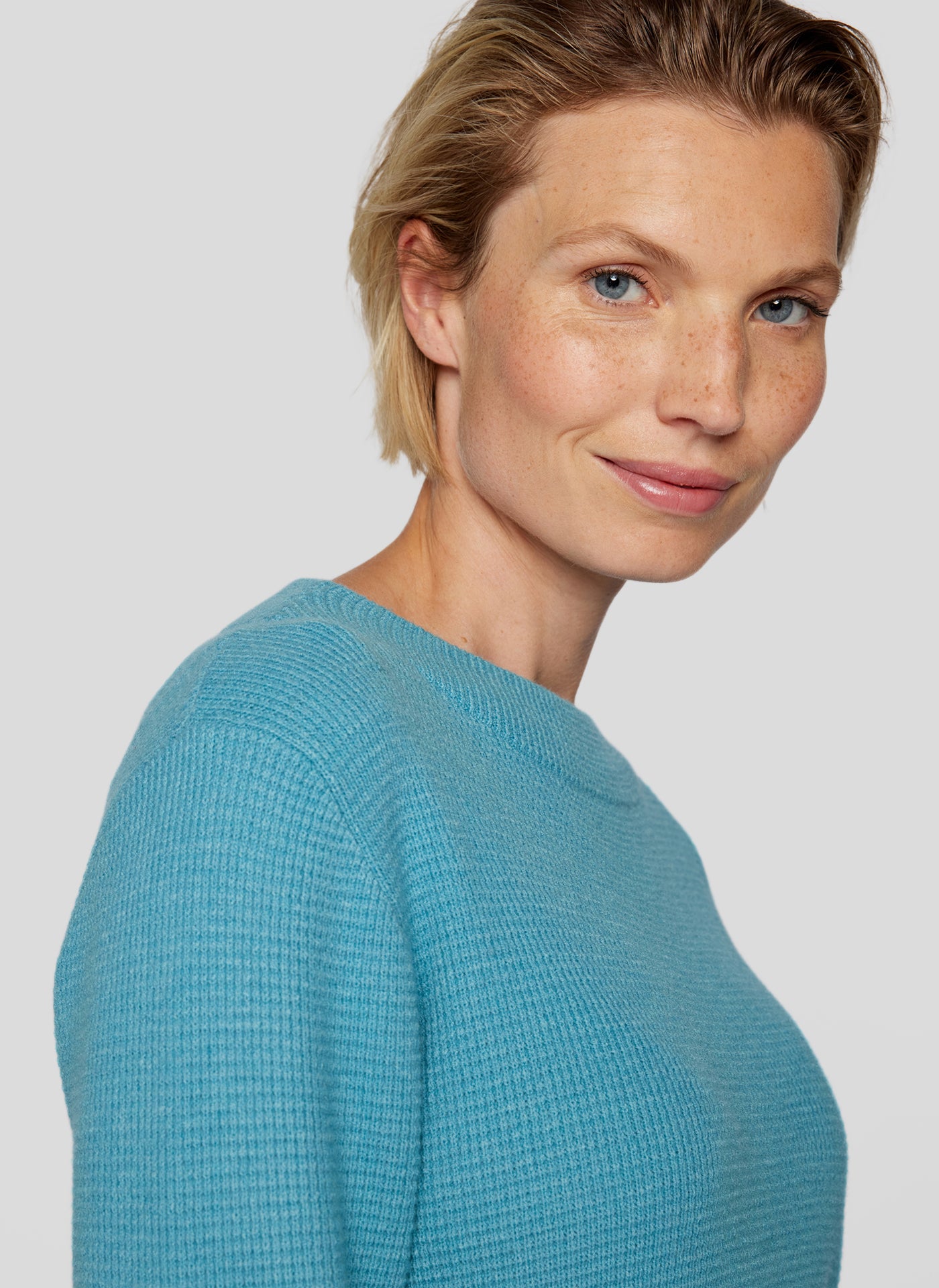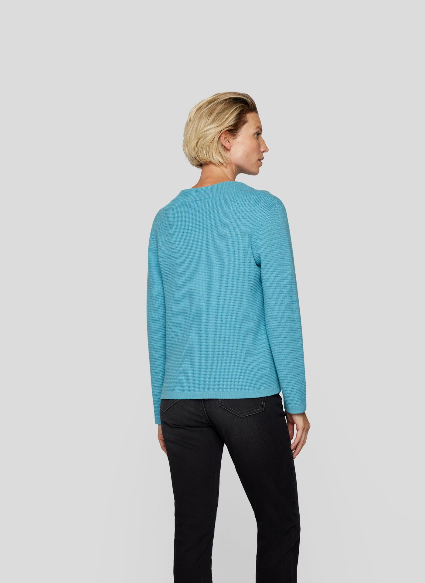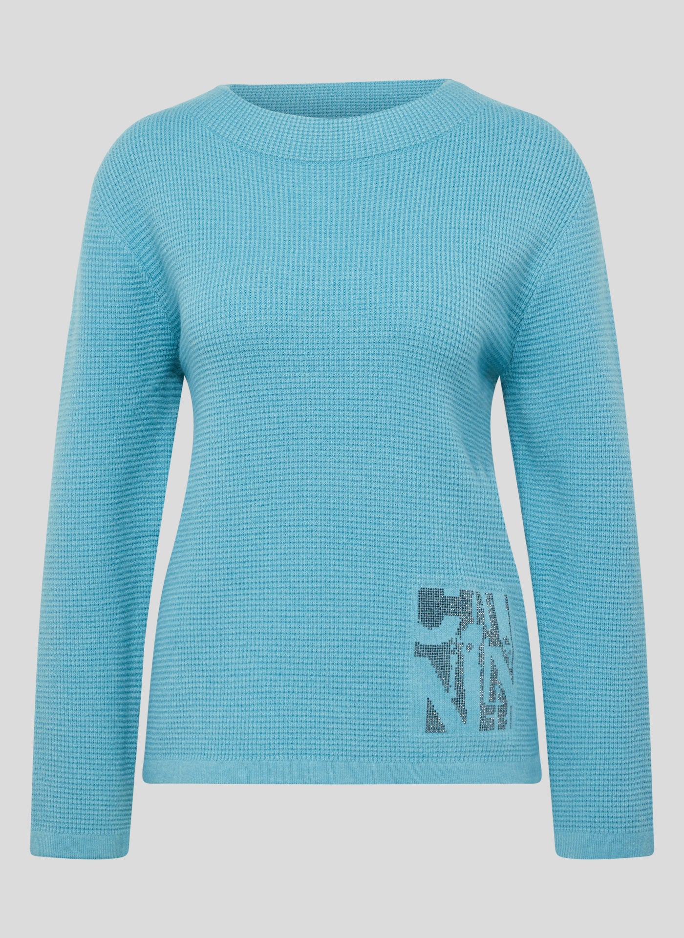 Entdecken Sie das perfekte Zusammenspiel von Komfort und Stil mit diesem strahlend blauen Pullover. Ideal für kühlere Tage und ein echter Hingucker in jeder Garderobe. Elegante, strukturierte Oberfläche mit dezentem Print am Saum. Figurumspielende Silhouette mit Rundhalsausschnitt. Perfekt kombinierbar mit Jeans, Röcken oder Hosen.50 % Polyester, 30 % Viskose, 20 % Polyamid