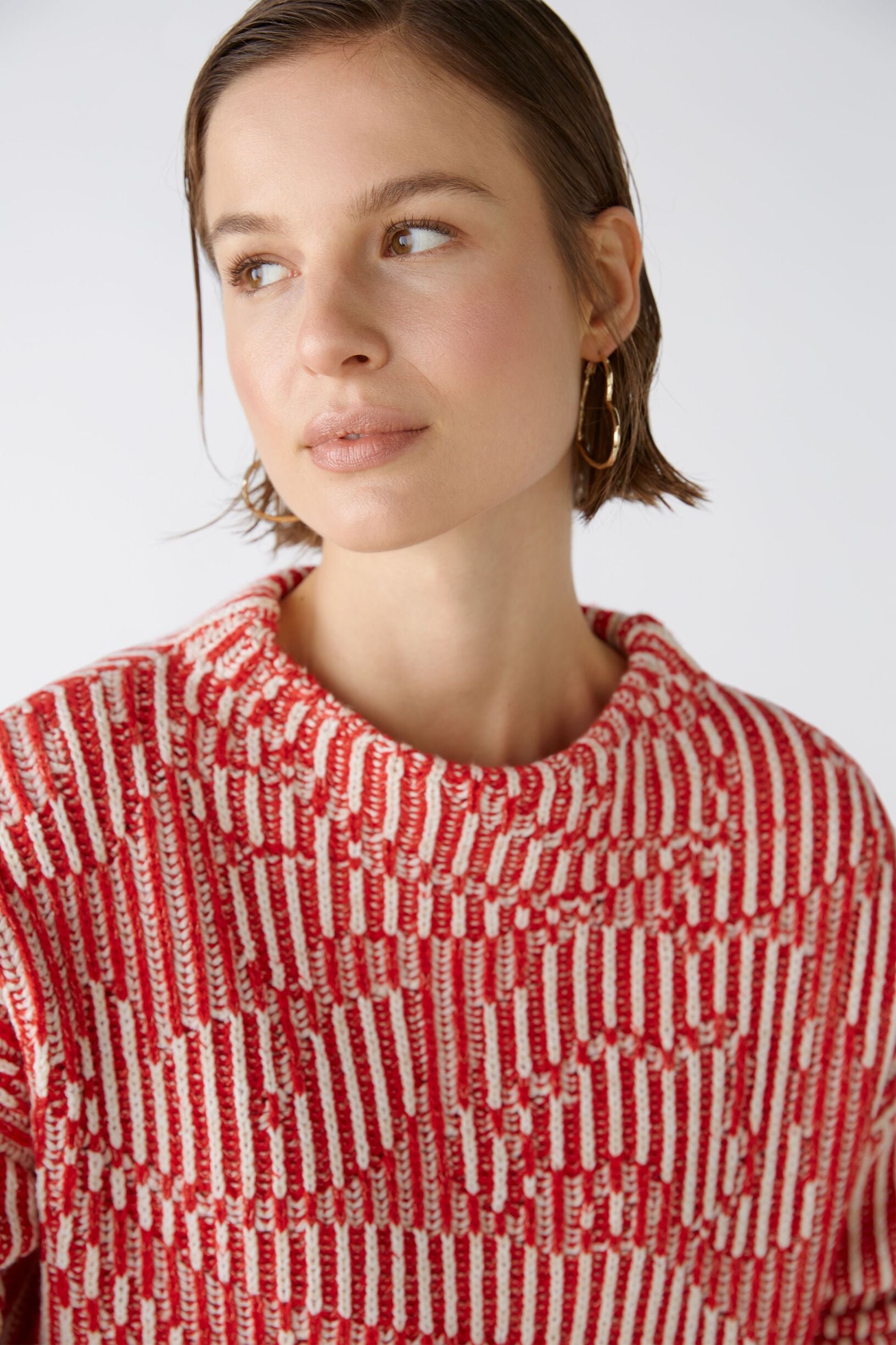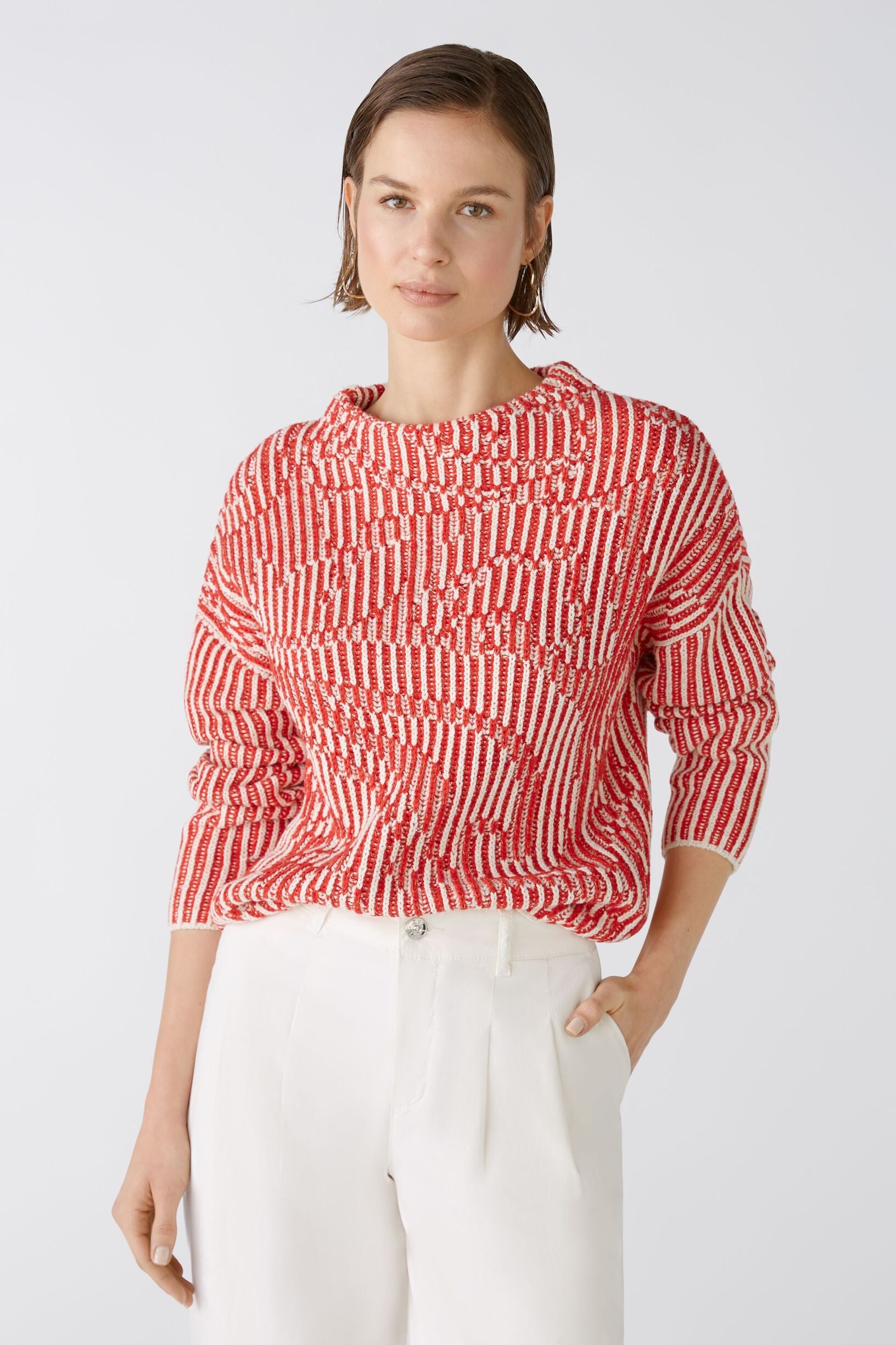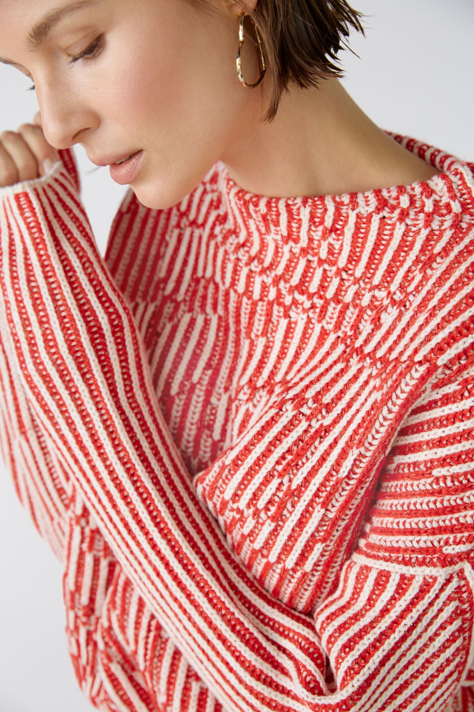 Oui Iconic Garnmix: Unterschiedliche Garne, jedes in einer anderen Farbe und Qualität werden vom Design individuell vertwisted und lassen so einen außergewöhnlichen Pullover entstehen