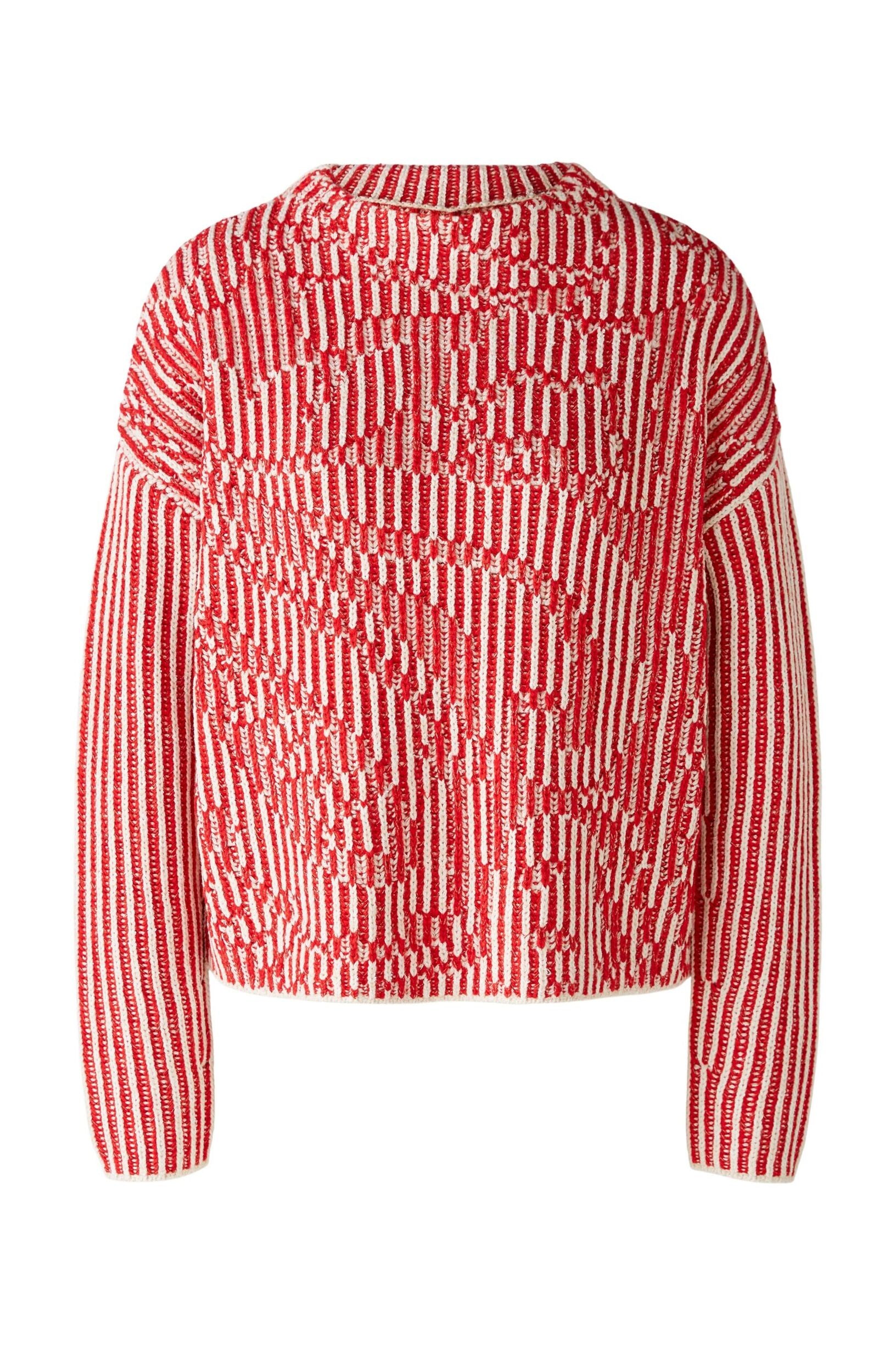 Die besondere Stricktechnik zeigt als Intarsie ein großes Paisleymotiv vorne und ein zweifarbiges Streifendesign am Rücken und am ArmObermaterial: 56 % Baumwolle, 38 % Polyacryl, 6 % Polyester