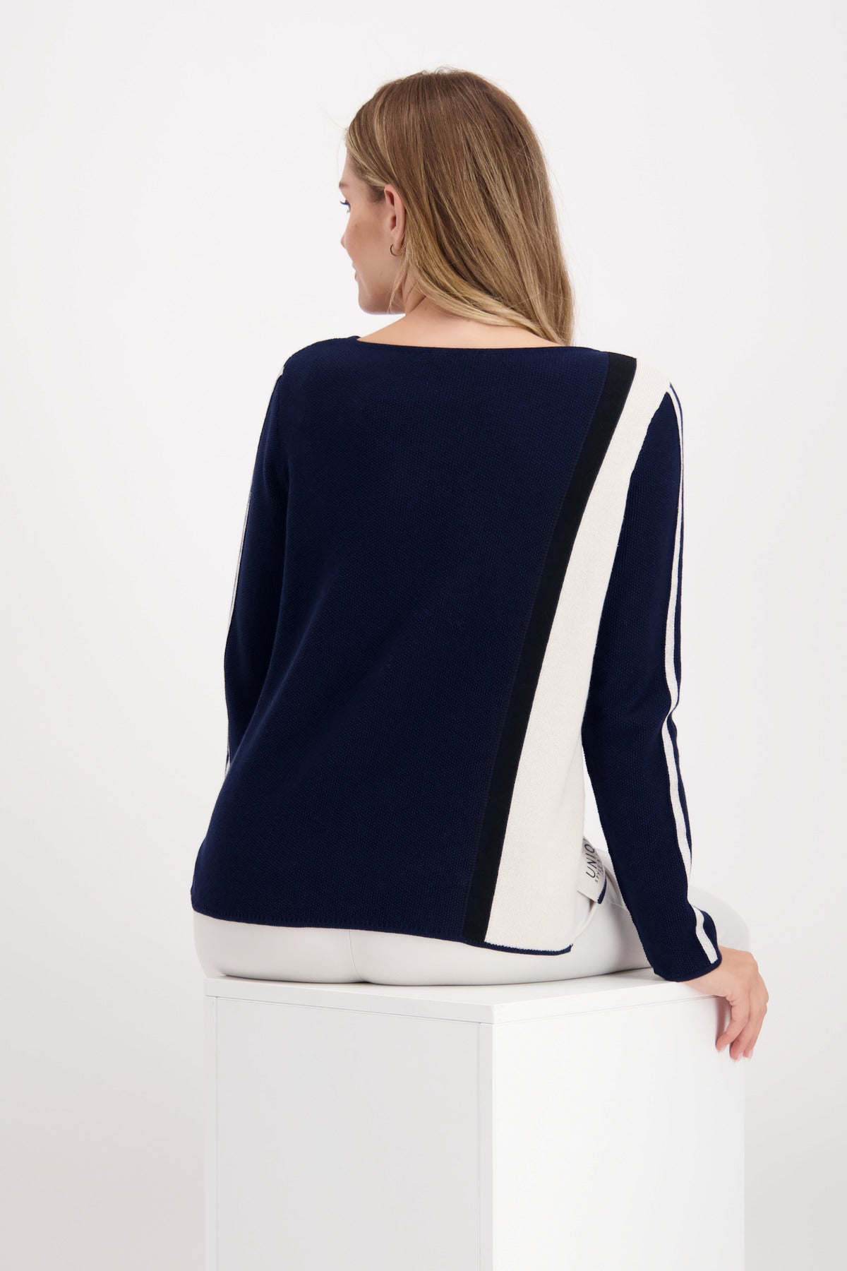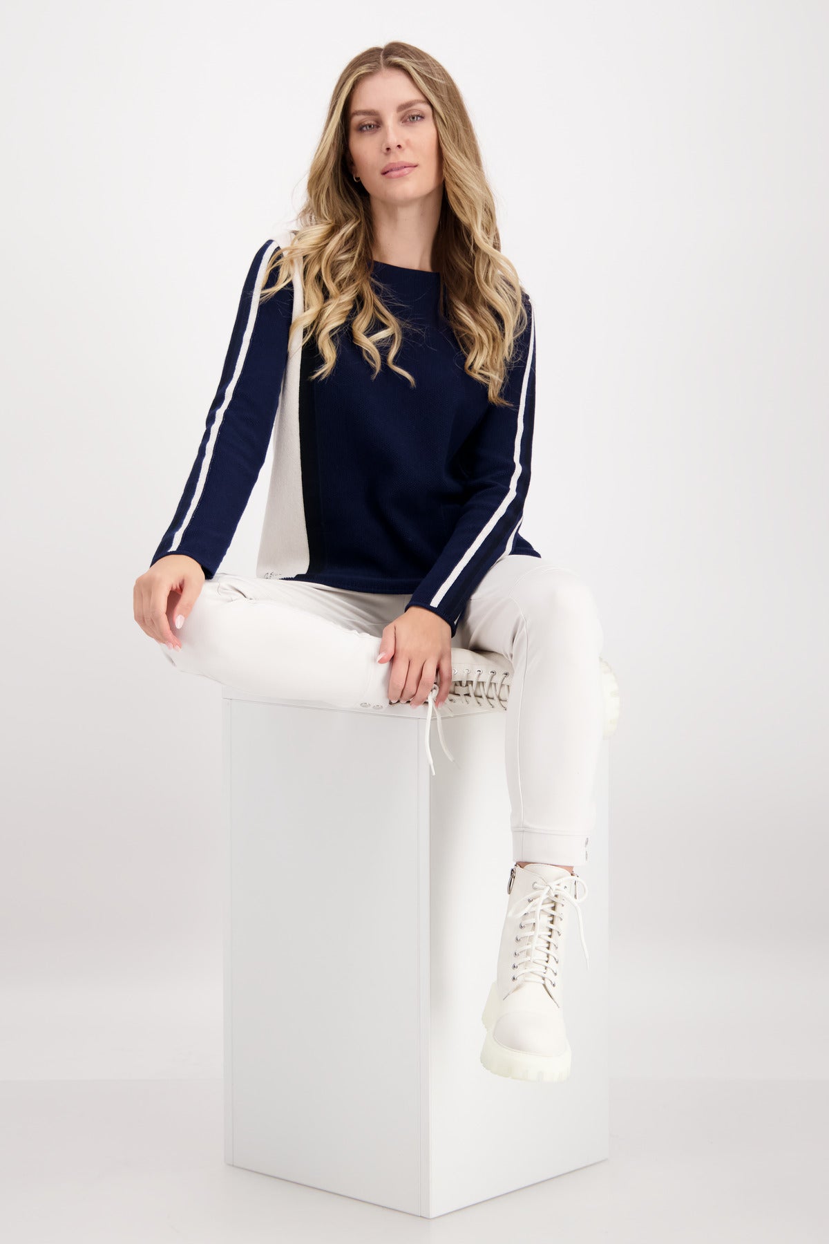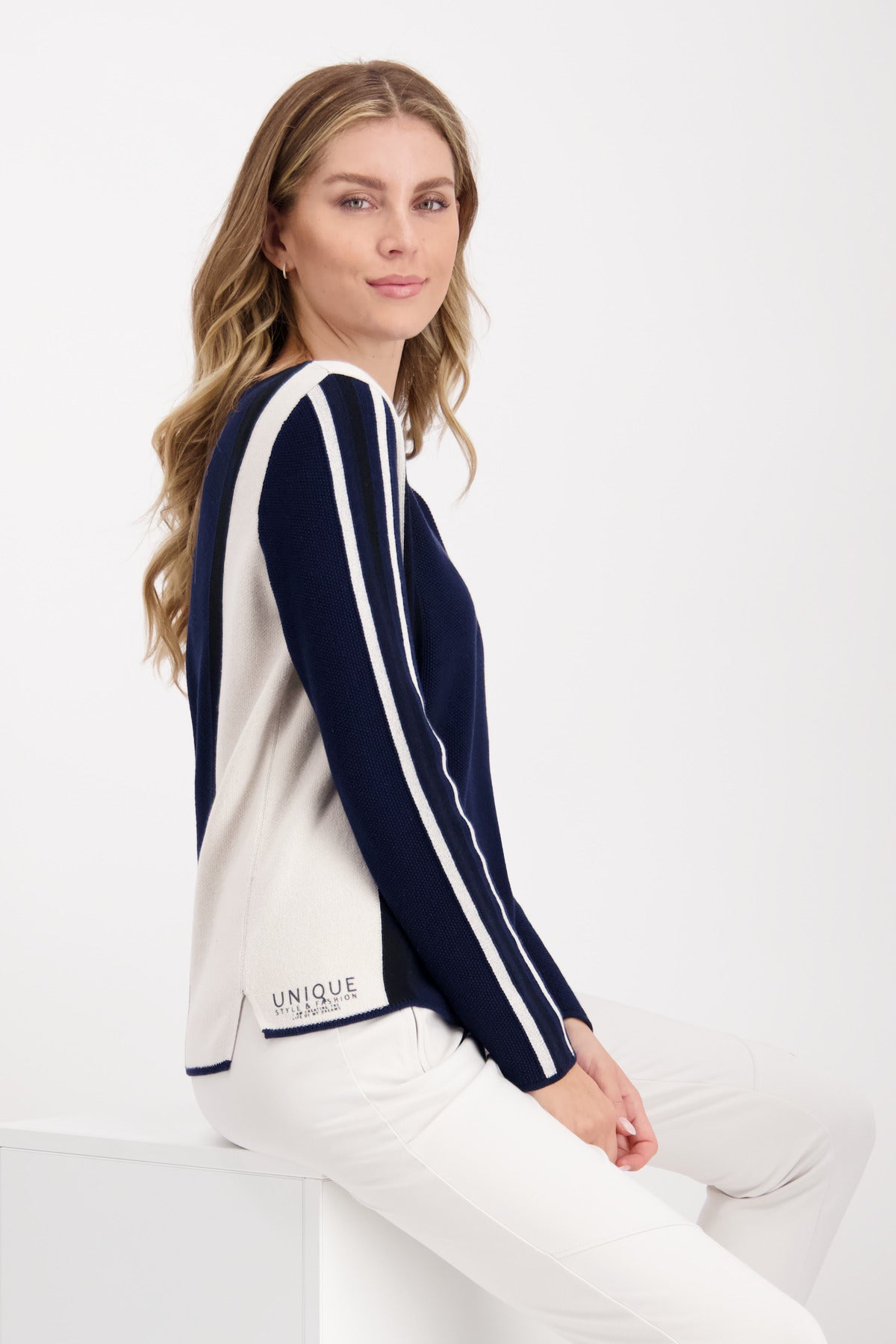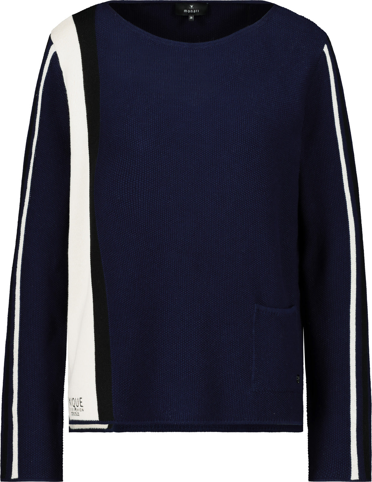 100% hochwertige Baumwolle sorgt bei diesem angesagten monari Strickpullover für ein wohliges und hautfreundliches Tragegefühl. Die gerade Form mit Rundhalsausschnitt hat neben mit kontrastfarbigen Stoffeinsätzen geschmückten Ärmeln auch eine auffällige Frontseite im Colour-Blocking-Design zu bieten. Die Allover-Reiskornstruktur kommt hervorragend zur Geltung und präsentiert das It-Piece von seiner besten Seite. Was sagen Sie dazu?100% Baumwolle