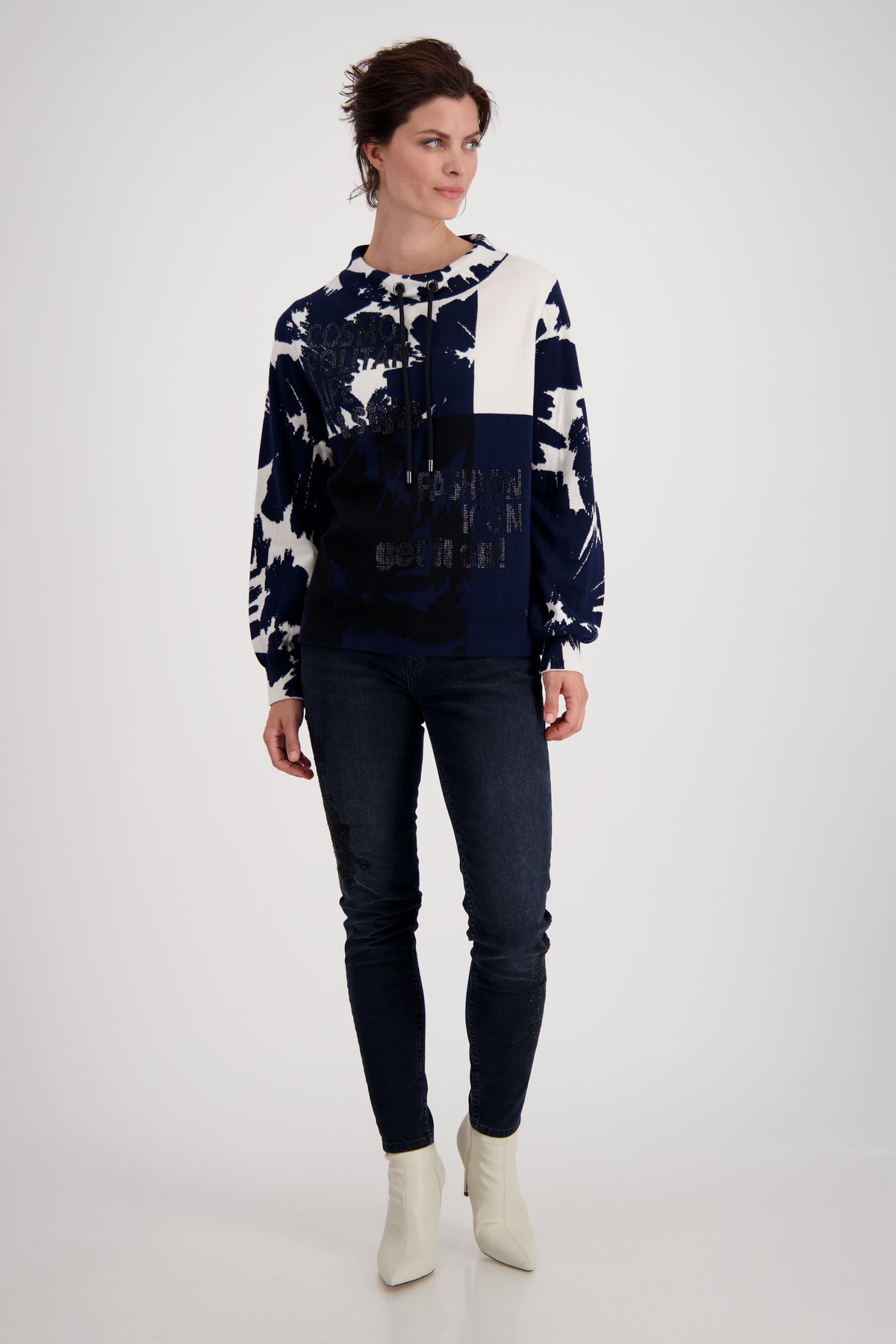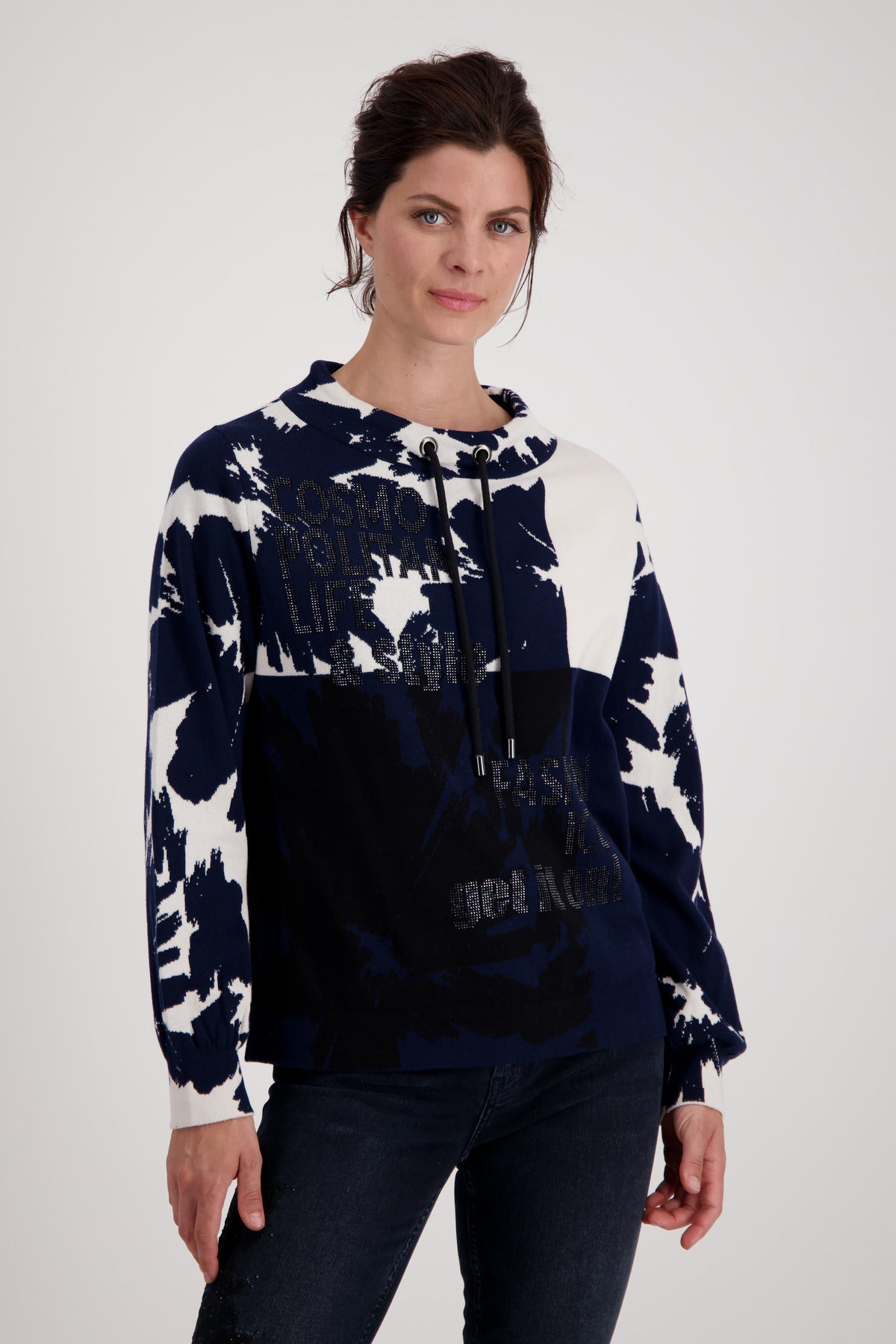 Die langen Ärmel dieses stilvollen monari Pullovers enden mit breiten Bündchen und einer Kräuselung. Ergänzt wird die gerade Form durch einen Stehkragen mit Tunnelzug, Ringösen und einem Band zum Binden. Das Colour-Blocking-Design wird von einem Blumen-Jacquard und glamouröser Strassschrift modisch unterbrochen und verleiht dem It-Piece den letzten Schliff. Wenn Sie den Strickpullover zu einer angesagten Slim-Fit-Jeans mit Blumenstickerei und schönen Stiefeletten tragen, steht einem trendigen Outfit nichts mehr im Wege. Probieren Sie es selbst.98% Baumwolle, 2% Polyamid