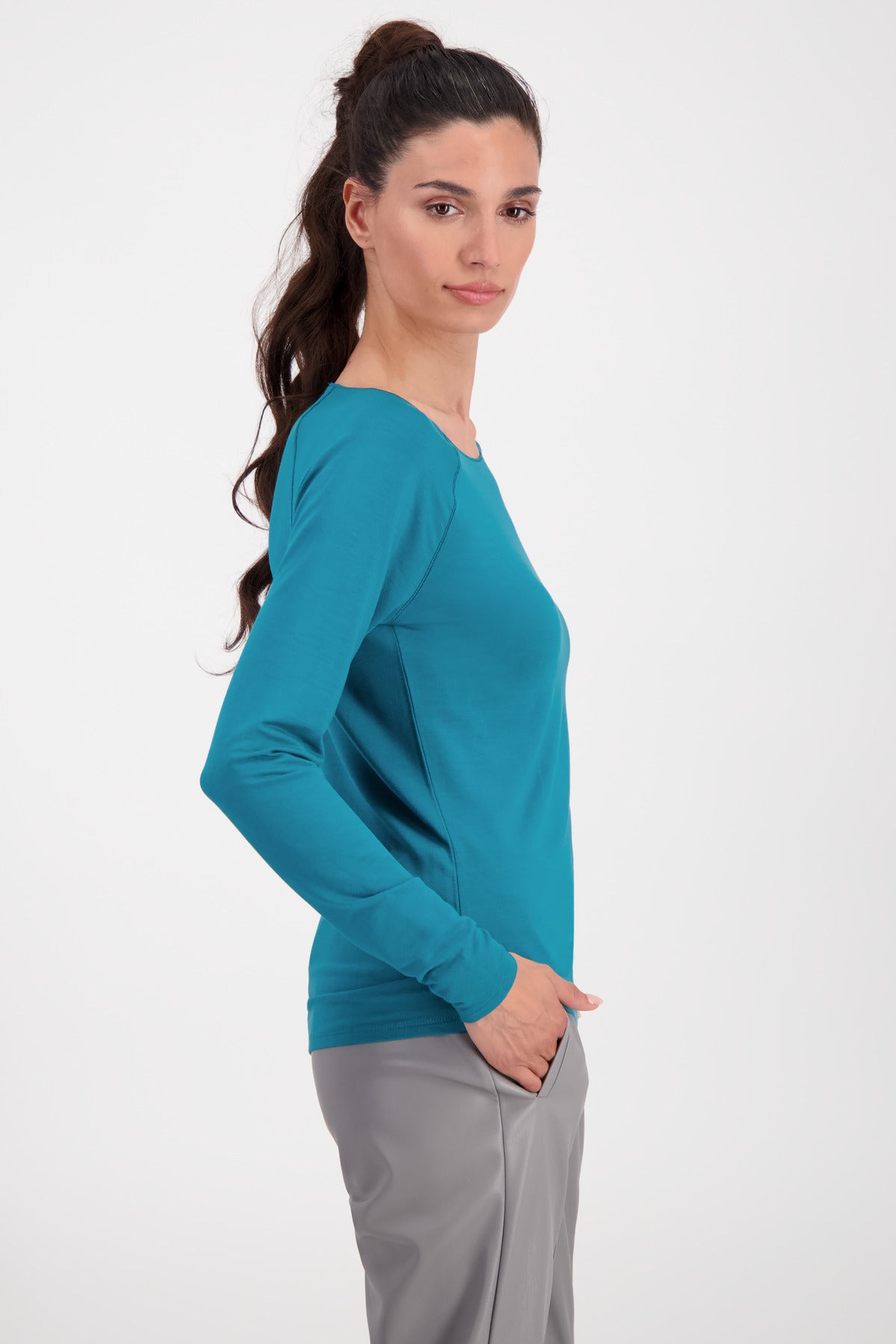 Das ultrasofte Langarmshirt mit Rundhalsausschnitt ist das perfekte Basic-Shirt für Ihre Garderobe. Die Viskosemischung mit Stretch Anteil garantiert einen hohen Tragekomfort.45% Viskose, 45% Modal, 10% Elasthan