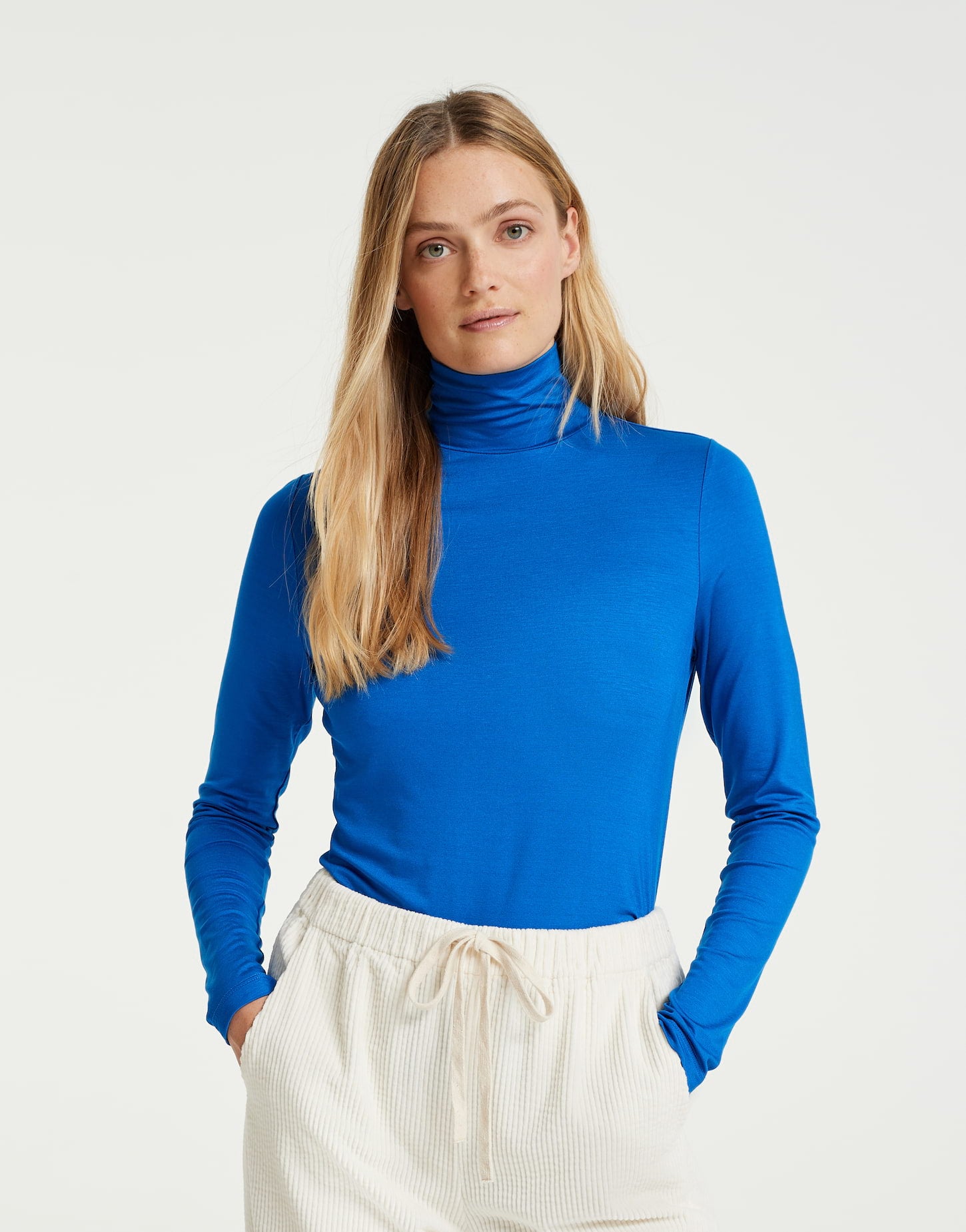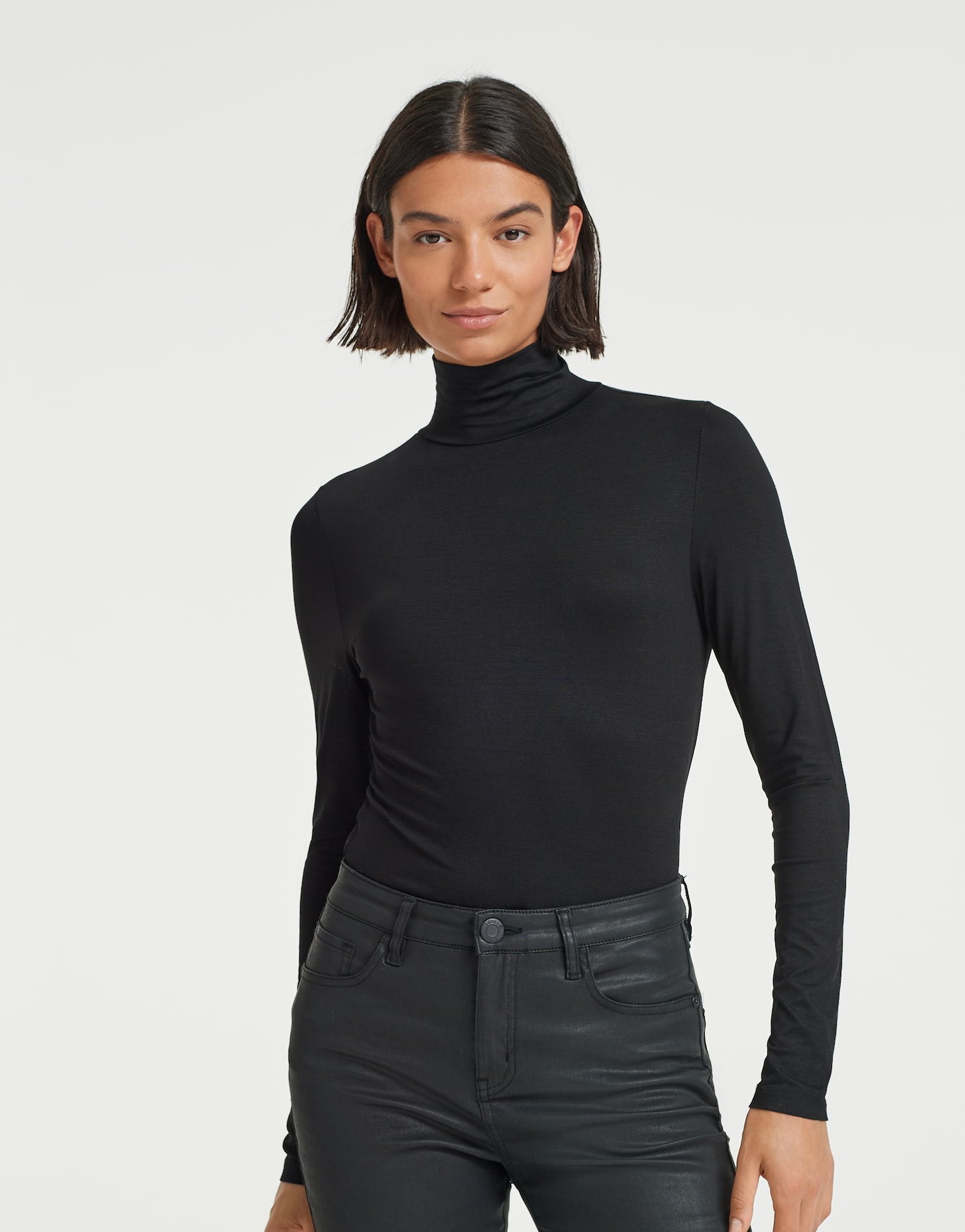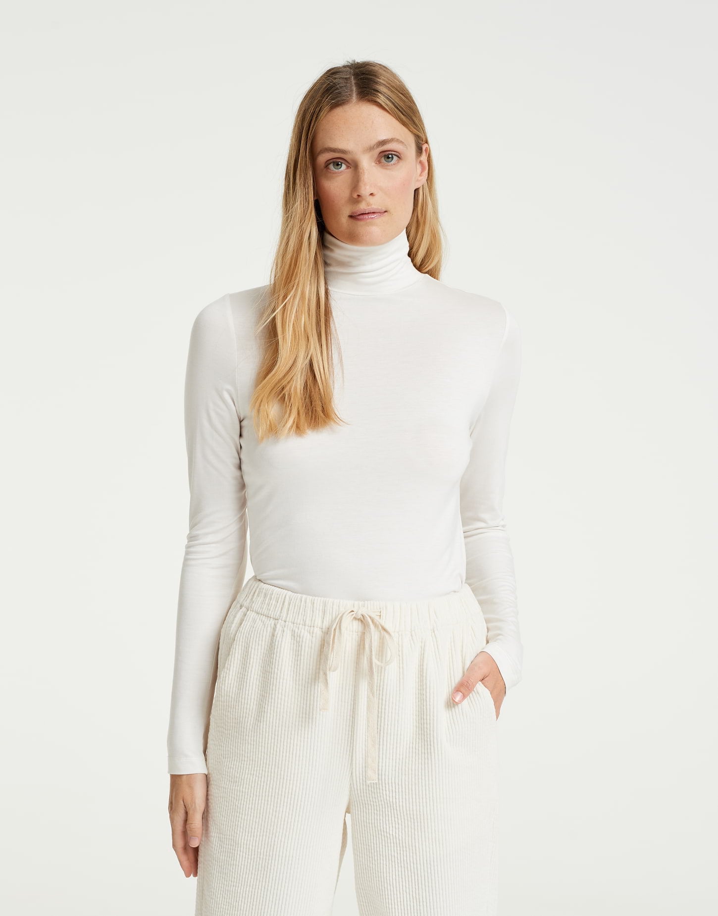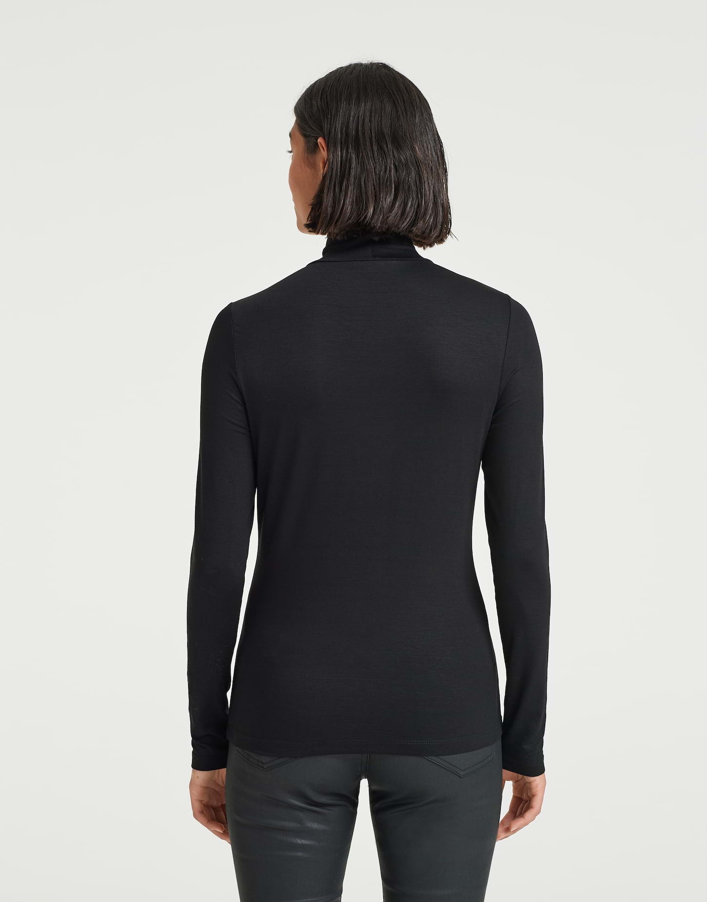 ECOVERO Viskose Mix, schmal, Rollkragen, Basic, das Model ist 176 cm groß und trägt Größe 3694% Viskose, 6% Elasthan