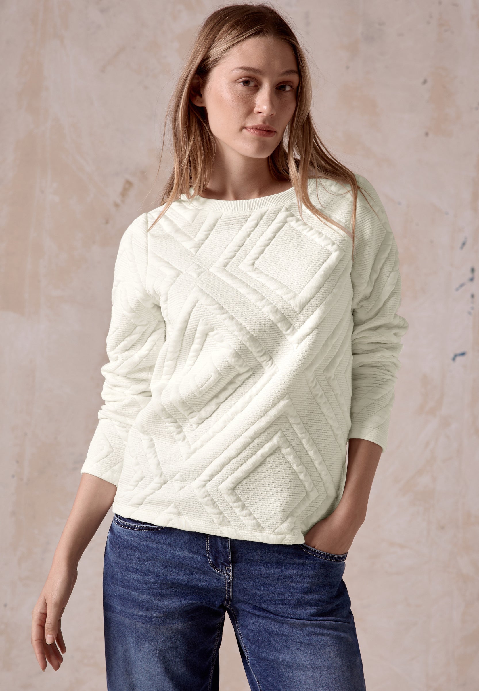 Das Shirt mit 3D Strukturmuster von CECIL für Damen ist ein modisches Highlight. Der U-Boot-Ausschnitt und die langärmeligen Bündchen ergänzen das Strukturmuster perfekt. Seitliche Schlitze im Saum sorgen für zusätzliche Bewegungsfreiheit. Damenshirt Langarm mit Bündchen U-Boot-Ausschnitt Strukturmuster Seitliche Schlitze im Saum Material: 80% Polyester, 17% Viskose, 3% Elasthan80 % Polyester, 17 % Viskose, 3 % Elasthan
