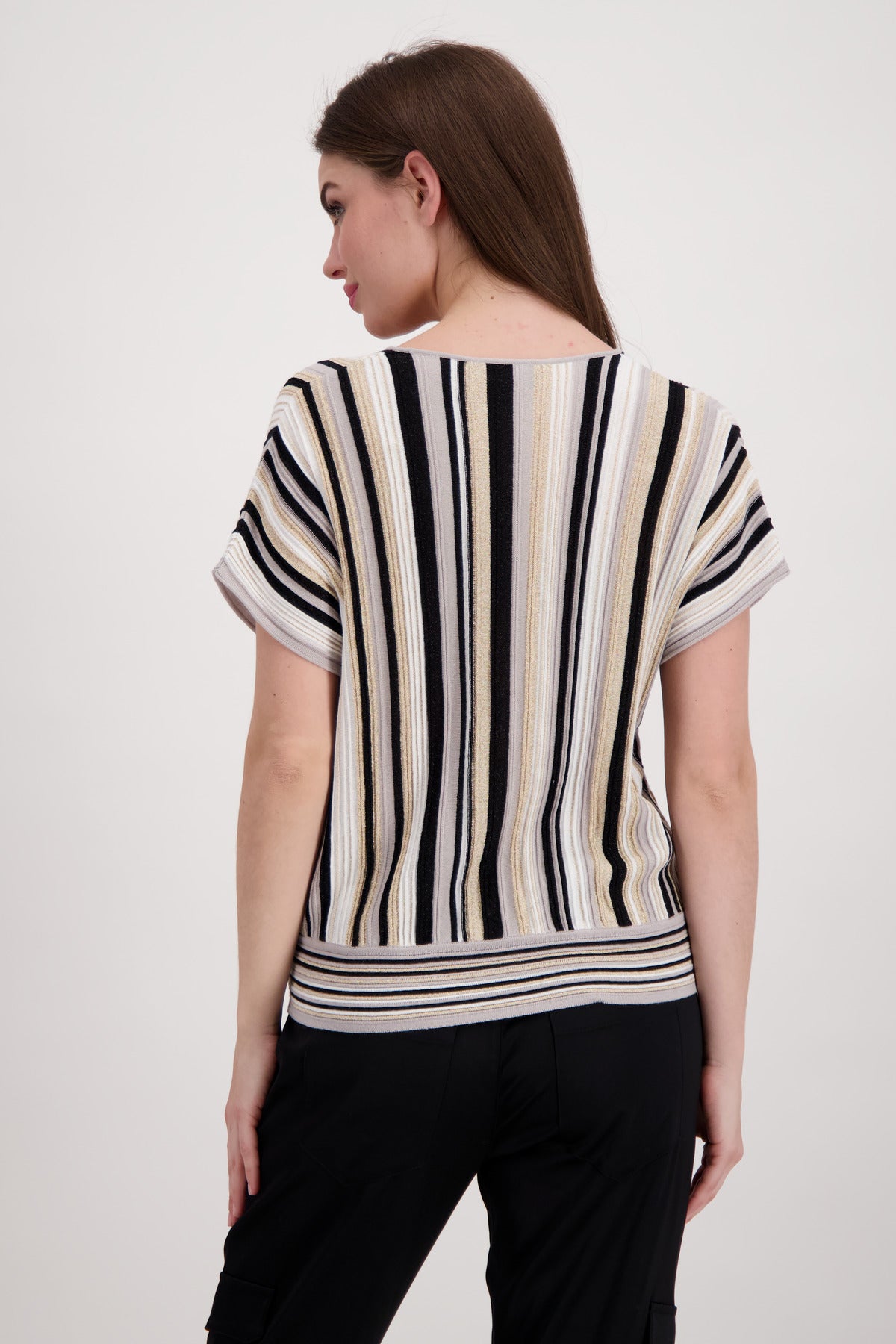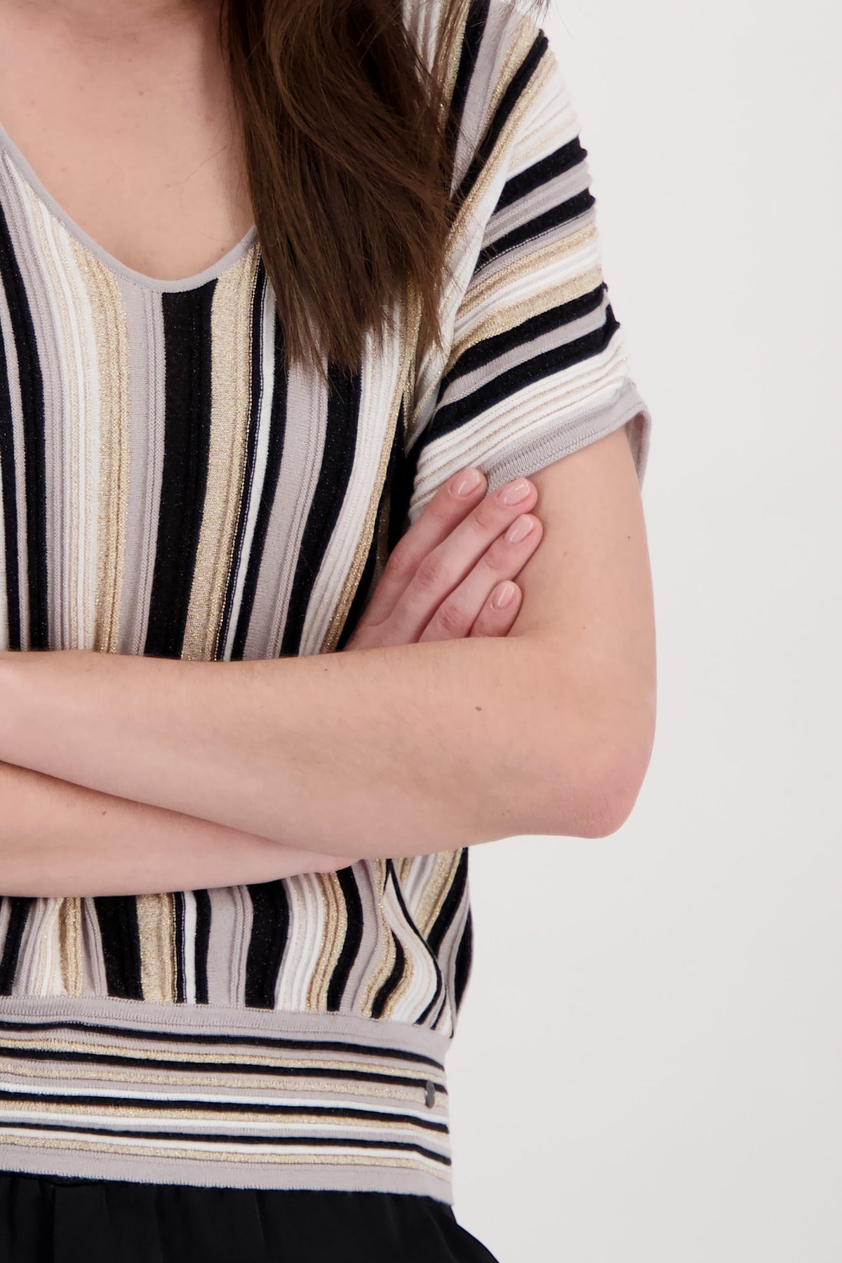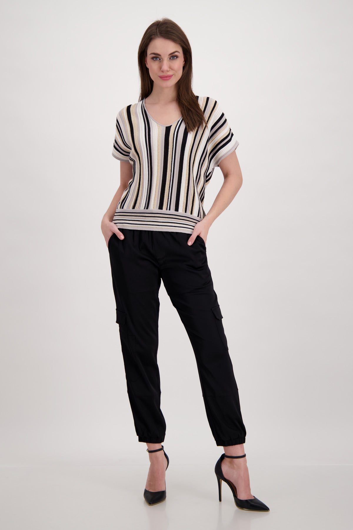 Das T Shirt mit einem Regular Fit, einem V Ausschnitt und kurzen Raglanärmeln verleiht dem Damen Shirt eine stilvolle Note. Ergänzt wird die coole Form durch überschnittene Schultern und einer Rollkante am Ärmelsaum. Der Saum endet mit einem breiten Bündchen mit coolen Querstreifen. Baumwolle und Viskose im Mix sorgen zudem für einen superangenehmen Sitz und komfortable Trageeigenschaften des elastischen Shirts.49% Baumwolle, 39% Viskose, 12% Metallisiertes Polyester