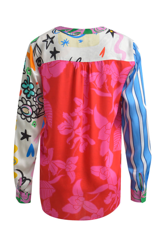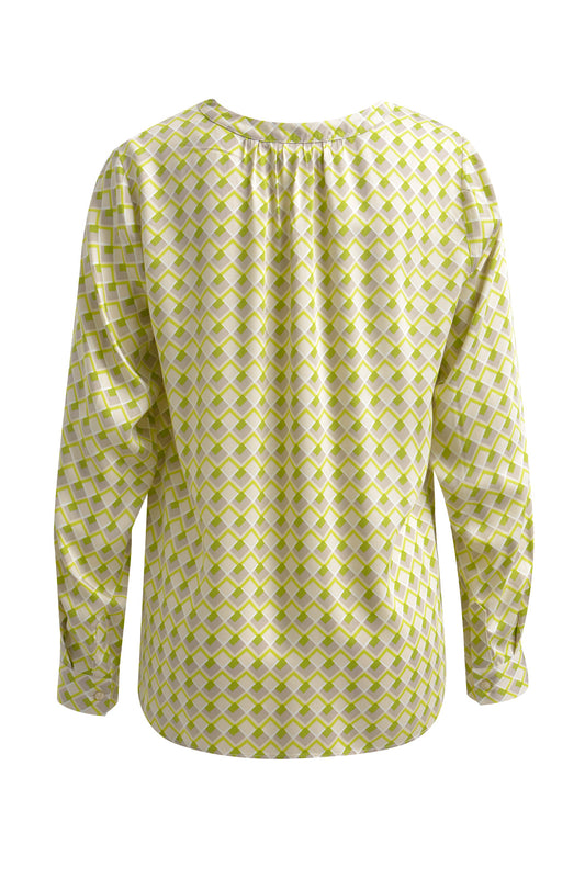 blouse w neckpanel, placket and 1/1 sleeves w turn up