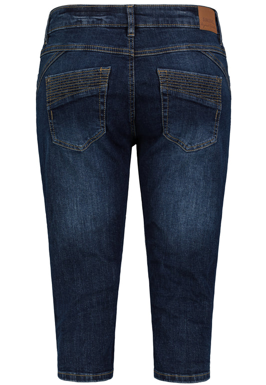 DOB Capri,5-pocket, O-shape, Schlit, dark blue denim