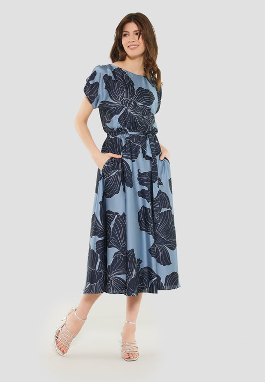AusverkauftMidikleid aus Satin mit Blumendruck