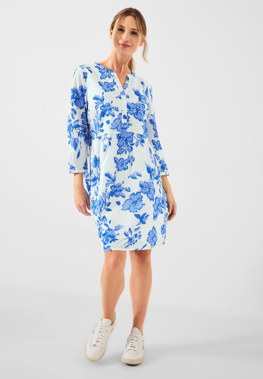 Kleid mit Volants,midi,3/4 Ärmel mit Volant,V-Ausschnitt mit Blende und StegTeilungsnähte