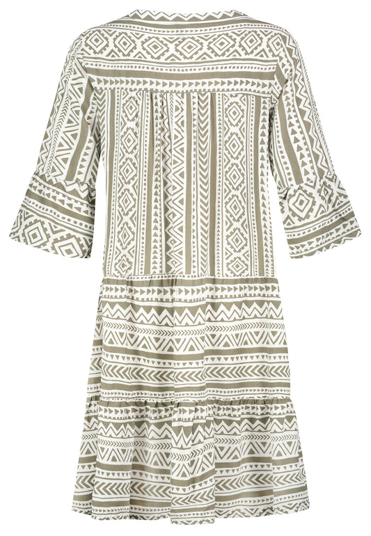 Kleid mit Volants,midi,3/4 Ärmel mit Volant,V-Ausschnitt mit Blende und StegTeilungsnähte