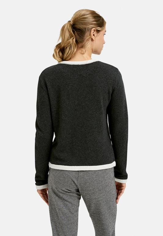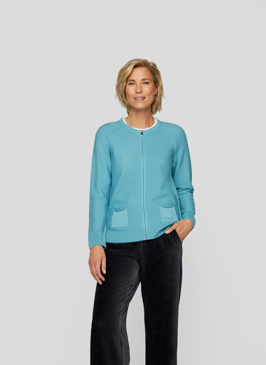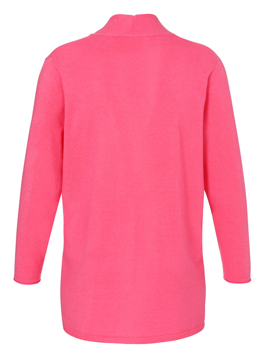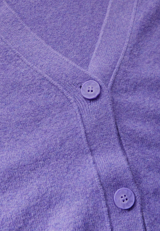 Cardigan w roundneck, placket at cf, 1/1 sleeves