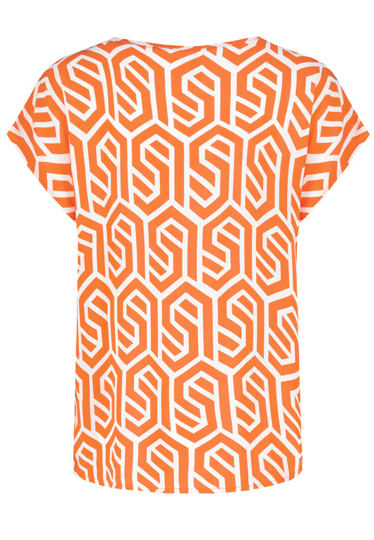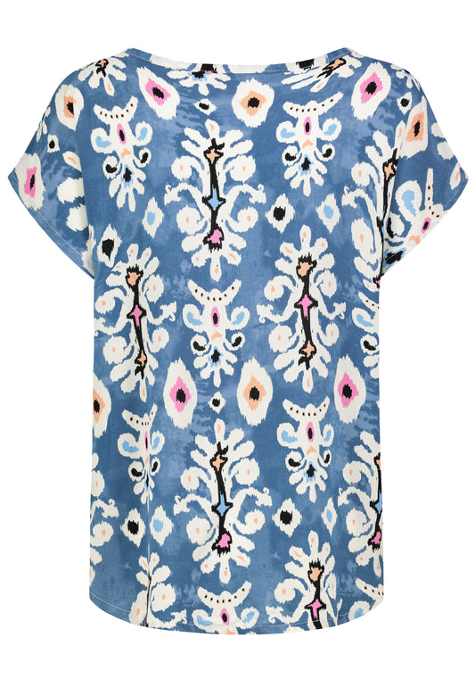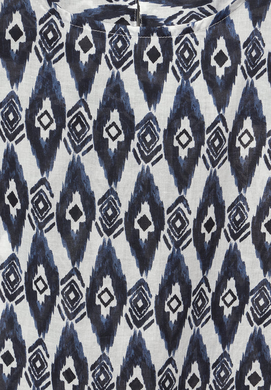 DOB Bluse, Rundhals mit Piping, übe, graphics: black-white