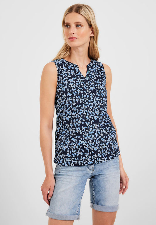 DOB Bluse, Rundhals mit Piping, übe, mille fleurs: multicolour