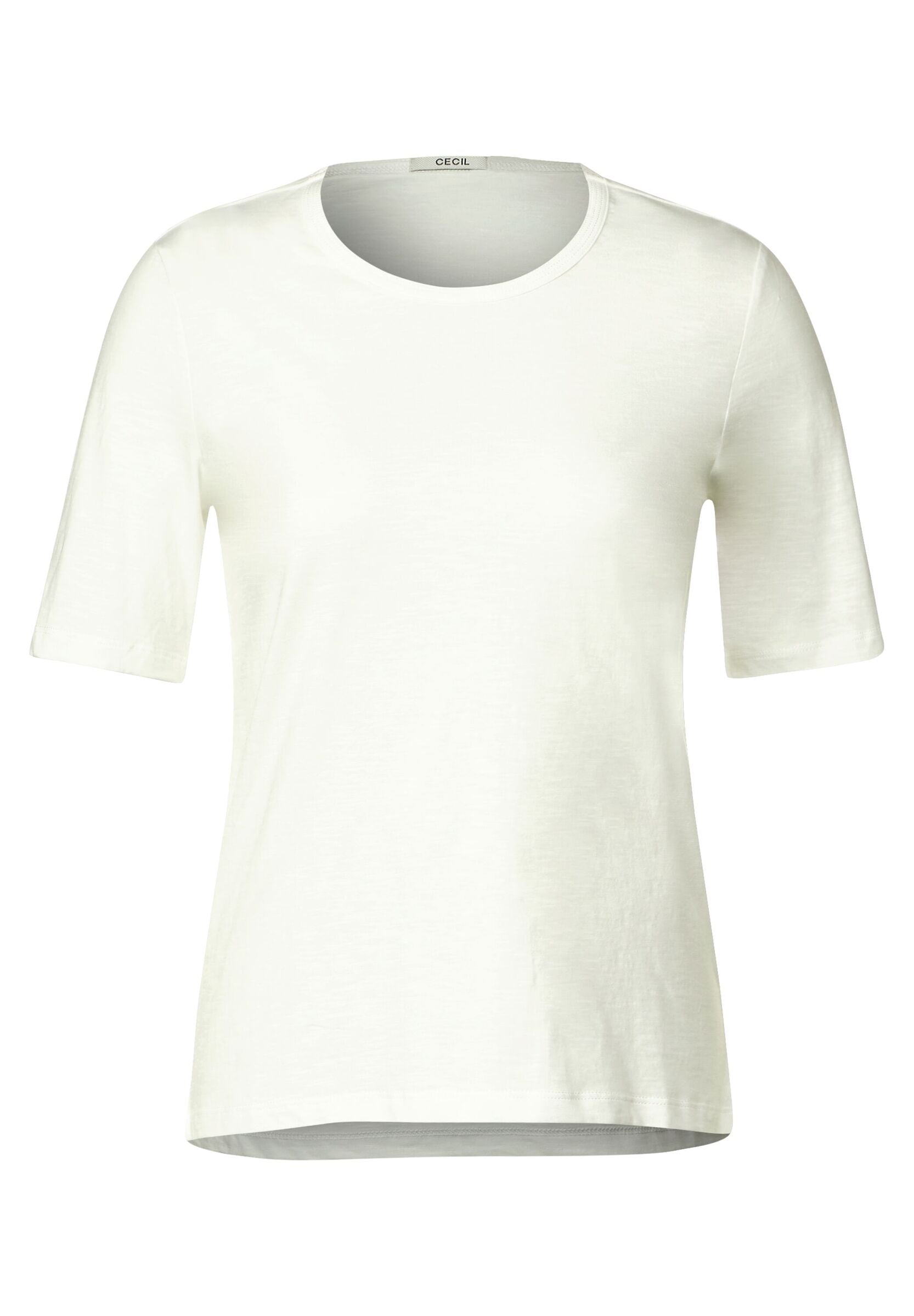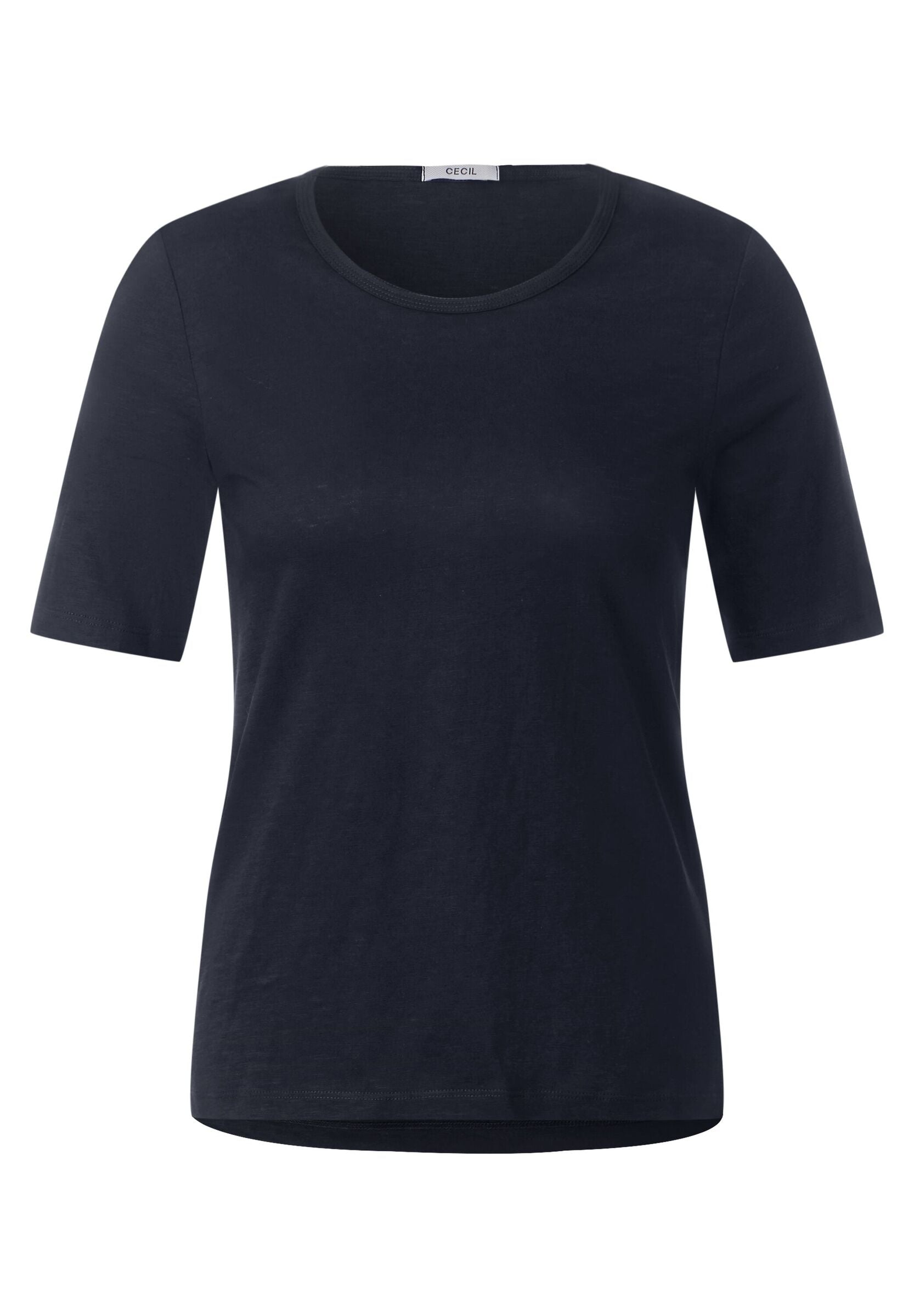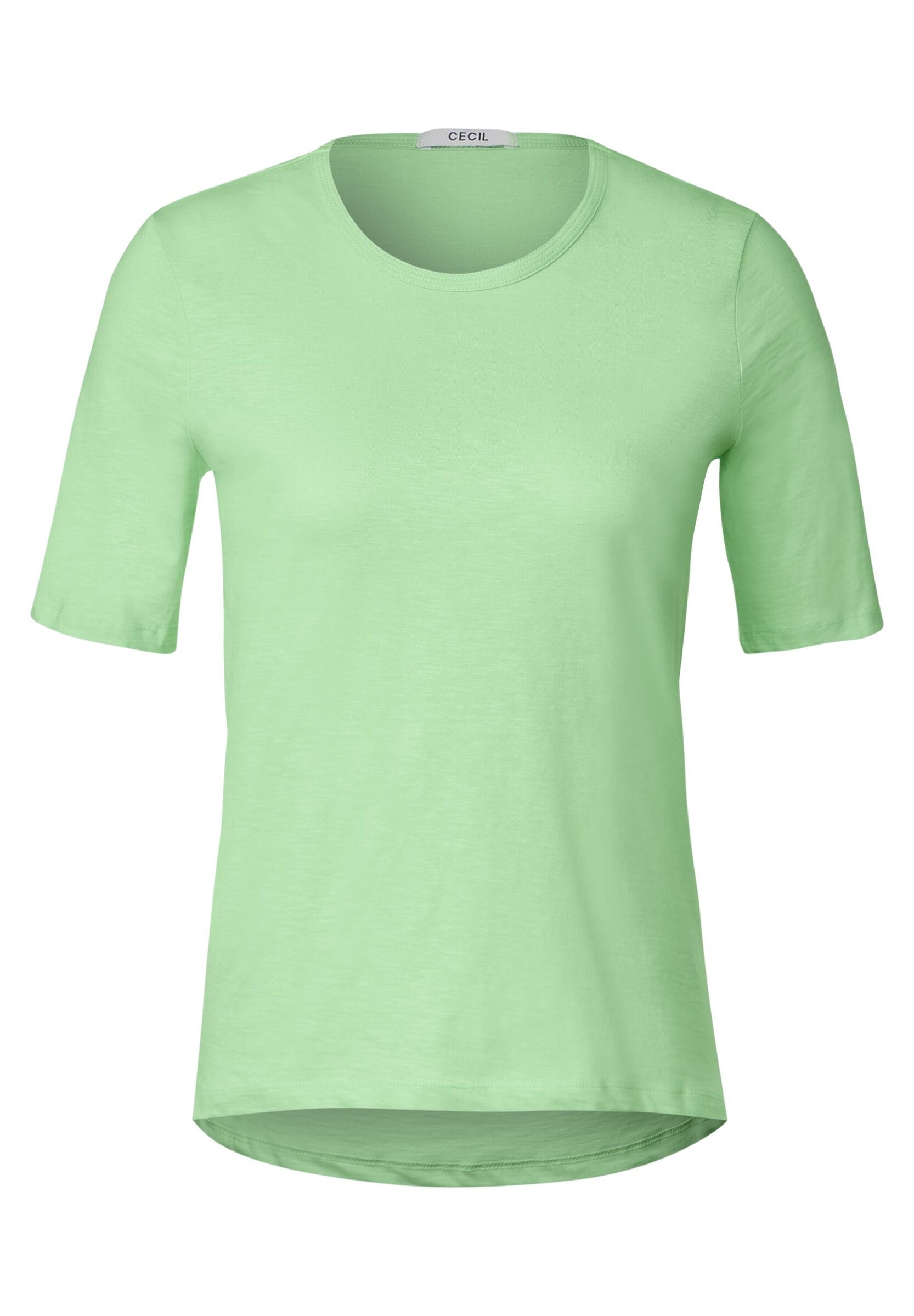 Das Basic T-Shirt von CECIL ist ein unifarbenes Kurzarmshirt mit Rundhals, das durch seine Flammgarn Optik und die angenehme Baumwollqualität besticht. Mit seiner blickdichten Verarbeitung ist es ein vielseitiges Must-have für jede Gelegenheit.