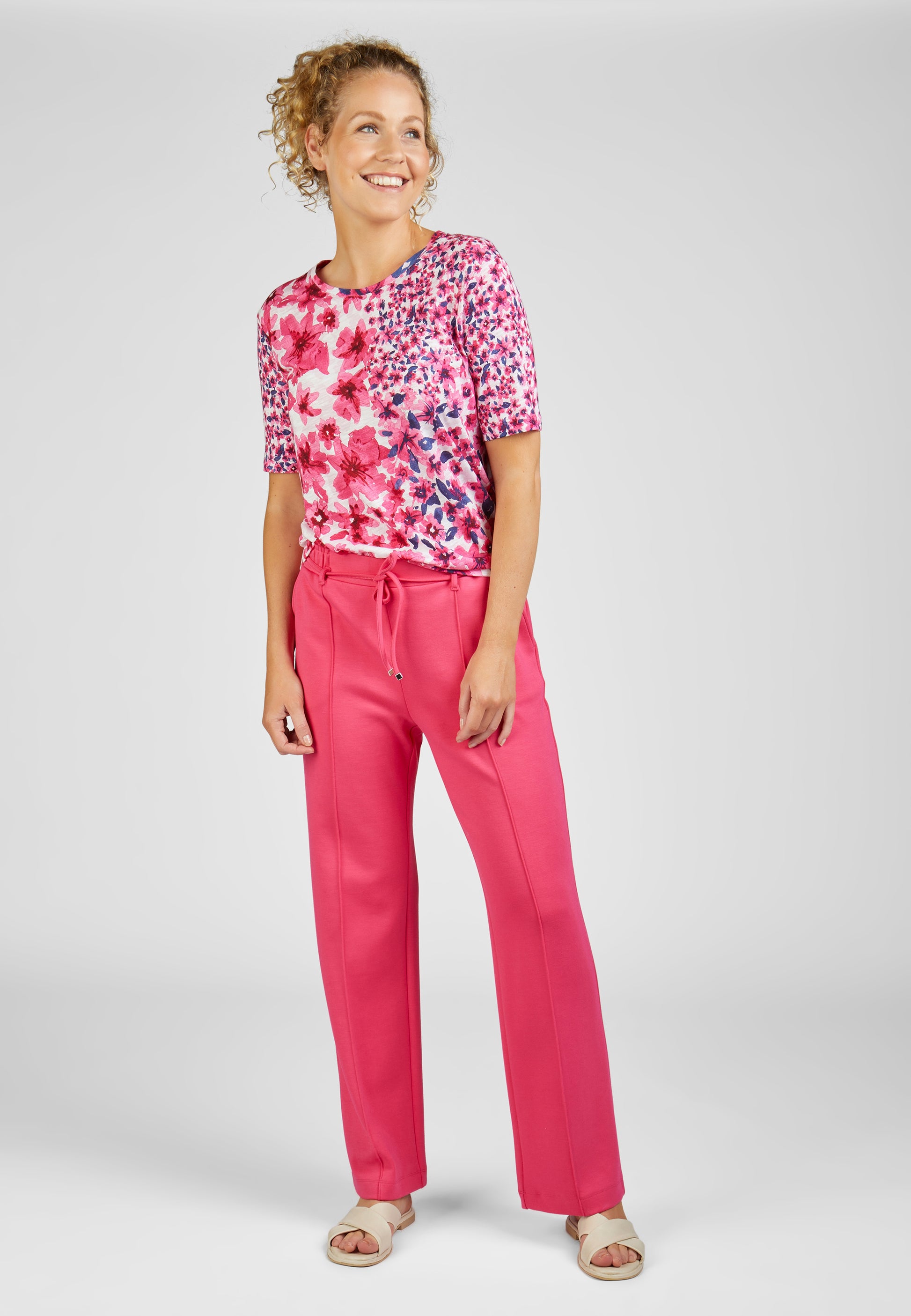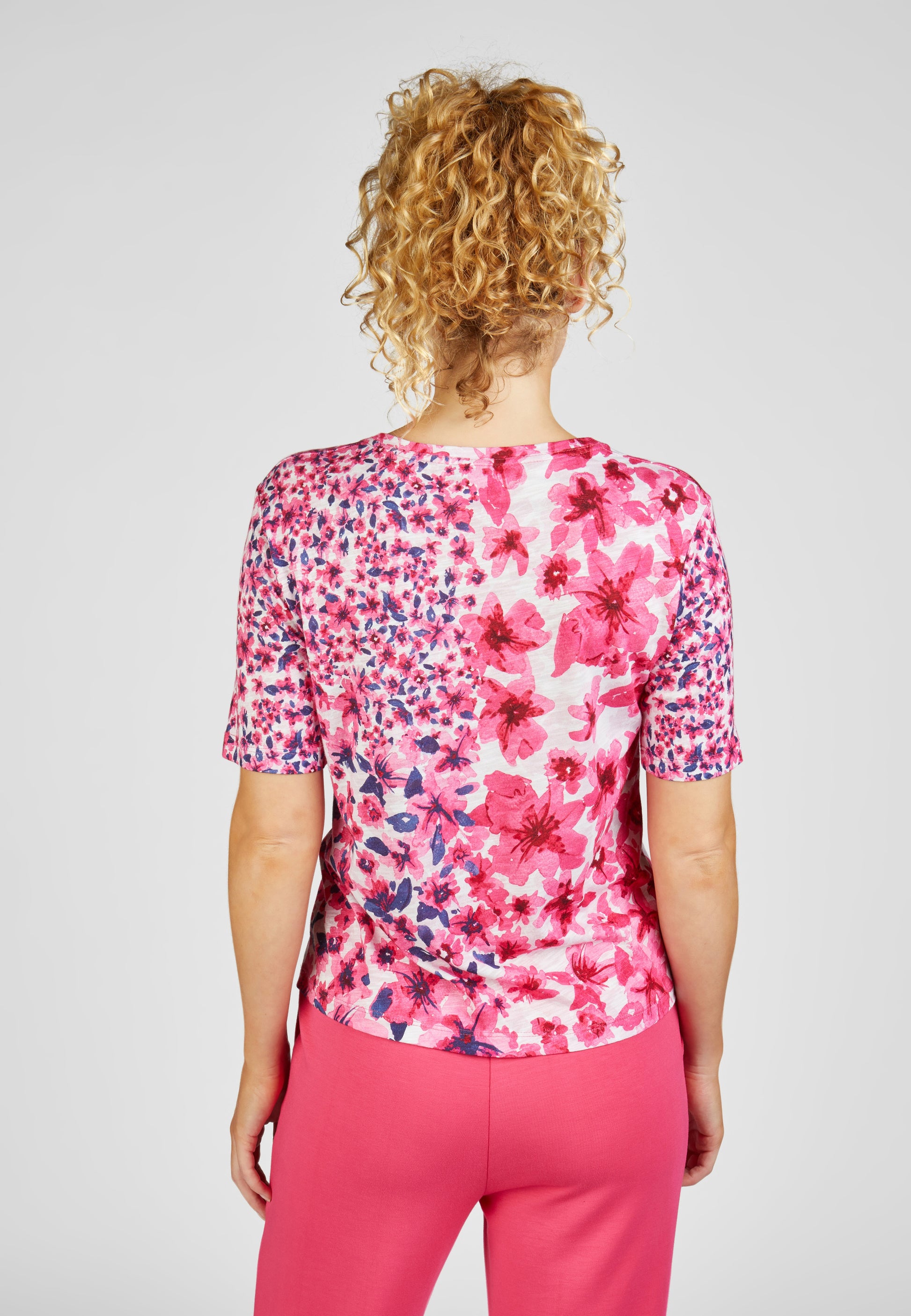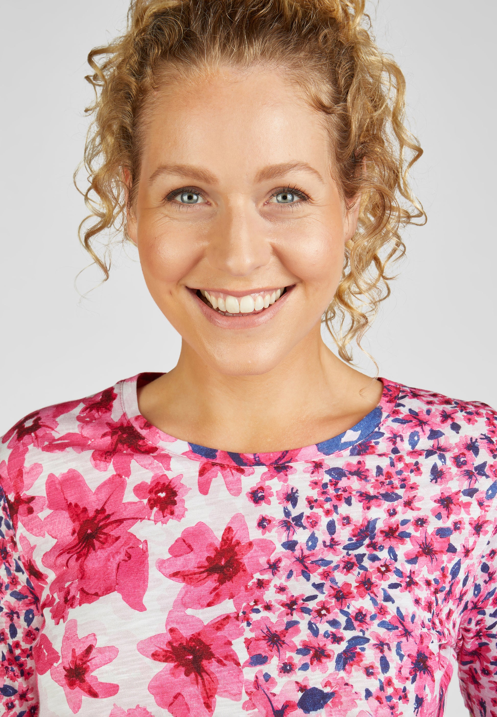 Tauchen Sie ein in den Frühling mit diesem entzückenden Blumenmuster-Oberteil! Das leichte Material sorgt für Tragekomfort und die lebhaften Rosa- und Blautöne bringen Farbe in jeden Tag. Der dezente Rundhalsausschnitt unterstreicht die feminine Note, während das fröhliche Blumenmuster gute Laune verspricht. Ideal für den Alltag oder das Büro dieses Oberteil ist ein echter Hingucker.50 % Baumwolle, 50 % Viskose
