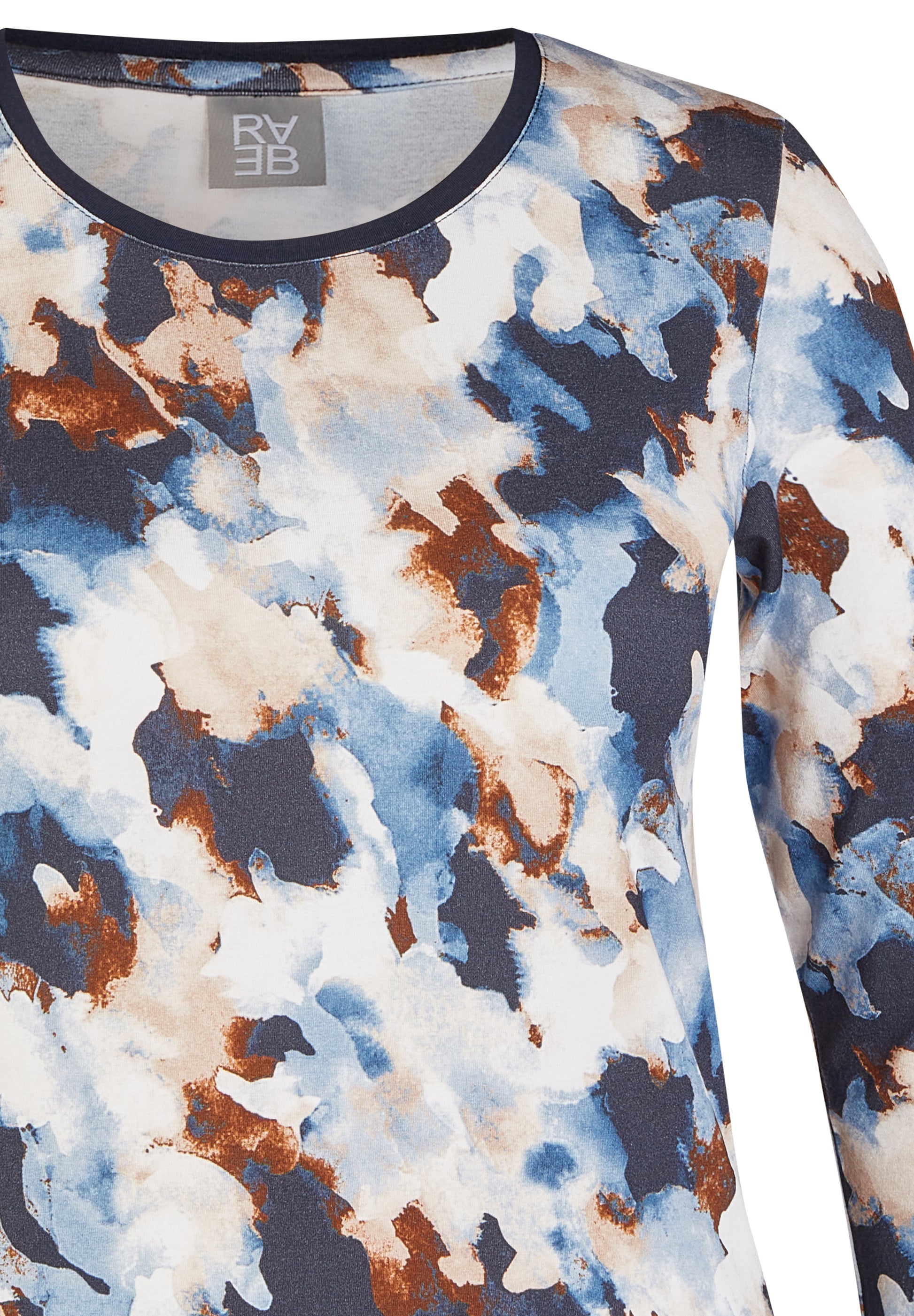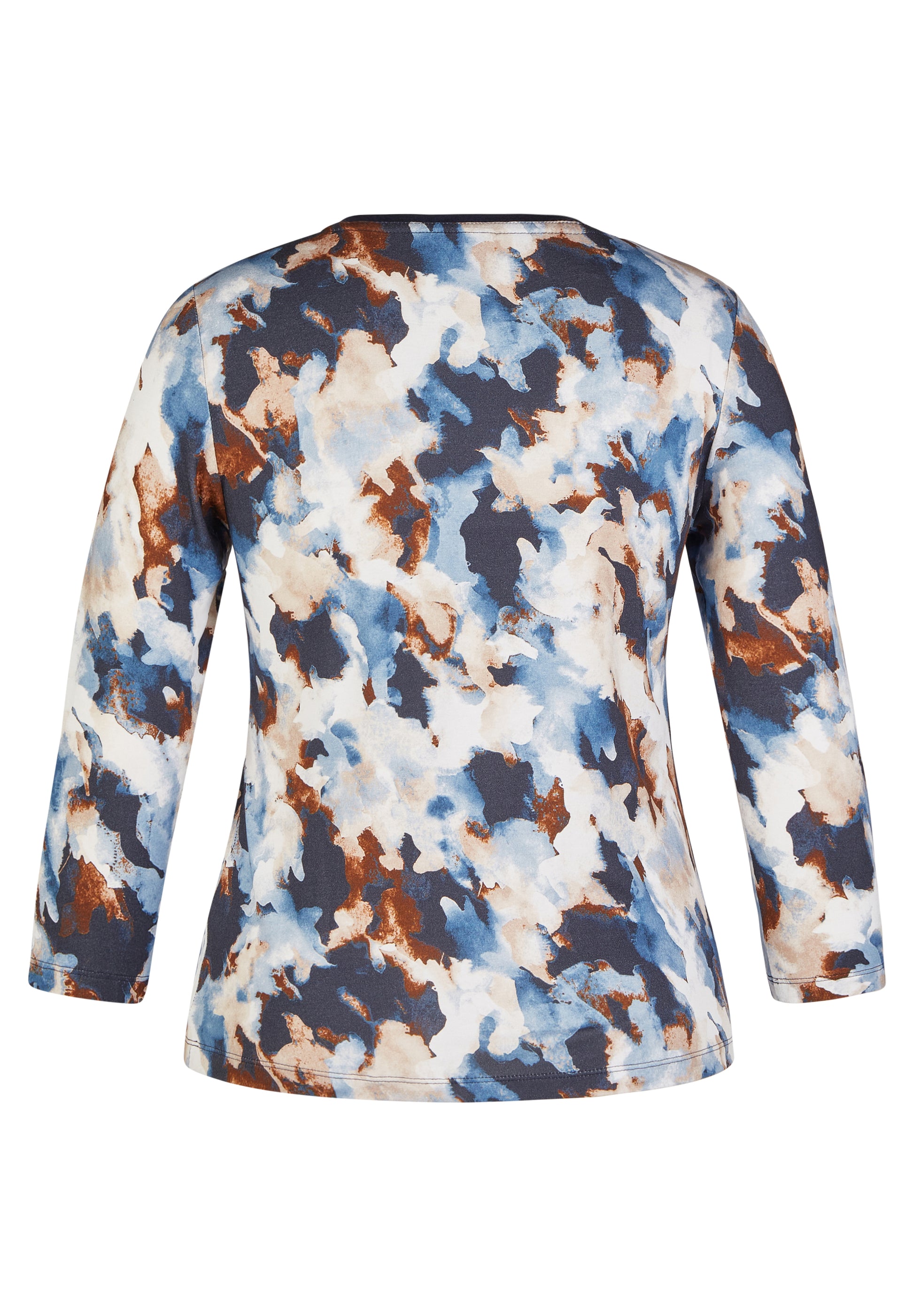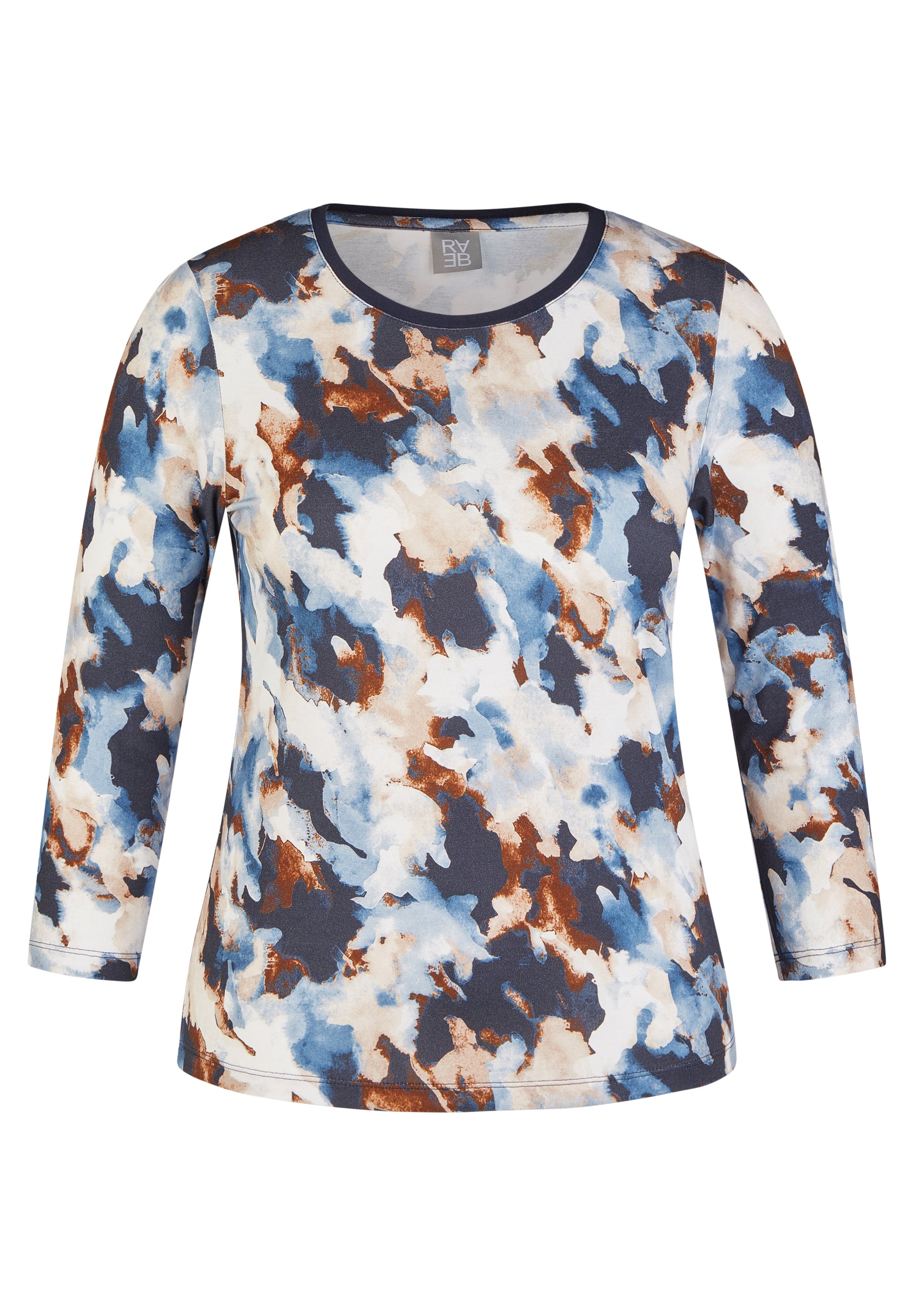 Entdecken Sie das perfekte Oberteil für jeden Anlass mit unserem stilvollen 3/4-Arm-Shirt im künstlerischen Design! Kreative Farbkombination aus Blau, Weiß und Braun für einen einzigartigen Look. Perfekt für Freizeit, Büro oder besondere Anlässe. Verleihen Sie Ihrer Garderobe einen Hauch von Kunst und Eleganz mit diesem außergewöhnlichen Shirt!96 % Viskose, 4 % Elasthan