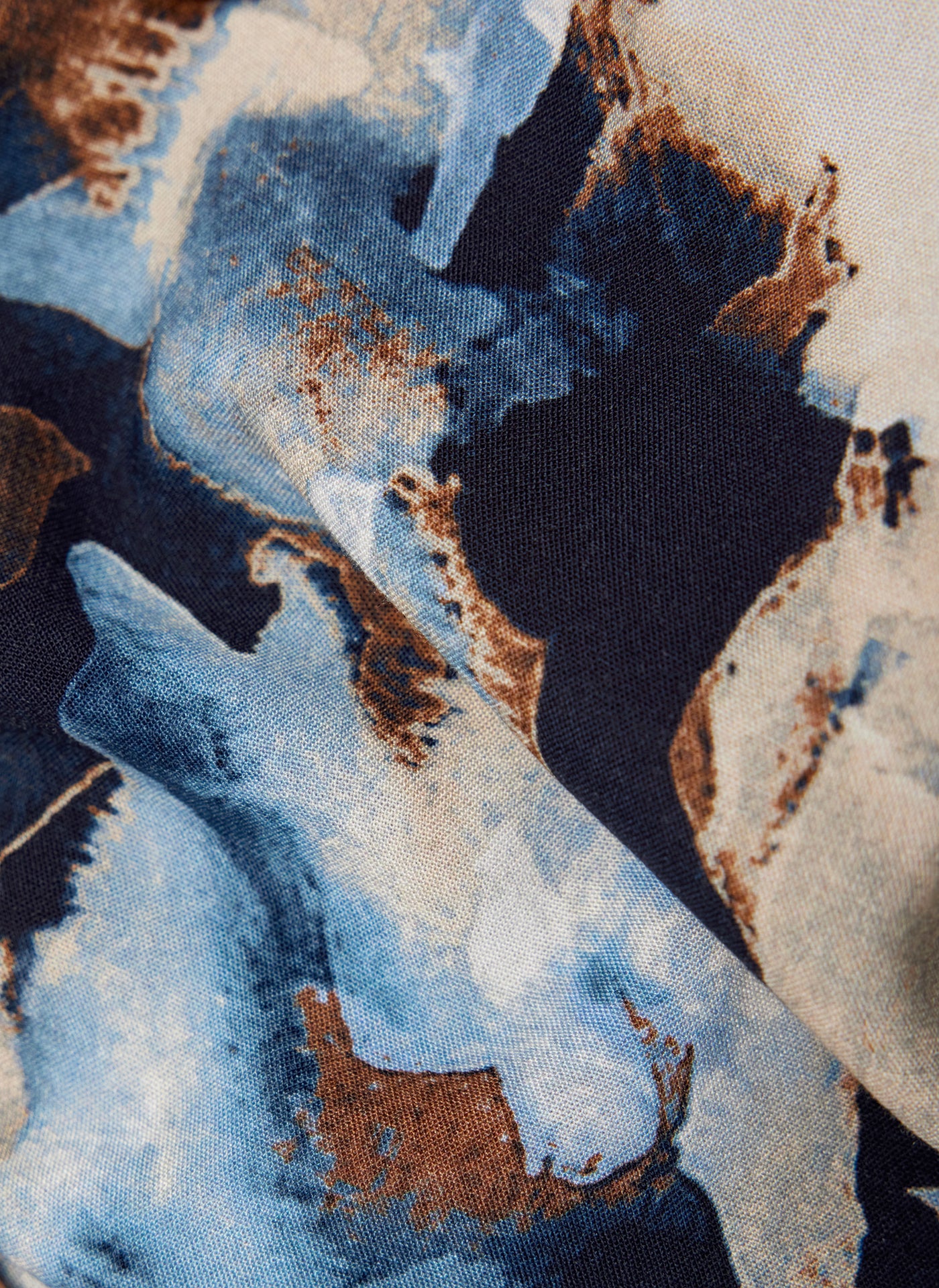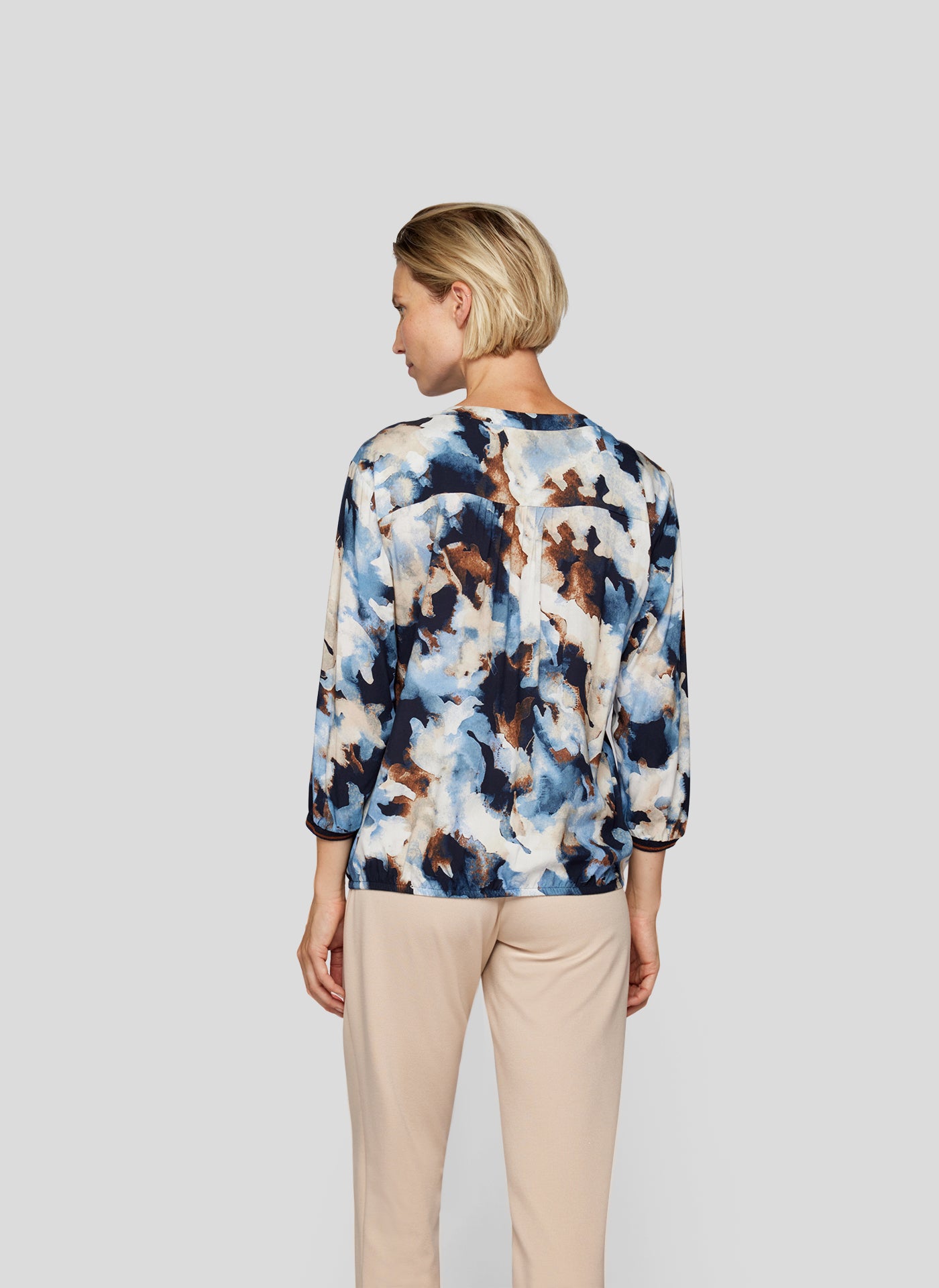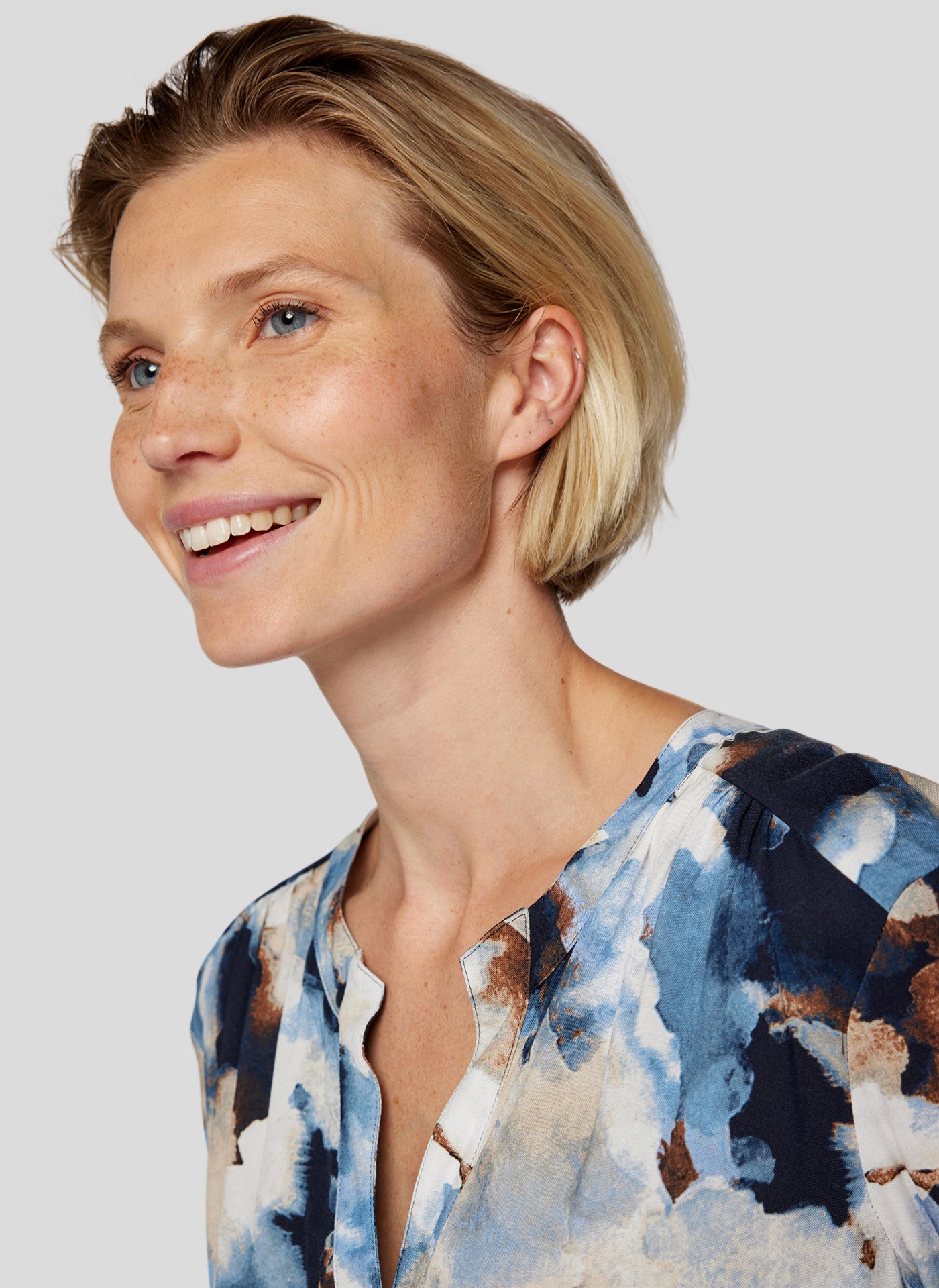 Diese hochwertige Bluse aus 100% Viskose besticht durch ihr trendiges Design in dunkelblau mit einem ansprechenden Allover-Muster. Der Rundhalsausschnitt und die langen Ärmel sorgen für eine elegante Optik, während der gerade Schnitt und der elastische Saum einen optimalen Tragekomfort und eine perfekte Passform garantieren. Mit dieser Bluse sind Sie sowohl im Büro als auch in Ihrer Freizeit perfekt gestylt! Entdecken Sie jetzt dieses vielseitige Kleidungsstück und bereichern Sie Ihre Herbstgarderobe!100 % Viskose