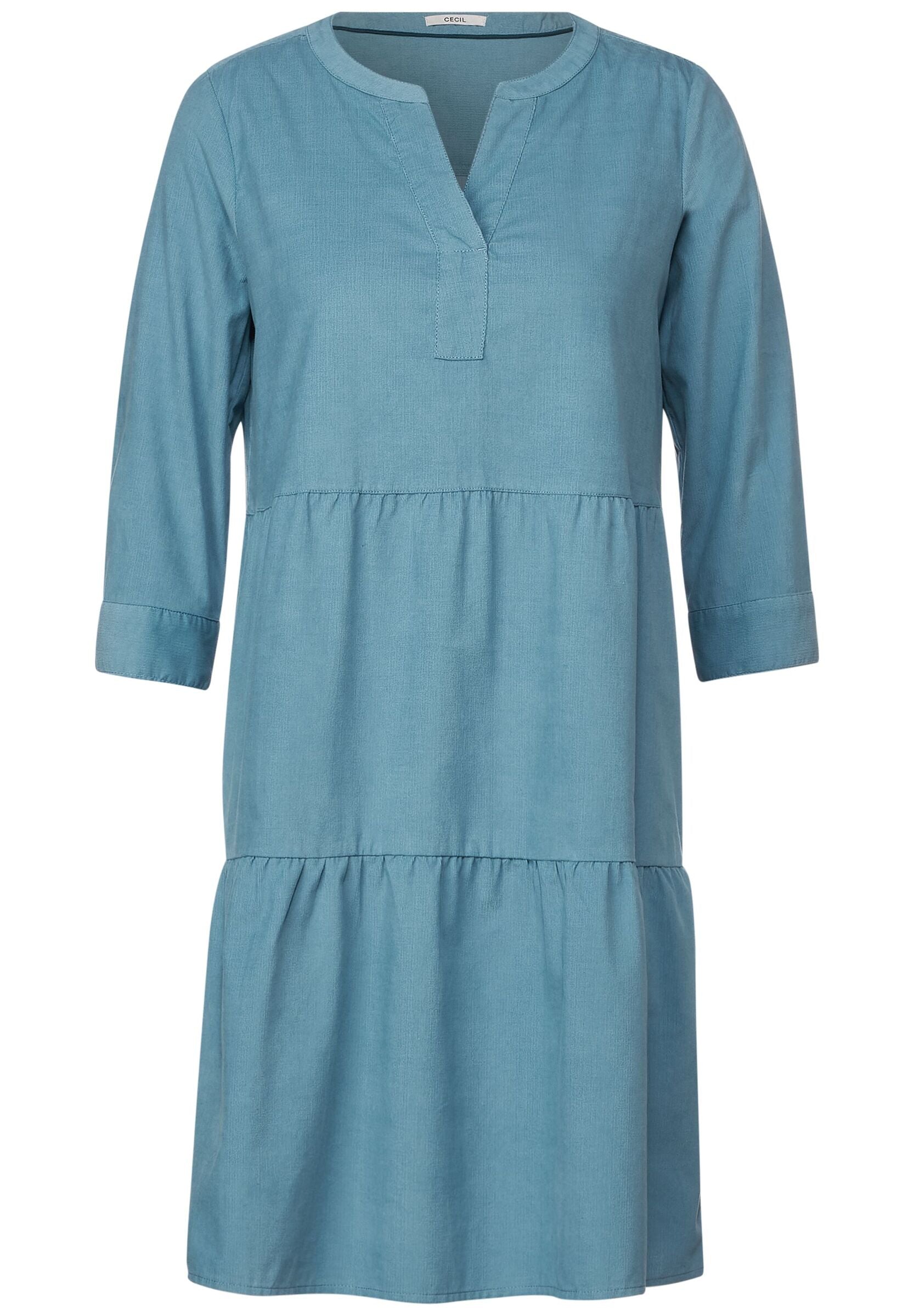 Herbstlicher Chic! Mit diesem knielangen Cordkleid von CECIL mit geschlitztem Rundhalsausschnitt, 3/4 Ärmeln und modischer Faltenlegung perfektionierst du deinen Look. Aus softer Baumwolle verleiht es einen herbstlichen Look und bietet zahlreiche Einsatzmöglichkeiten. Babycord3/4-ÄrmelGeschlitzter RundhalsausschnittGestuft Maße bei EU-Größe M ca.: