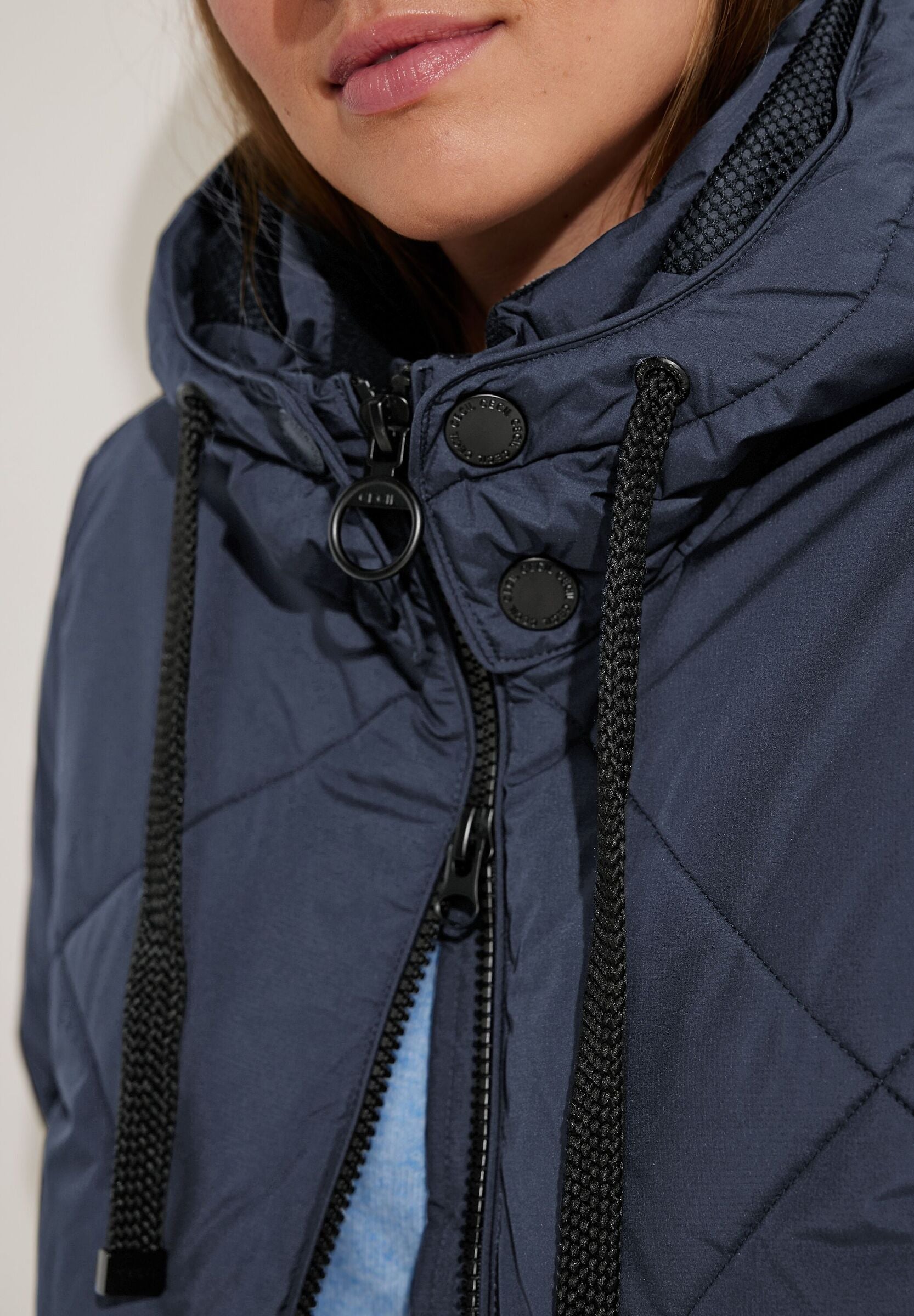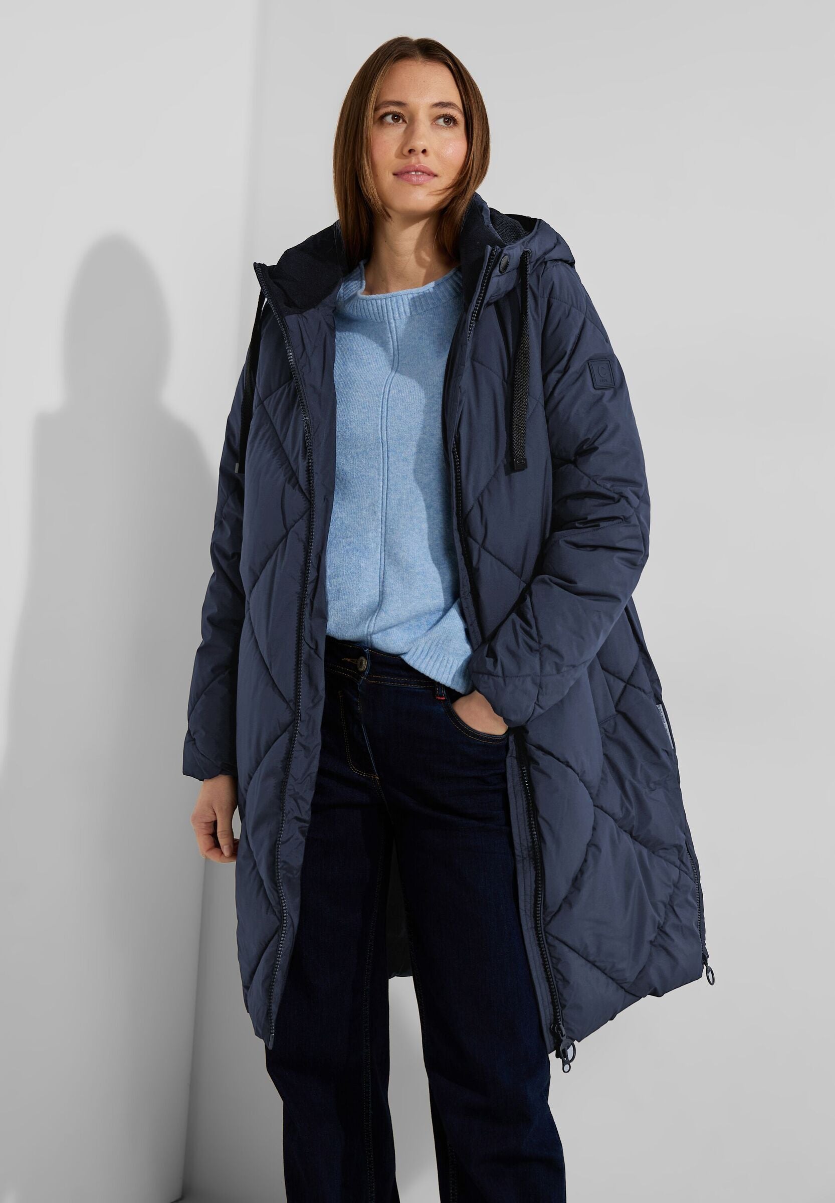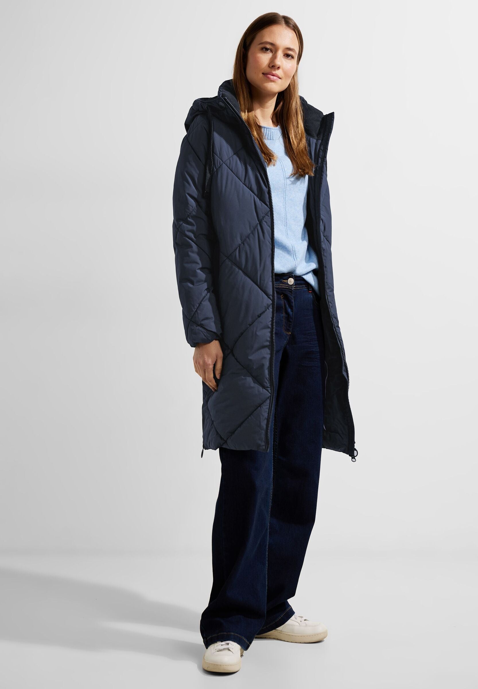 Stilvoll gewappnet gegen die Kälte! Der unifarbene Damenmantel von CECIL überzeugt mit abnehmbarer Kapuze, 2-Wege Zipper, Reißverschlüssen an den Armen und seitlichem Saum sowie verschließbaren Taschen. Er ist nicht nur wärmend, sondern auch ein Mode-Statement für die kalte Jahreszeit. Mit seiner Diamant-Steppung ist er ein Hingucker.