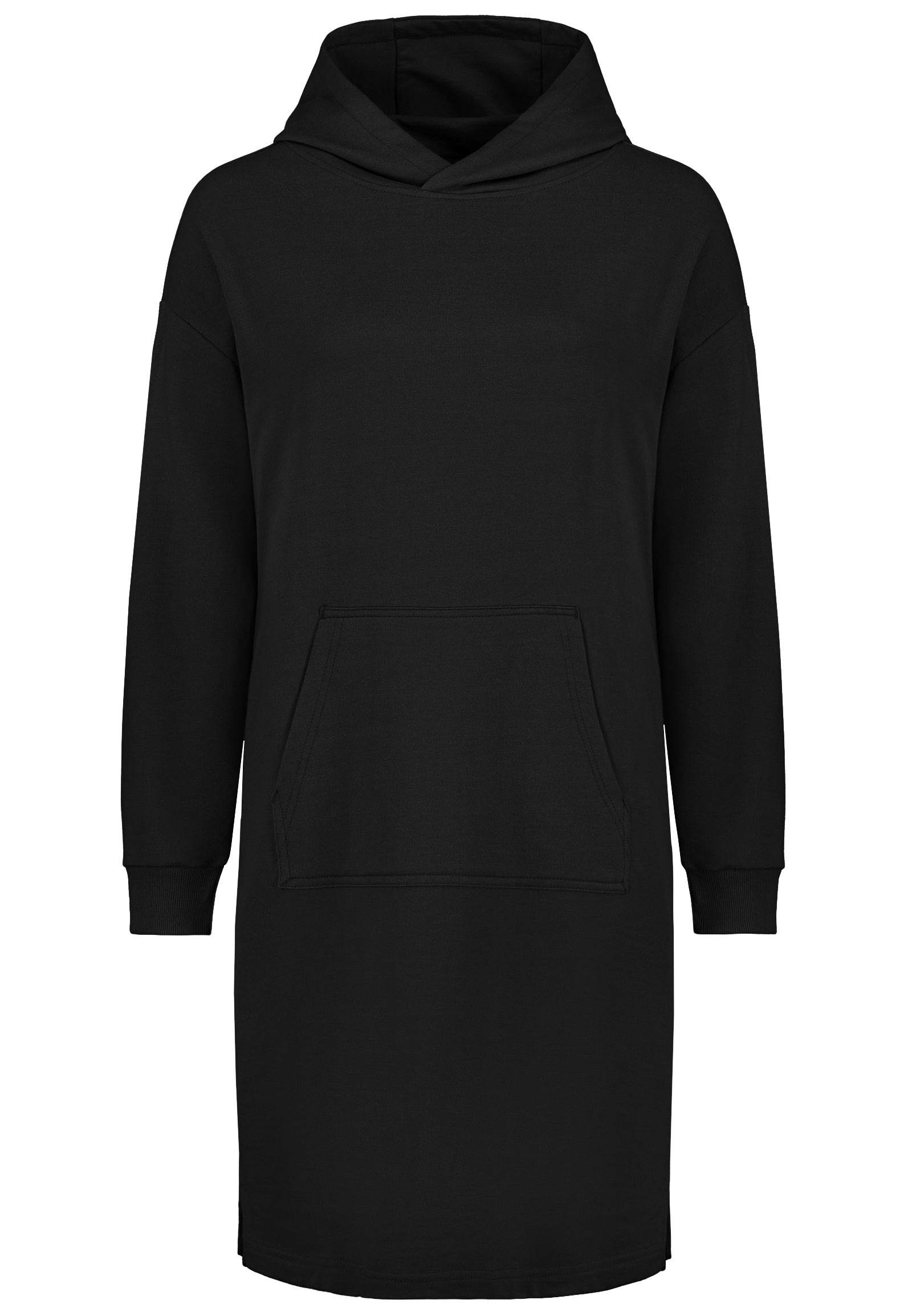 DOBSweatKleid,Oversize,MIDI Länge, Kapuzeüberschnittene Schulter,KangarooTascheRippbündchen,Schlitze am Saum