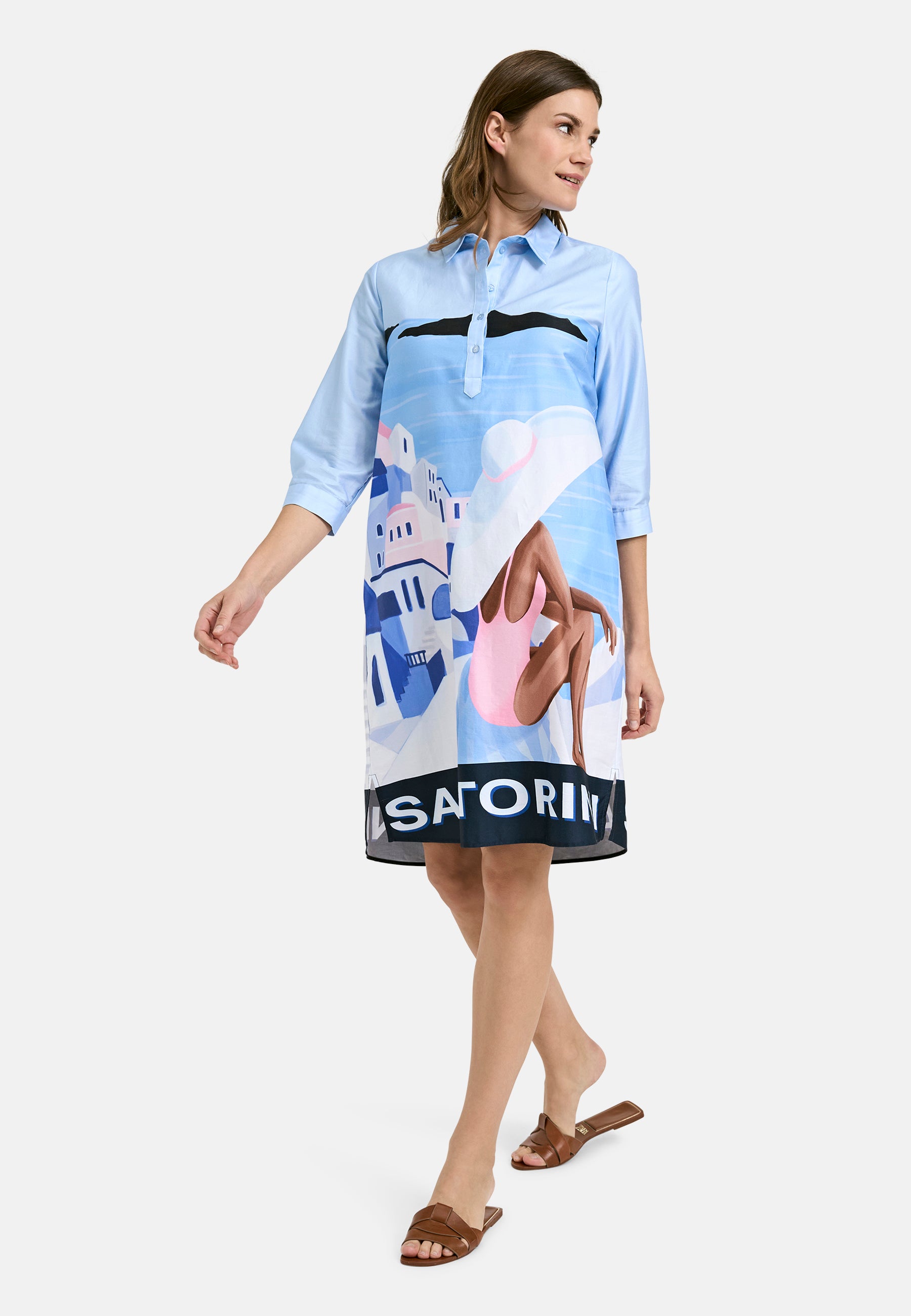 Dress w collar, half placket, 3/4 sleeves with cuffs + turn up
