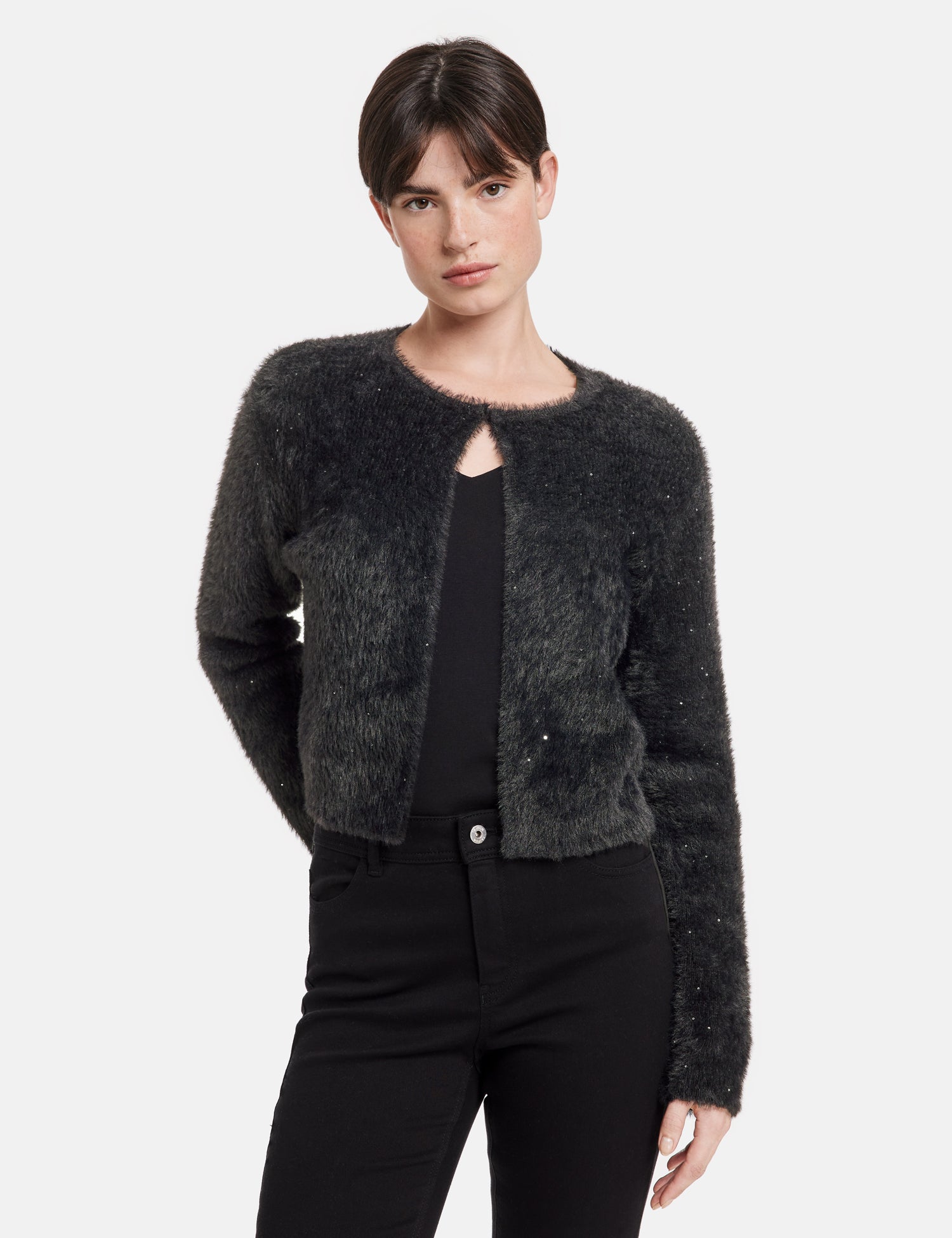 Flauschige Strickjacke mit Glitzer-Pailletten