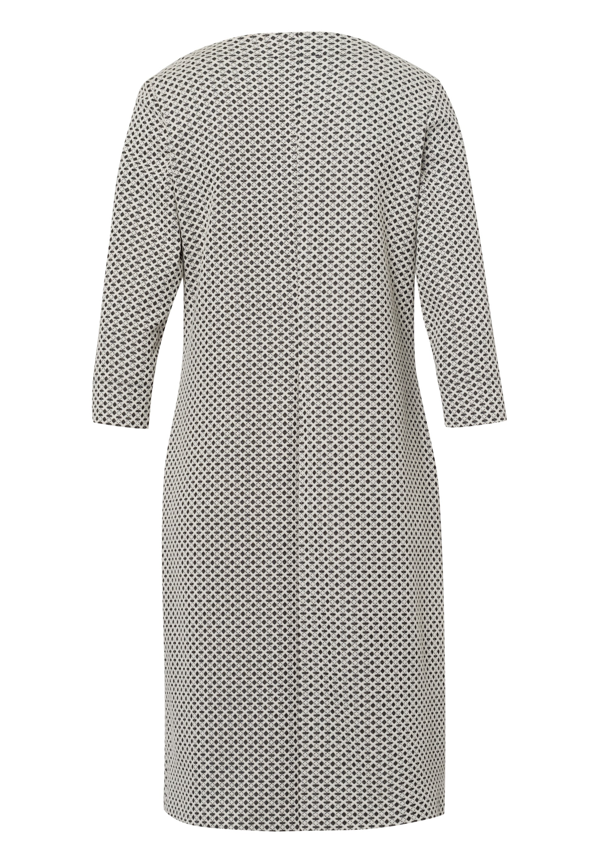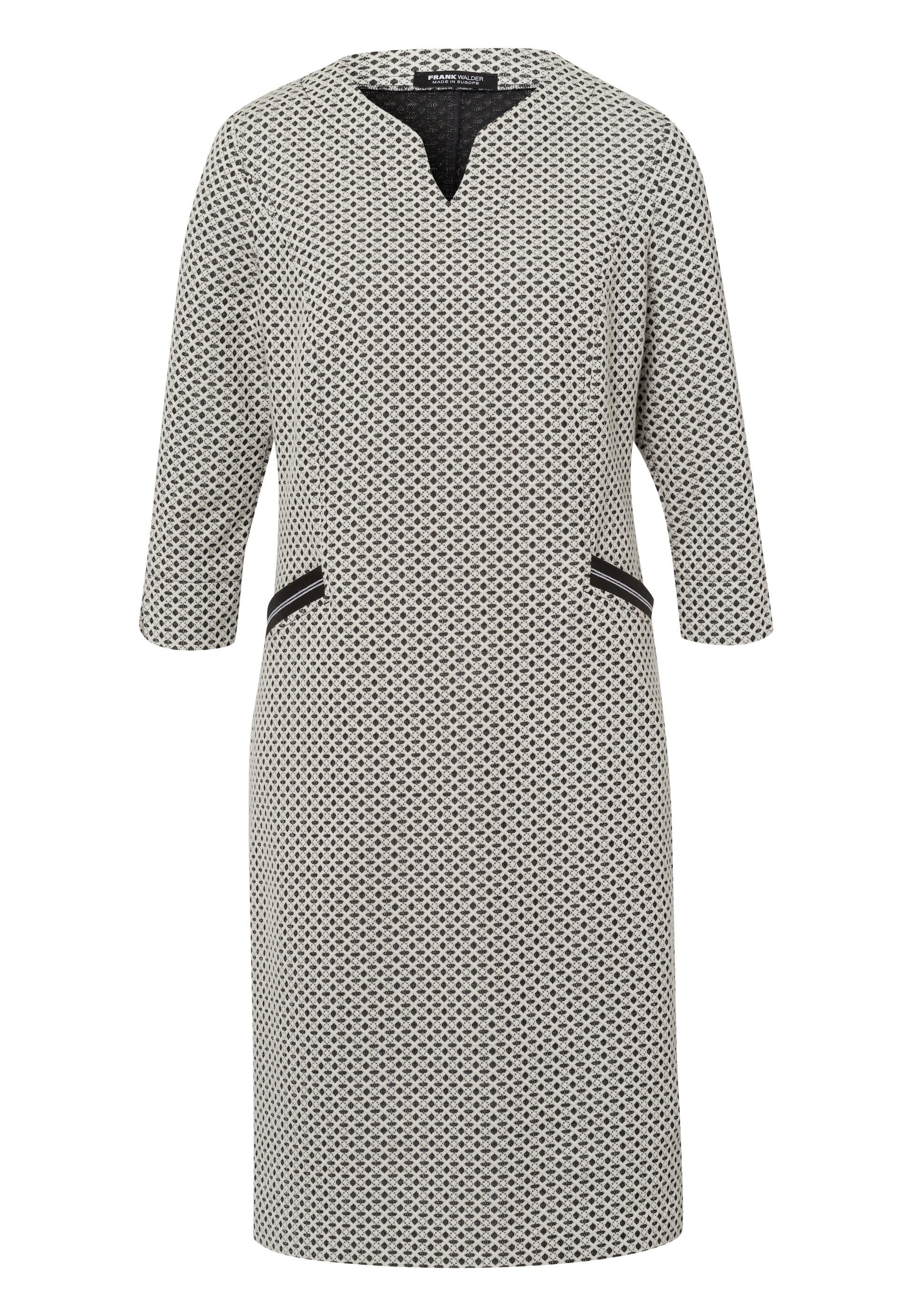 Bezauberndes Kleid, das sich Figurumspielend und kniebedeckt zeigt. Raffinesse verleihen ihm die geschmückten Leistentaschen aus Lederimitat und der kleidsame Ausschnitt. Das dezente Jaquard-Muster schenkt dem Style eine Extraportion Charme.50% Baumwolle, 48% Polyester, 2% Elasthan