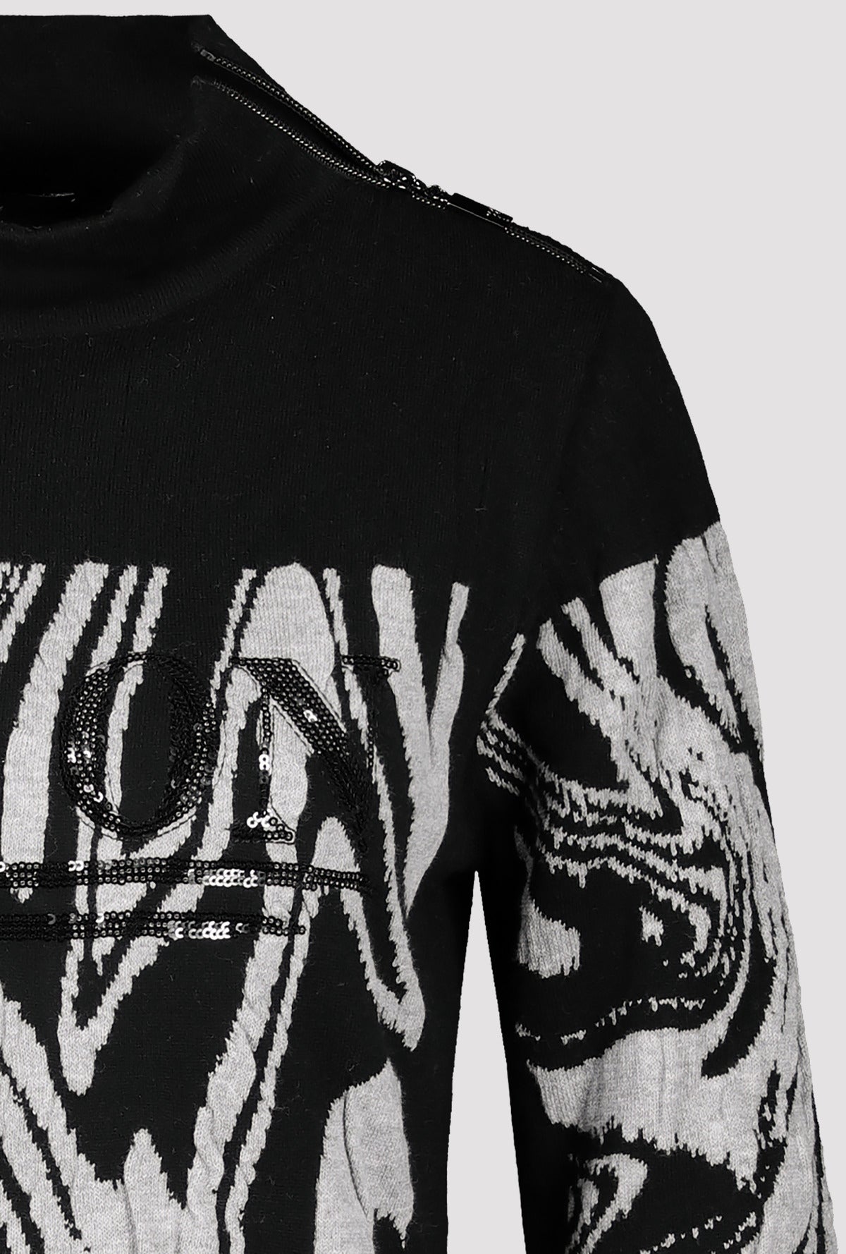 Das Midi-Kleid von monari wird zu Ihrem Freizeit-Begleiter Nummer 1. Mit lockerer, leicht taillierter Passform und einem Stehkragen mit Reißverschluss auf den Schultern. Verstärkt wird die feminine Note durch die schönen Cloqué-Jacquard-Details entlang der Ärmel und auf der Vorder- und Rückseite. Zudem wird die Vorderseite zusätzlich mit einem glamourösen Pailletten-Schriftzug geschmückt. Die hochwertige Strickqualität sorgt für höchsten Tragekomfort und dafür, dass Sie das It-Piece gar nicht mehr ausziehen möchten. Perfekt für Ihre modische Garderobe. Zu hohen Overknees absolut geeignet.51% Baumwolle, 25% Viskose, 14% Polyester, 10% Polyacryl