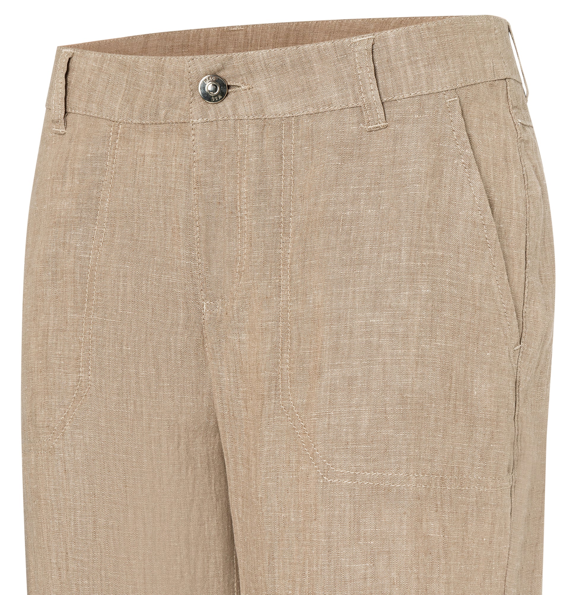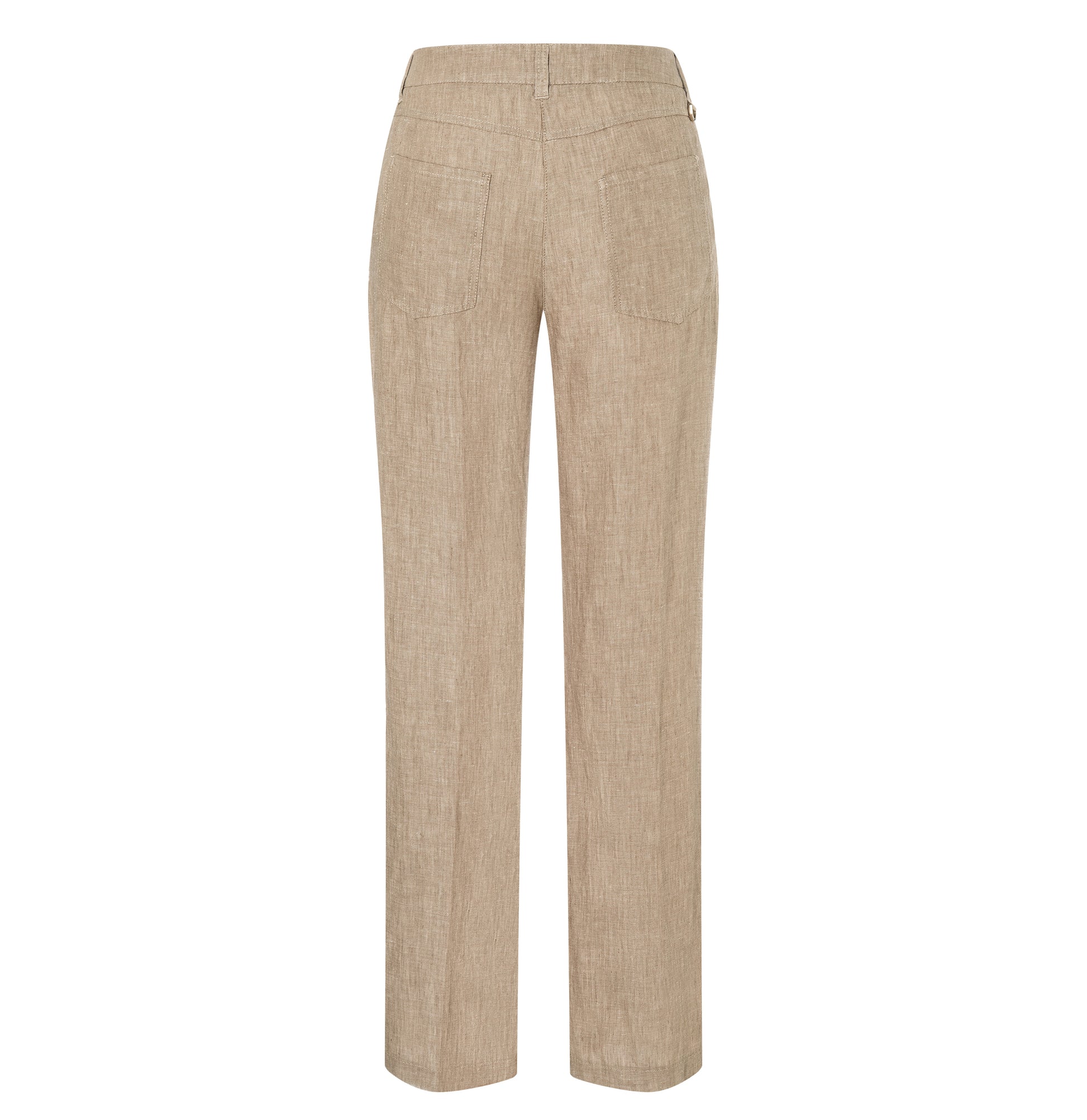 Relaxed Fit weites, gerades Bein normale Leibhöhe bequeme Taille seitliche Eingrifftaschen vorne aufgesetzte Taschen hinten 100% Leinen sehr hochwertige, hautfreundliche Sommer-Qualität hoher Tragekomfort temperaturausgleichend sehr angenehm und kühl auf der Haut langlebige Qualität Das Model ist 1,75m groß und trägt die MAC Hosengröße 36 Fußweite bei Größe 36: 48cm100% Leinen