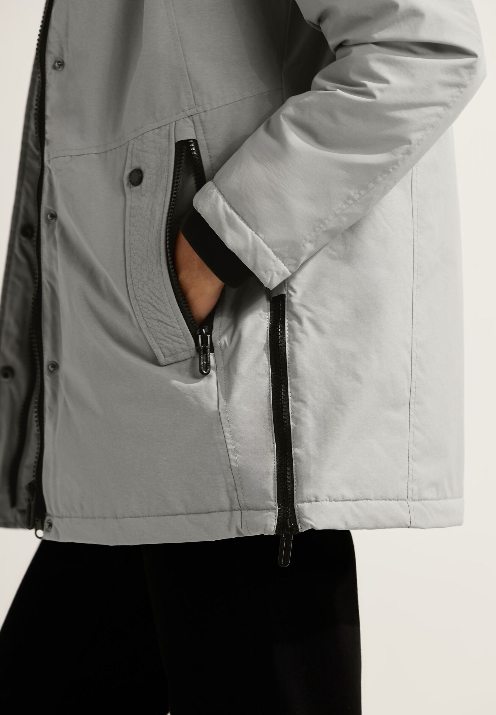 Tauche ein in den Style! Der Damenmantel von CECIL mit seiner abnehmbaren Kapuze, verdeckter Knopfleiste und reflektierenden Details ist mehr als nur ein Kleidungsstück - er ist ein Statement. Mit seinem Tunnelzug zum Taillieren verleiht er dir eine feminine Silhouette und setzt dich gekonnt in Szene. Egal, ob du ihn zu lässigen Jeans oder einem eleganten Kleid trägst, dieser Mantel in technical Melange Optik ist ein wahrer Blickfang.