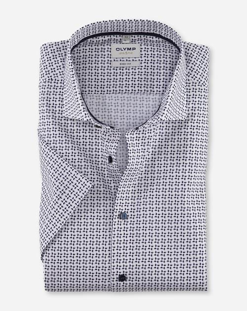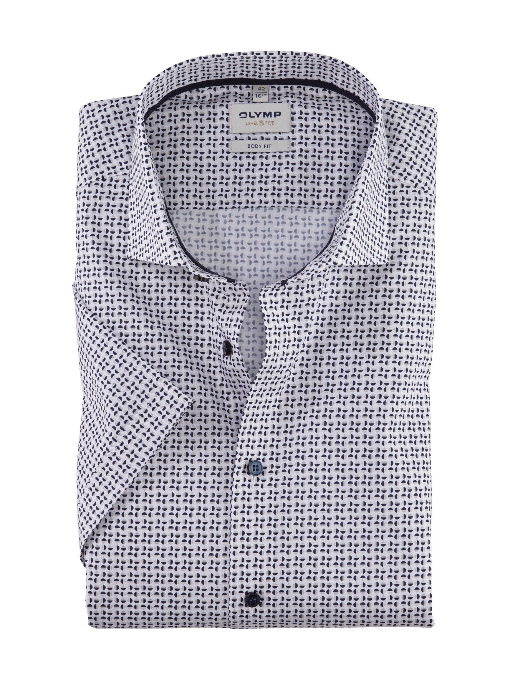 Die Beliebtheit der OLYMP Level Five Kollektion beruht auf der verlässlichen Kombination aus bewährter Business-Optik und zeitgenössischen Impulsen. Das Kurzarmmodell im linientypischen Body-Fit-Schnitt zeigt ein modisches Grafik-Dessin in coolem Taupe und passt damit auch optisch perfekt in die aktuelle Frühlingssaison. Leicht ist auch die verarbeitete Qualität: Ein hochwertiger Baumwollpopeline in GREEN-CHOICE-Standard, mit bügelleichten und dezent elastischen Materialeigenschaften. Ein moderner Businessbegleiter mit elegantem Royal Kent.97% Baumwolle/ 3% Elastolefin (®XLANCE)