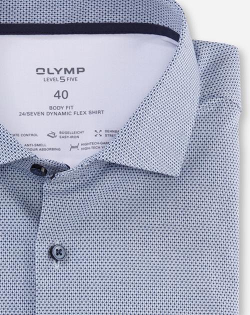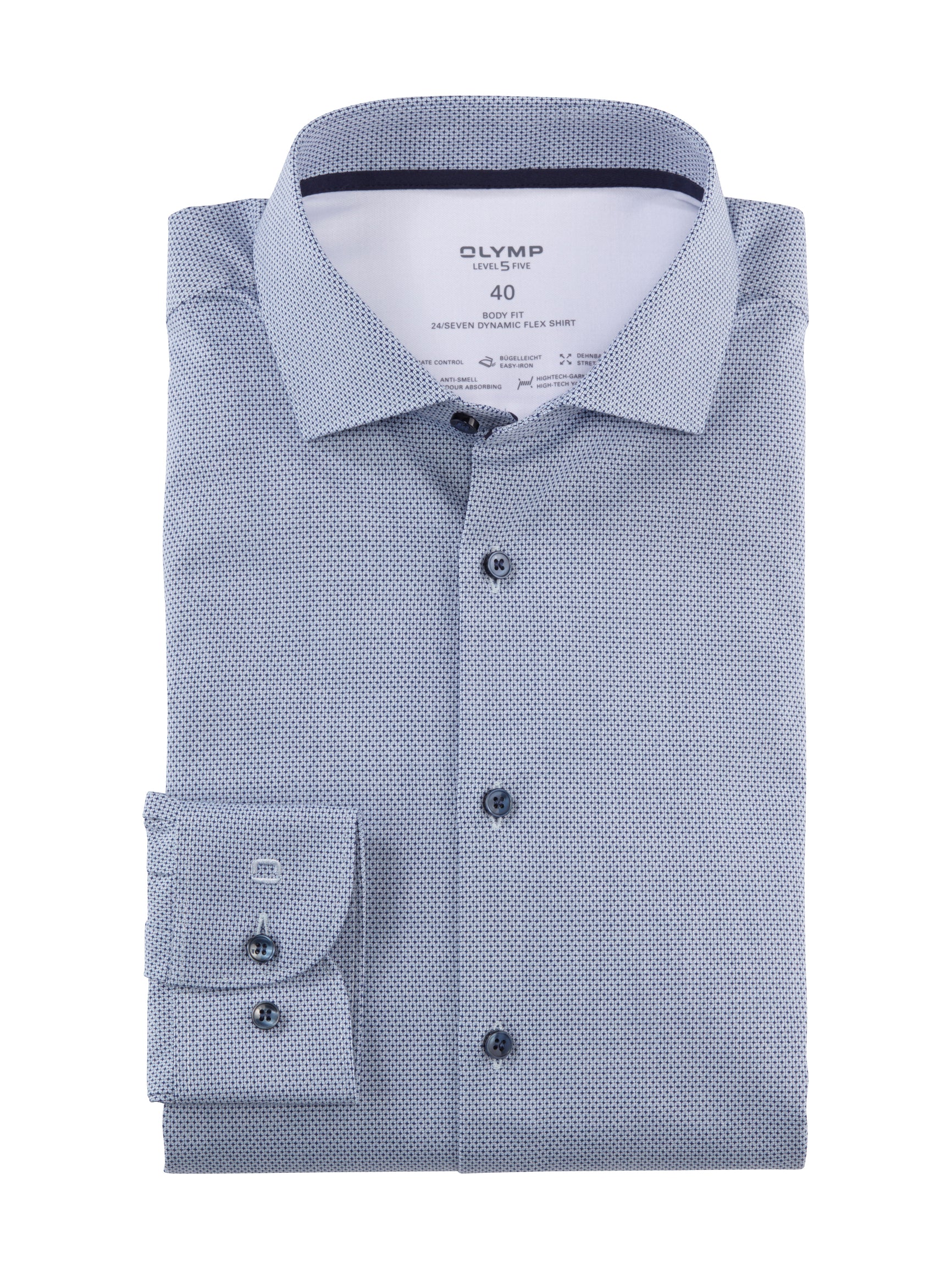 Edler Touch durch fein strukturiertes Webmuster in Bleu – das OLYMP Level Five Jersey Shirt überzeugt nicht nur die körperbetonte Linienführung, sondern auch durch die funktionalen Attribute des Dynamic-Flex-Gewebes mit CLIMATE-CONTROL. Es ist atmungsaktiv, dehnbar, schnelltrocknend sowie temperatur- und feuchtigkeitsregulierend. Vollendet mit klassischem Kent und akzentuiert mit modischen Details im Kragen.64% Baumwolle, 27% Polyester, 9% Elasthan