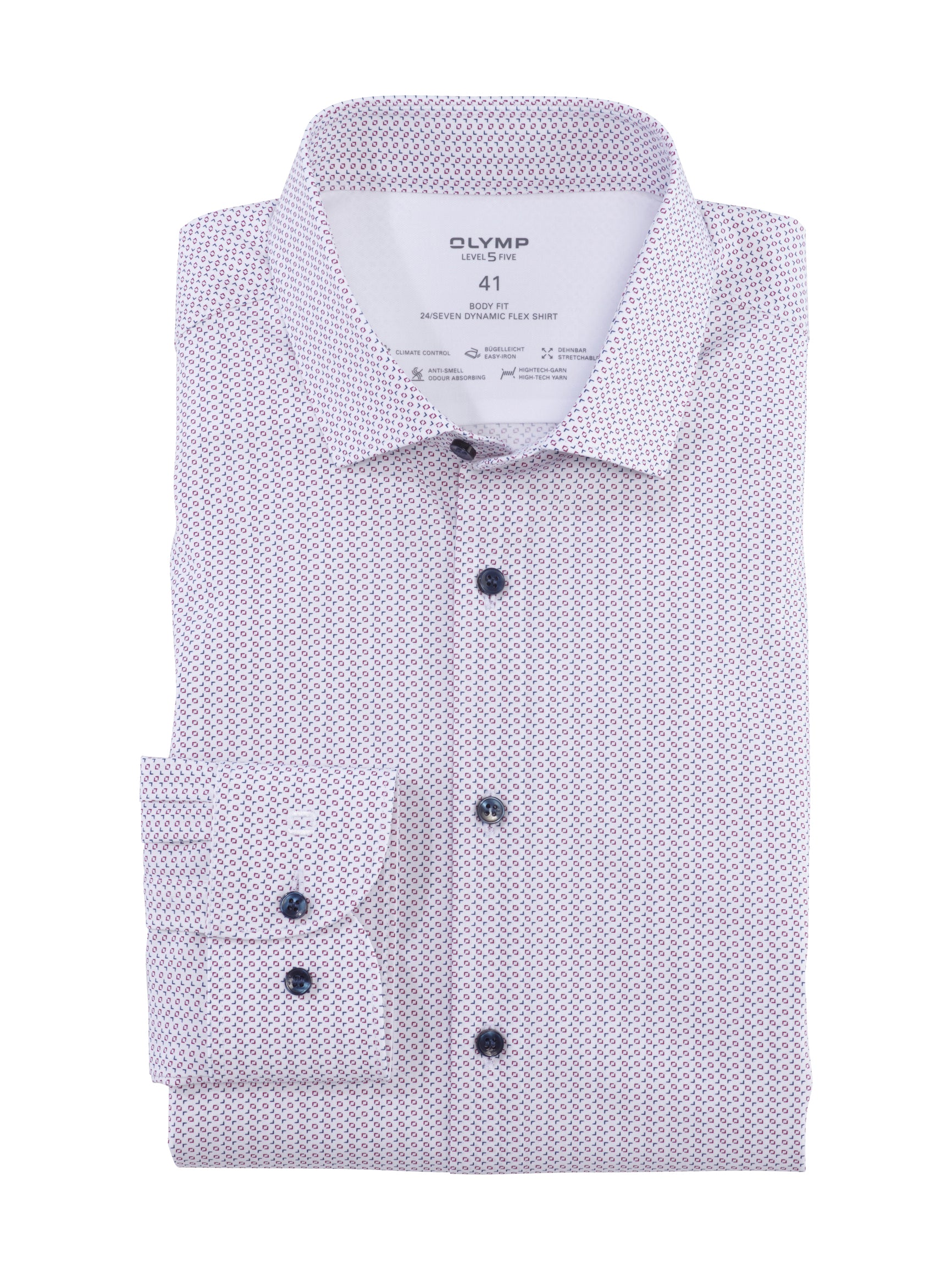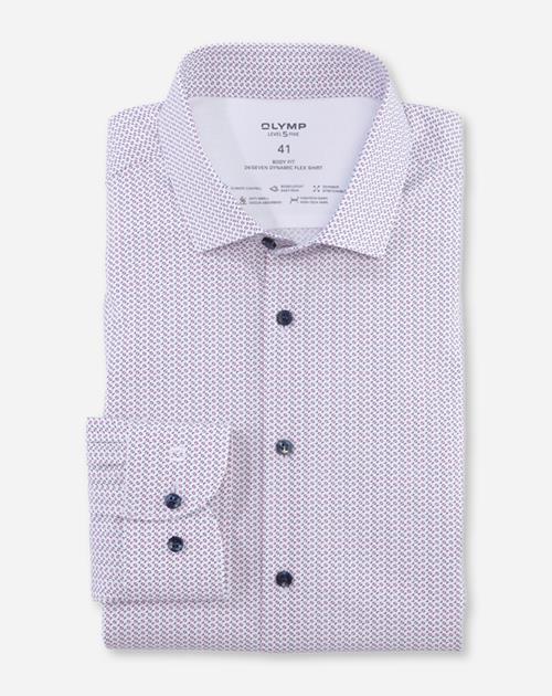 Das OLYMP Dynamic-Flex-Shirt fusioniert standesgemäße Business-Optik, sportliche Eleganz und funktionelle Tragequalität. Das zeigt sich im körperbetonten Schnitt mit sportivem Modern Kent und Climate Control. Der innovative Mix aus feinen Polyester, Baumwolle- und Elasthan-Garnen ist atmungsaktiv, dynamisch, hautsympathisch, schnelltrocknend und bügelleicht sowie feuchtigkeits- und temperaturregulierend.64% Baumwolle/ 27% Polyester/ 9% Elasthan